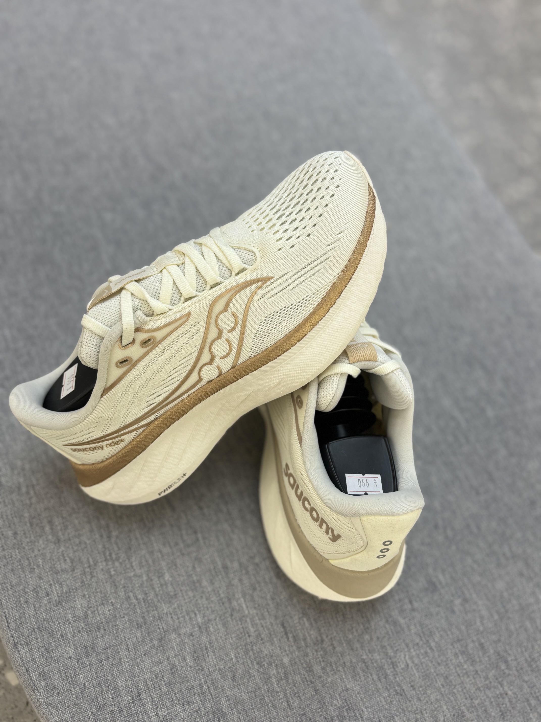 👟索康尼RIDE 18驭途系列跑鞋,主打日常慢跑和长距离训练,PWRRUN+中底科技带来轻盈缓震和持久回弹,减少膝盖压力,超适合初跑者和大体重选手!鞋面透气网布,长时间运动也很舒适,奶油白配色简约百搭,日常穿搭无压力✨。鞋底耐磨,抓地力强,城市跑、户外训练都能轻松驾驭,稳定又舒适,运动爱好者必入!