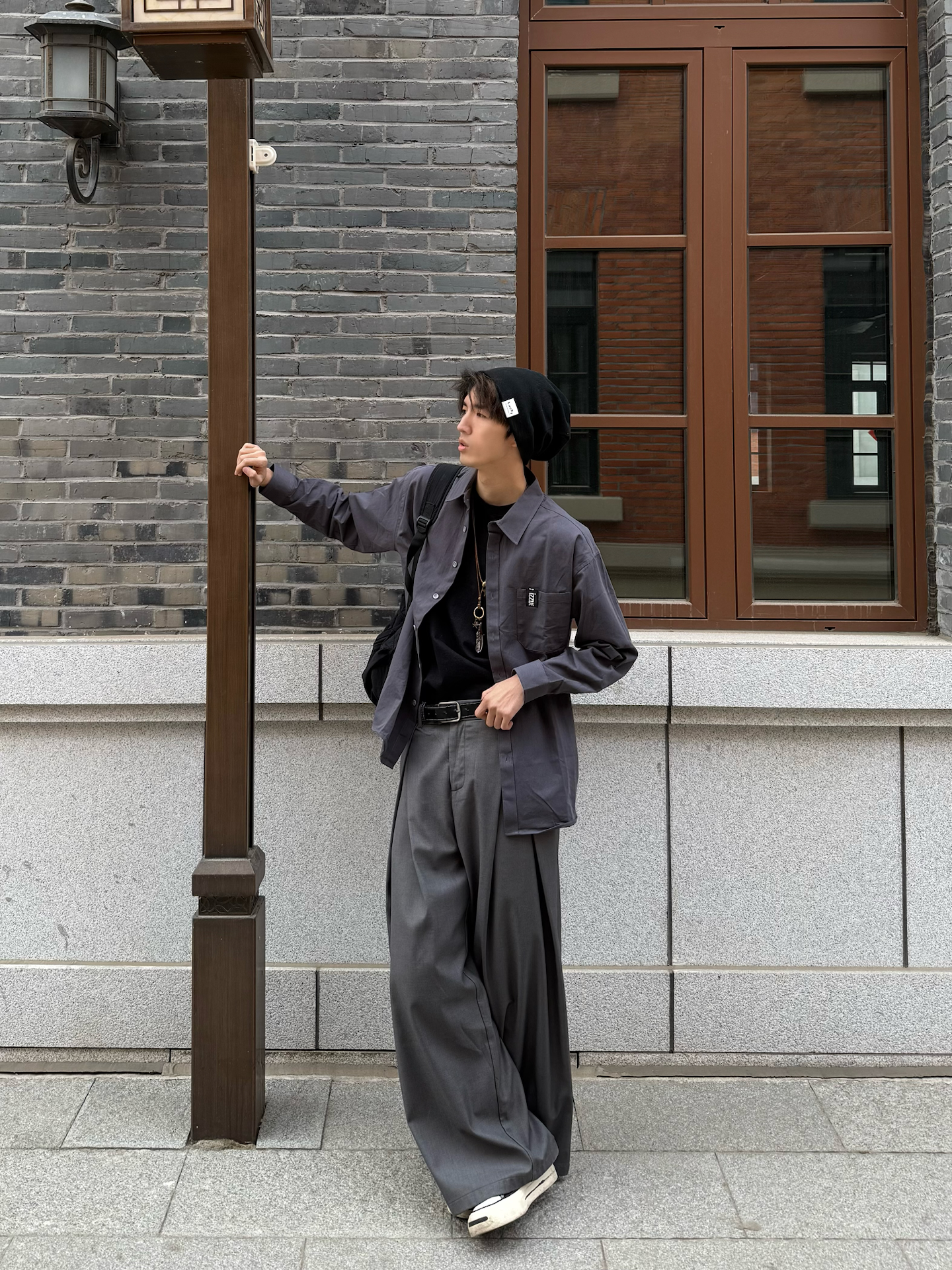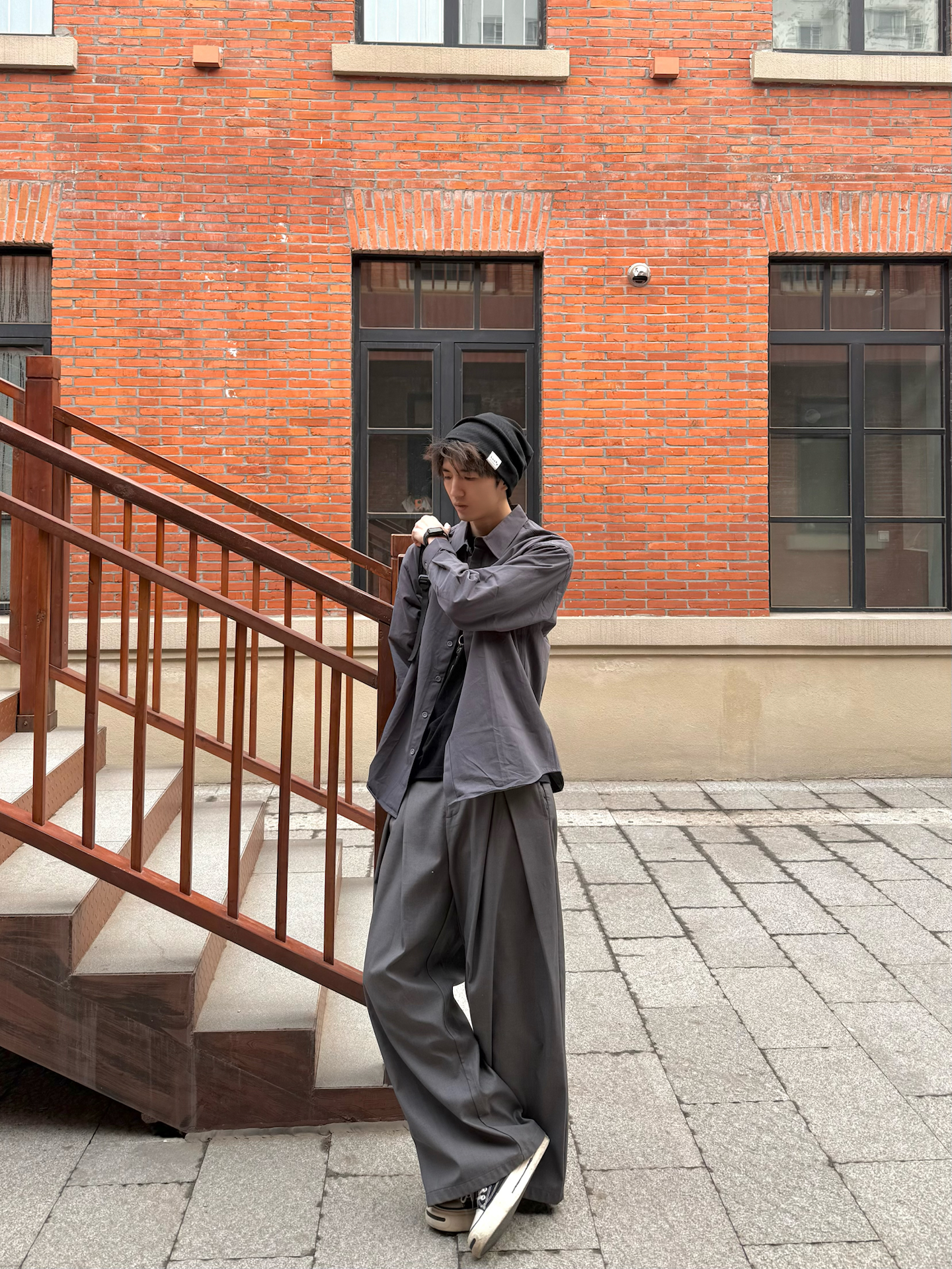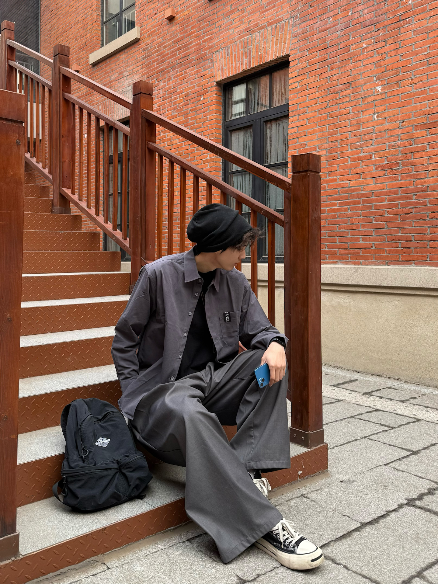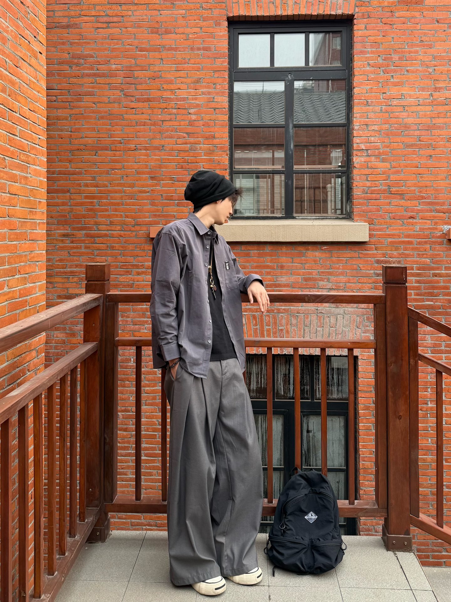同色系穿搭就是懒人的神🤓 🔟秒钟就搞定出门穿搭 属于是懒得费脑子了 今天这身是低饱和 复古休闲风 灰调衬衫+同色系阔腿+帆布鞋 配上个冷帽点缀 增加点慵懒味儿✌️ 全身松松垮垮 怎么穿都舒服 我的搭配技巧|全身锁定一个主色调 上深下浅⬆️ 里面用纯色过度 再用同色系配饰衔接 哪怕只有一条项链 也会很有感觉✅ 还是这种懒懒散散 韩味十足的穿搭 更松弛更自在😌