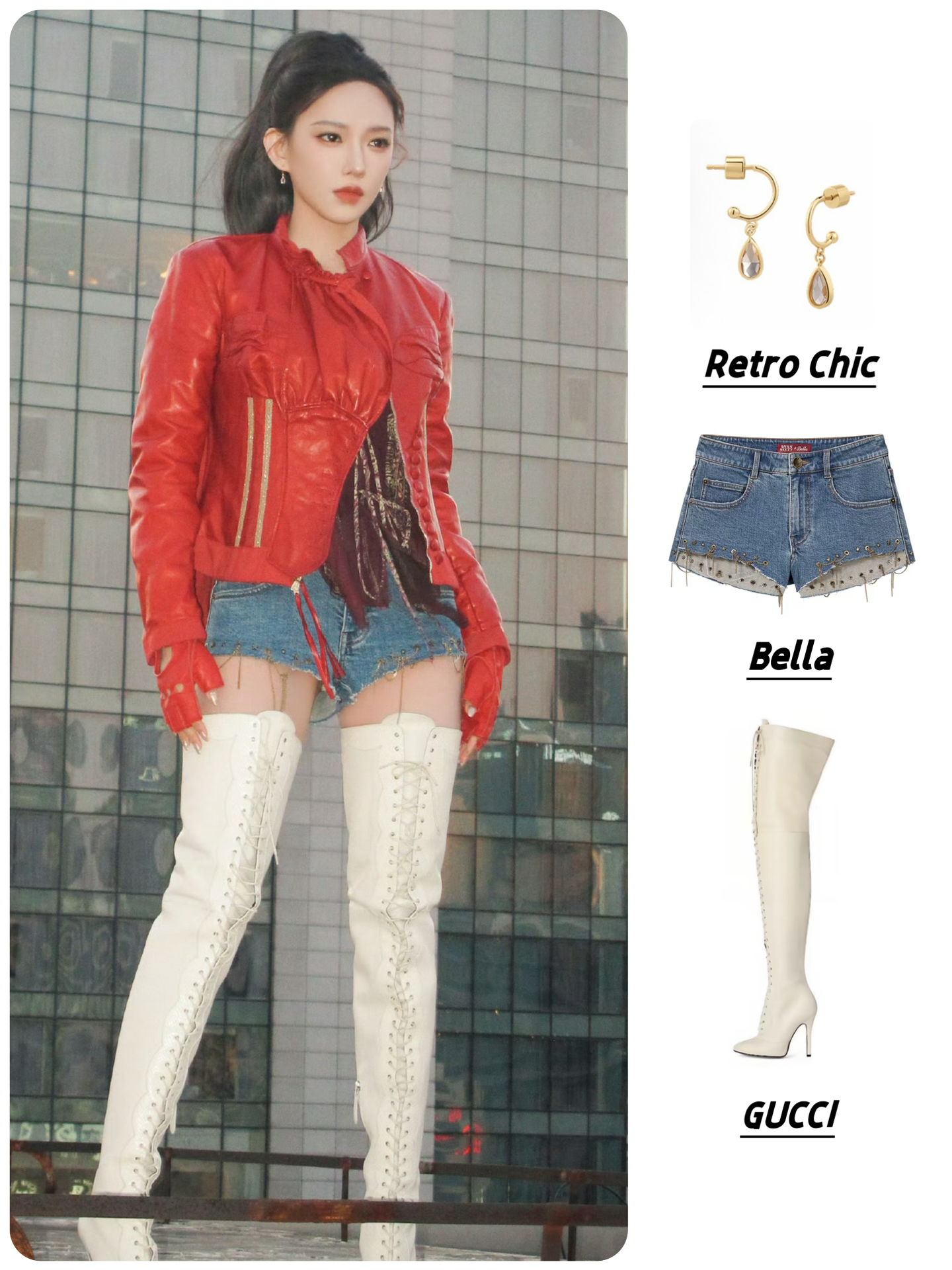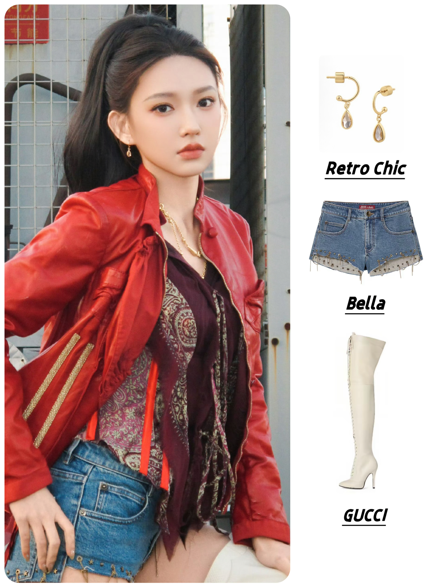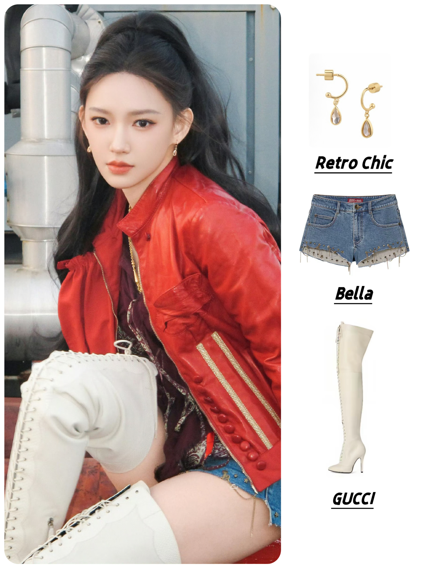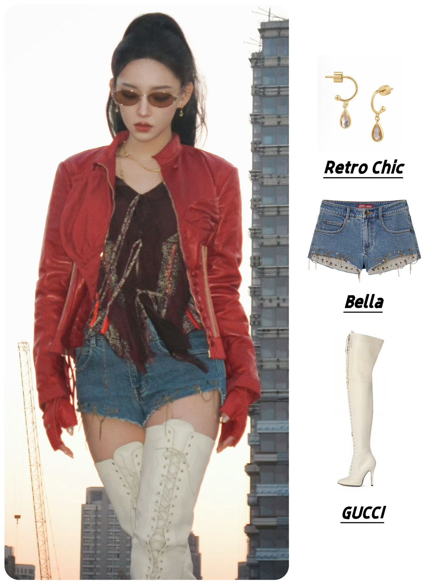 耳饰:Retro Chic 意大利复古黄铜镀金镶嵌水晶珍珠 风铃叠戴耳环&耳骨夹 🩳Miss Sixty x Bella联名胶囊系列金属链饰牛仔短裤 👢GUCCI古驰 皮革 拉链 高筒靴