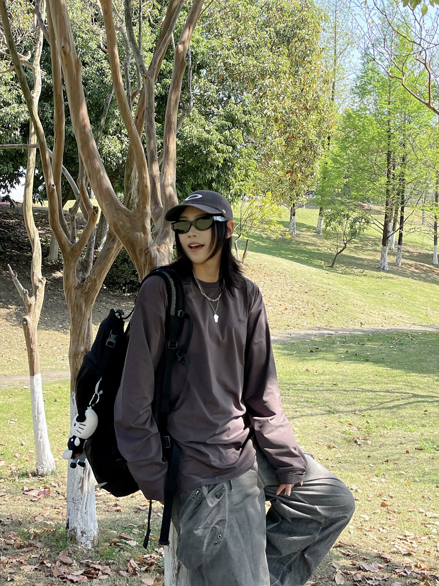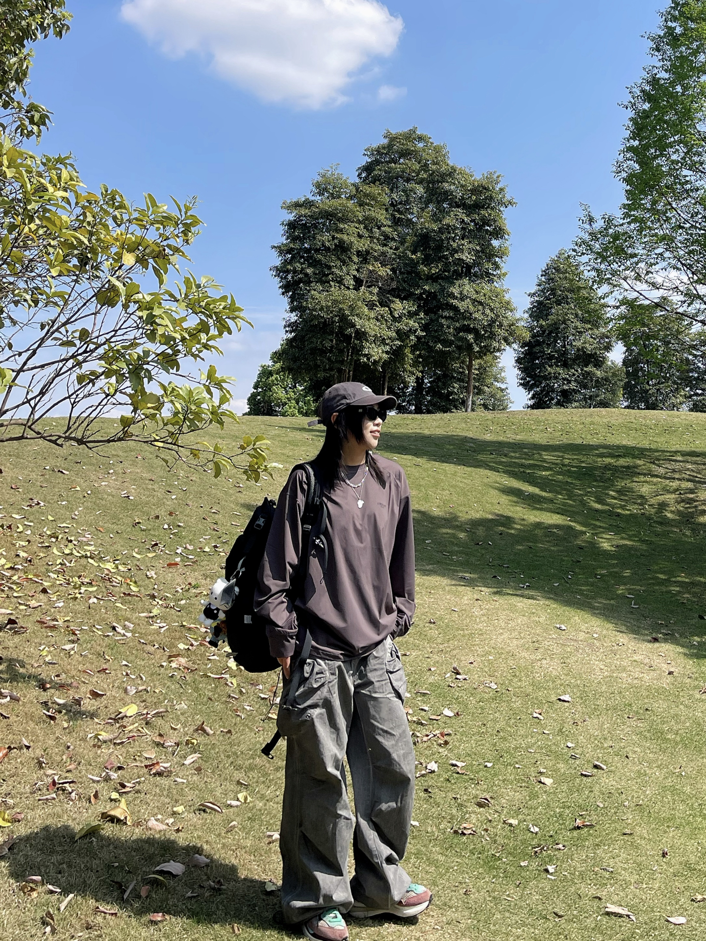 这套紫灰+灰绿的工装风太适合周末踏青啦! 轻松拿捏随性又利落的户外氛围感 速干长袖透气不闷很舒服 搭配垂感工装裤 宽松版型自带随性松弛感! 背上一个户外小背包带着我的“娃”出去溜了~ 不管是公园散步还是近郊徒步 都能穿出干净清爽的Cityboy气质 日常通勤也超适配~