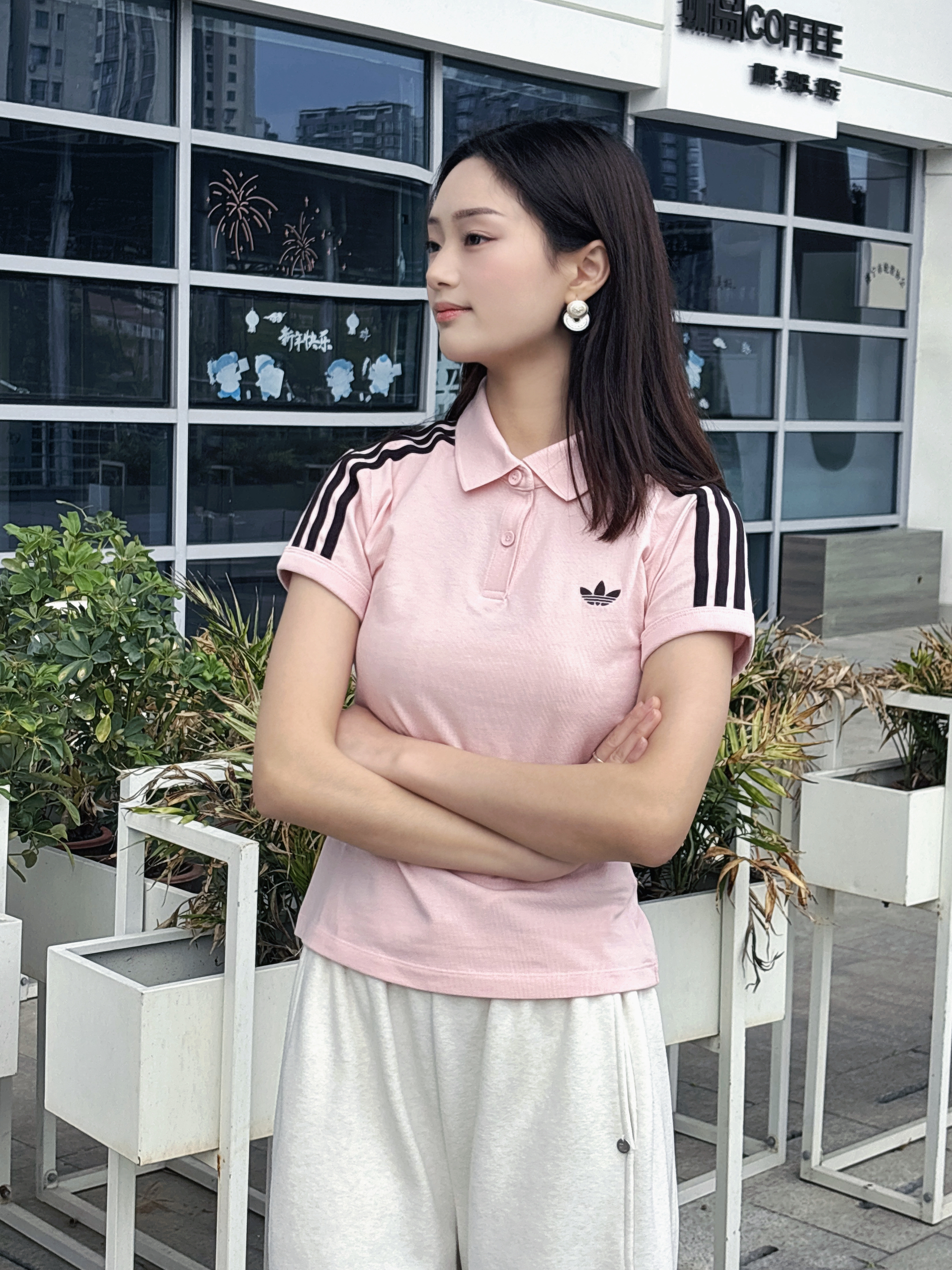 版型是那种微微收腰的,不会显臃肿,把腰线衬得刚刚好~ 经典三条杠+三叶草小logo,复古又减龄,韩系感直接拉满! 面料软软糯糯的,夏天穿也不闷汗,日常配运动裤、牛仔裤都好看,上课/通勤/约会都能穿,实用性拉满💯 颜色是很温柔的樱花粉,黄皮姐妹也能放心冲,显白又元气!