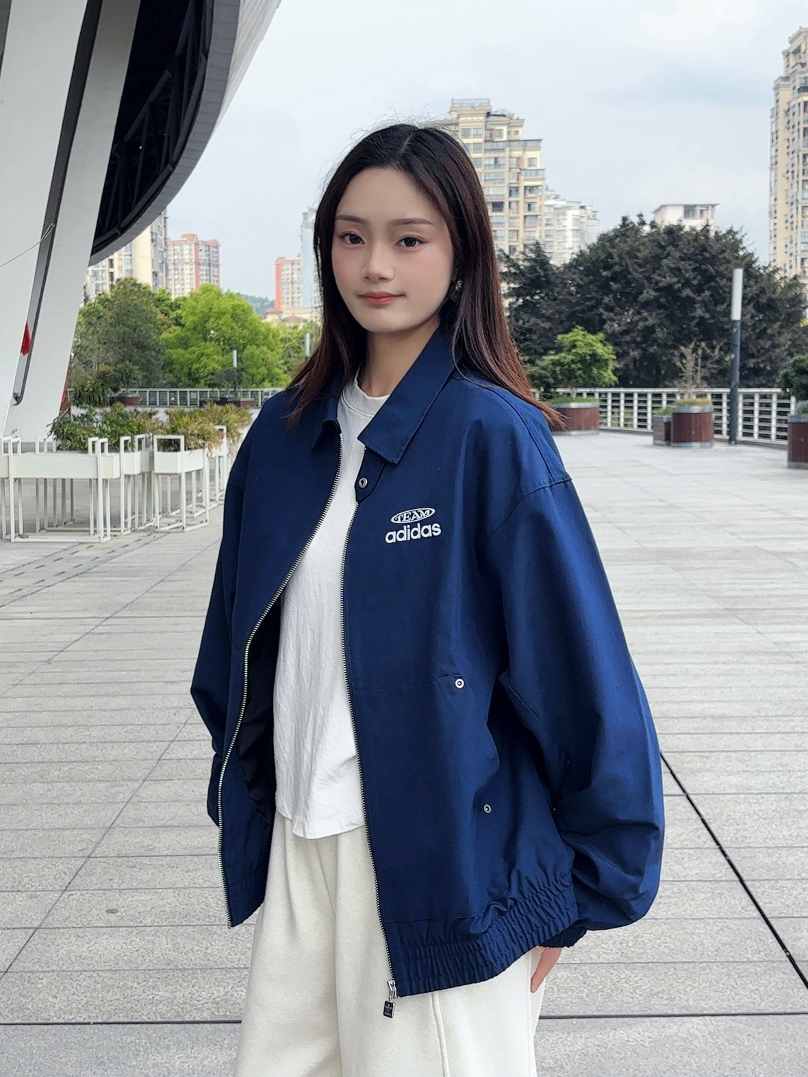 版型是那种宽松落肩款,对各种身材都很友好,藏肉又显精神~ 面料是偏挺括的工装感,不会软塌塌,春天单穿、秋天叠穿都很合适,实用性拉满! 正面是低调的小logo,背面是经典三叶草大标,复古感直接拉满✨ 随便搭个白T+休闲裤/牛仔裤,就是韩系街头那味儿,出门不用费脑子想搭配~ 颜色是很正的藏青色,不挑人还显白,黄皮姐妹也能放心冲!