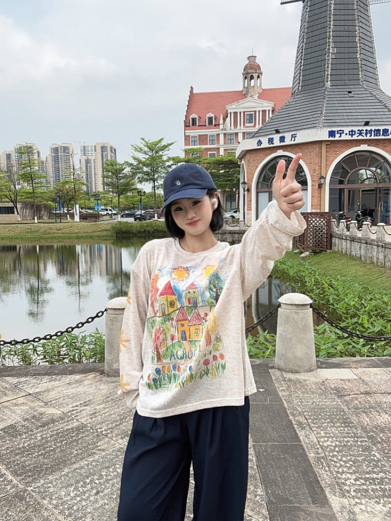 宽松版型是我的最爱😍🥰一上身就是ins博主那味儿!不是烂大街的款,小众设计感拉满啦😘😘穿出门基本不会撞衫哦🫶🫶圆领设计不挑脸型,温柔又带点文艺气息👍👍