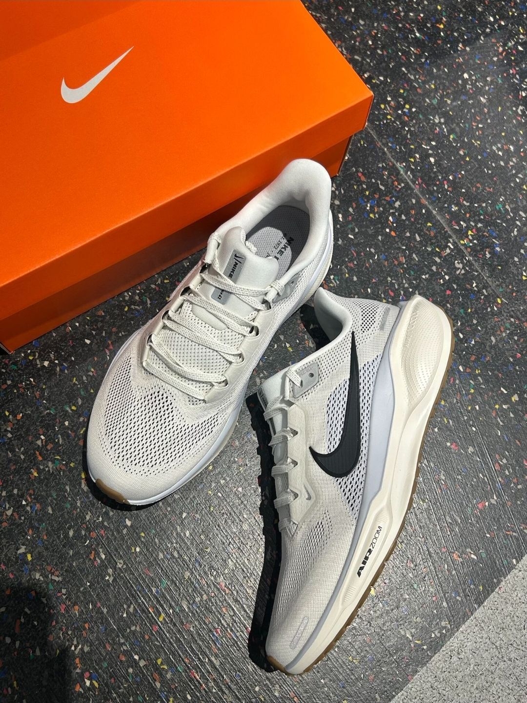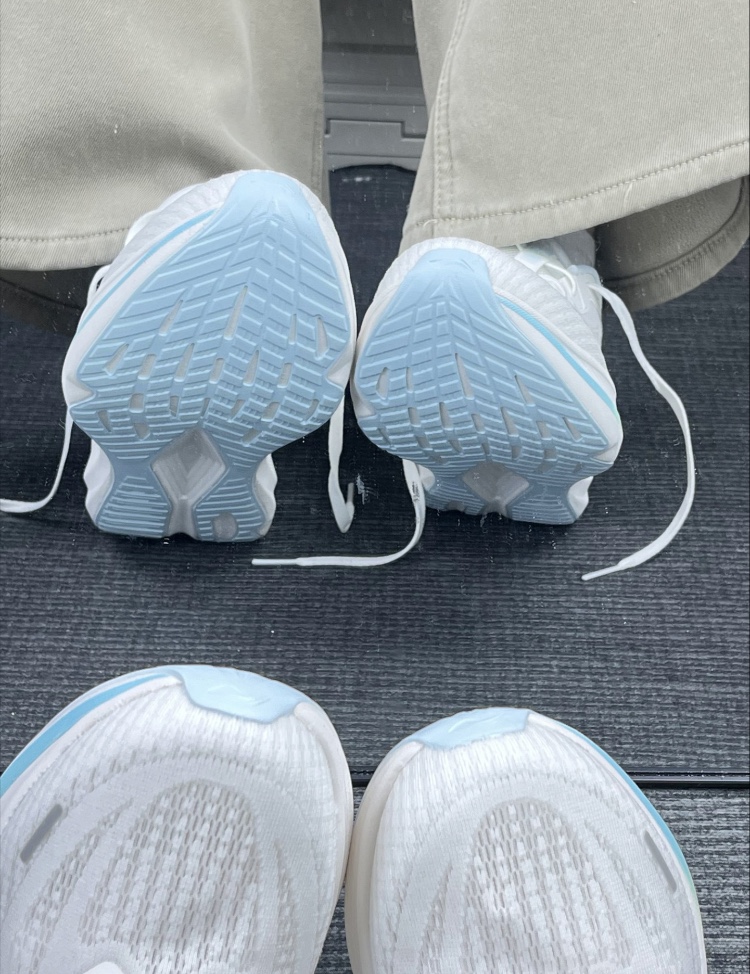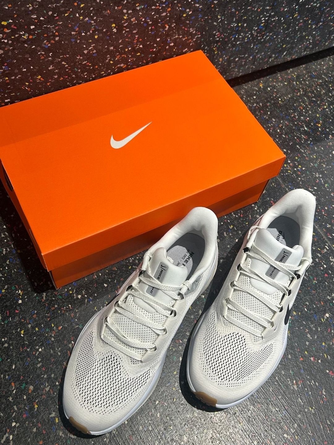 这双Pegasus 41我穿了一阵子,整体是偏浅的米灰色,鞋面织得挺密实,透气不闷脚,低帮设计对脚踝没什么束缚感,平时搭配裤子也很轻松。 中底依然是React泡棉,走路和慢跑时的软弹感挺扎实,不是那种一踩就陷下去的软,而是能托住脚,走久了也不容易累。外底的耐磨橡胶覆盖了关键受力区,纹路也深,我下雨天走过瓷砖地,防滑确实不错,目前鞋底也没什么明显磨损。 上脚第一感觉是贴合,鞋楦宽度适中,前掌不会挤...