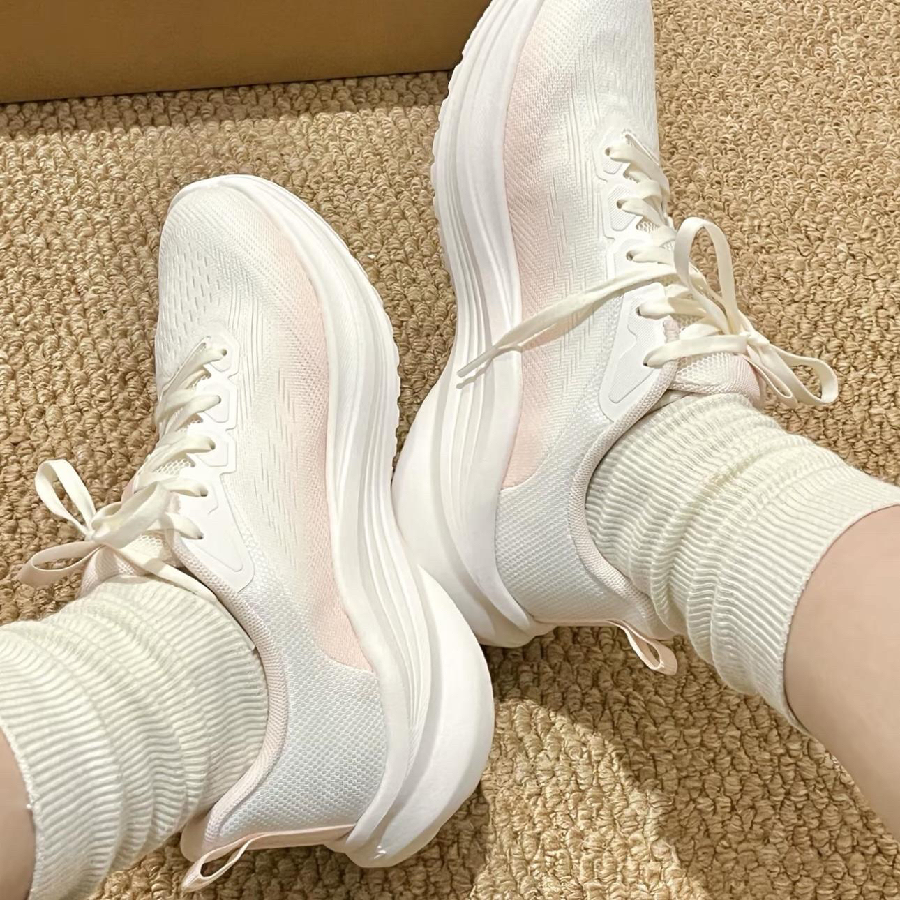 好喜欢李宁这双轻风V3的运动鞋配色 粉粉嫩嫩的好少女感哇🩷 上脚感觉很轻盈,鞋底很有弹性 鞋底带点厚度穿着还挺显腿长的 而且鞋面透气效果蛮不错的诶! 跑步或者通勤都可以穿