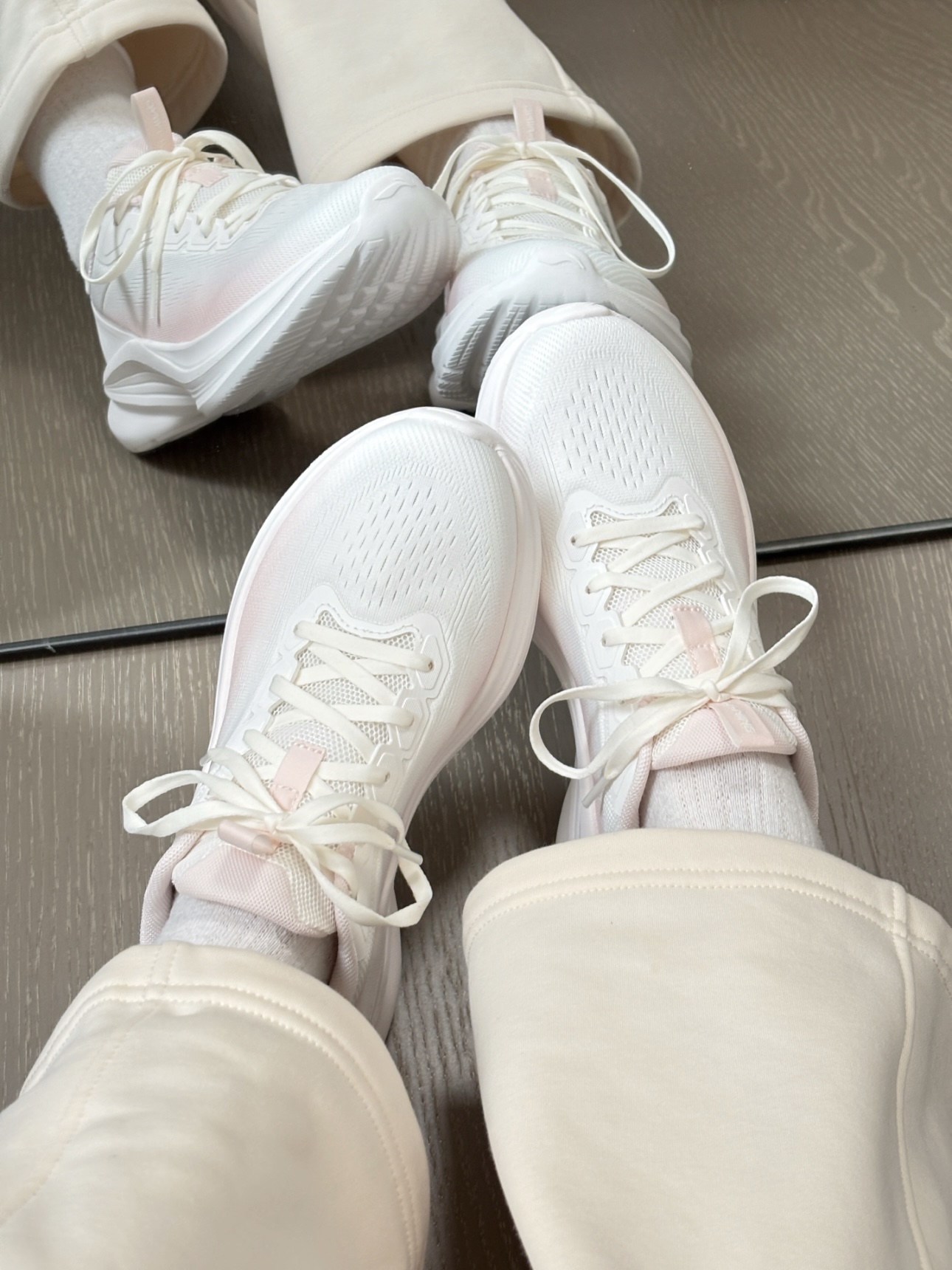敲有少女感的一双小跑鞋呀 李宁轻风又又戳我心巴上啦! 低饱和度的嫩粉色尊嘟乖 上脚我觉得蛮轻便的 回弹力也不戳 小增高也在悄咪咪拉长比例哦 冬日慢跑或者日常搭配通勤都好看滴 温柔的小跑鞋➕1 又可以快乐开跑啦🏃♀️✌️