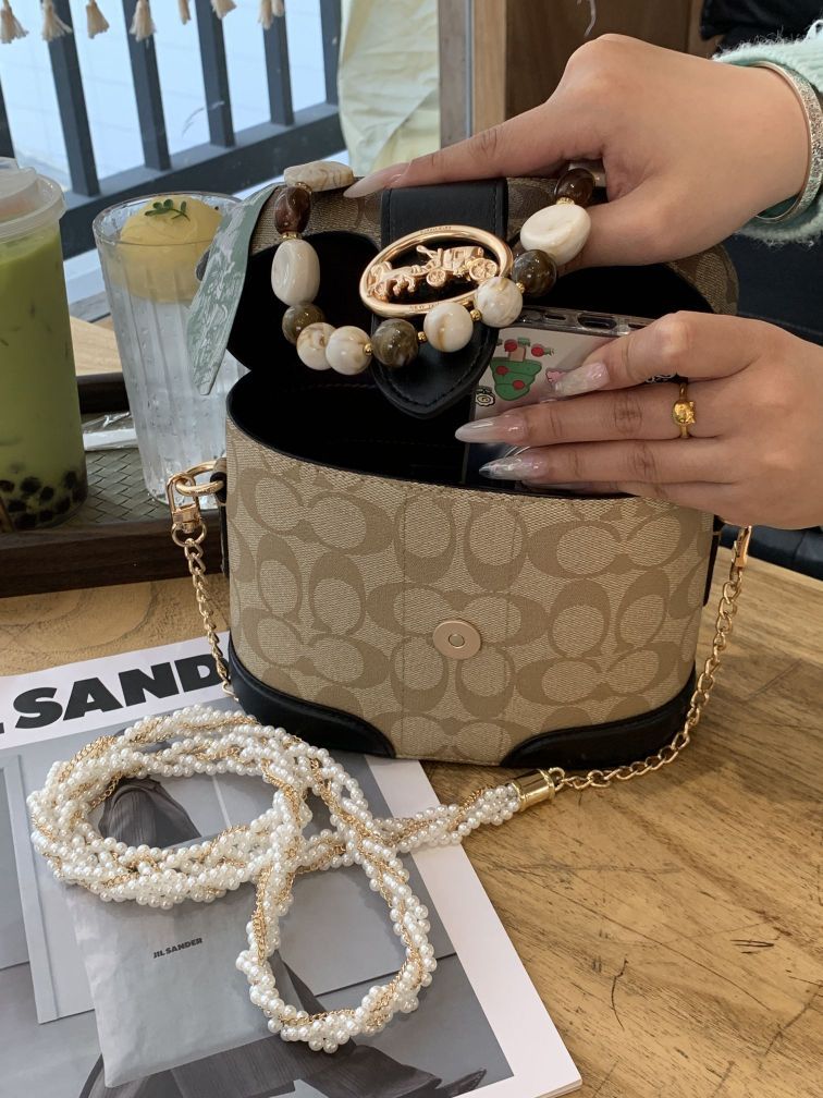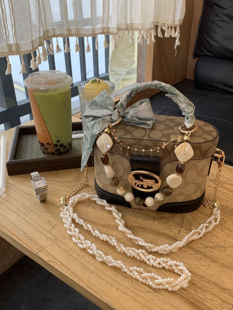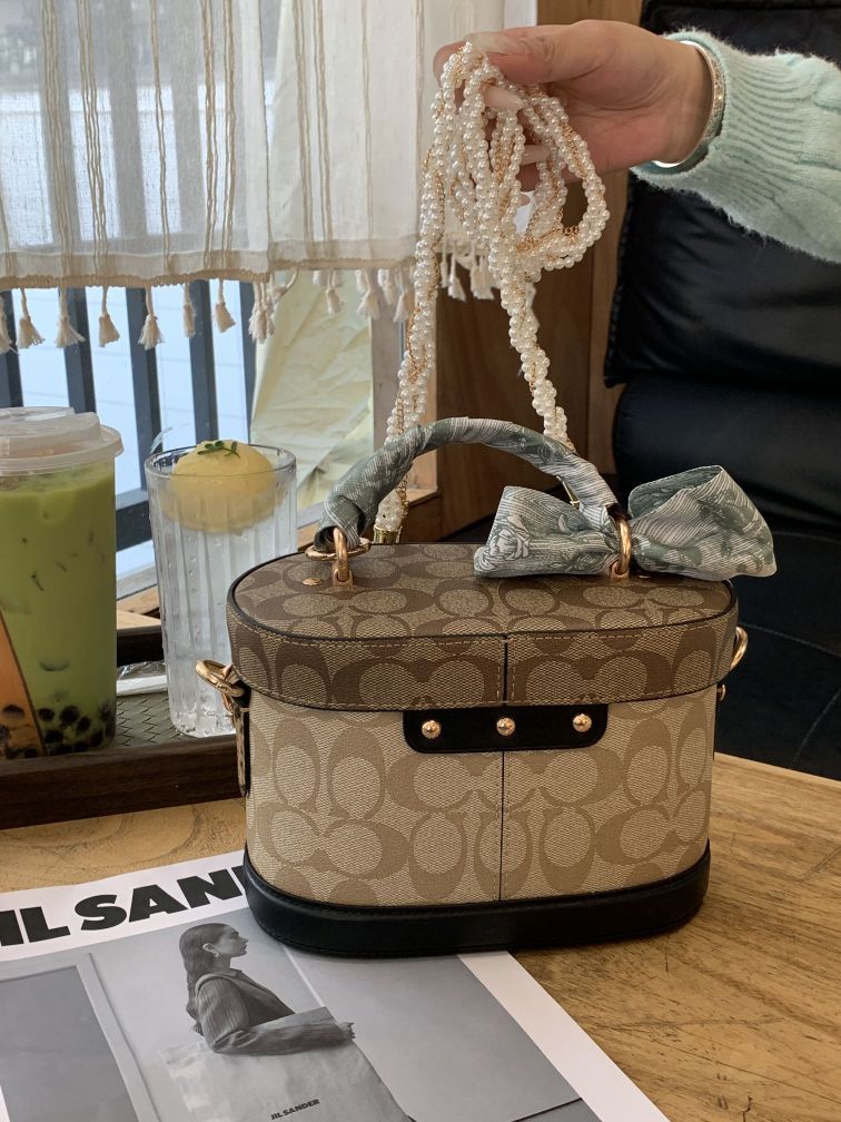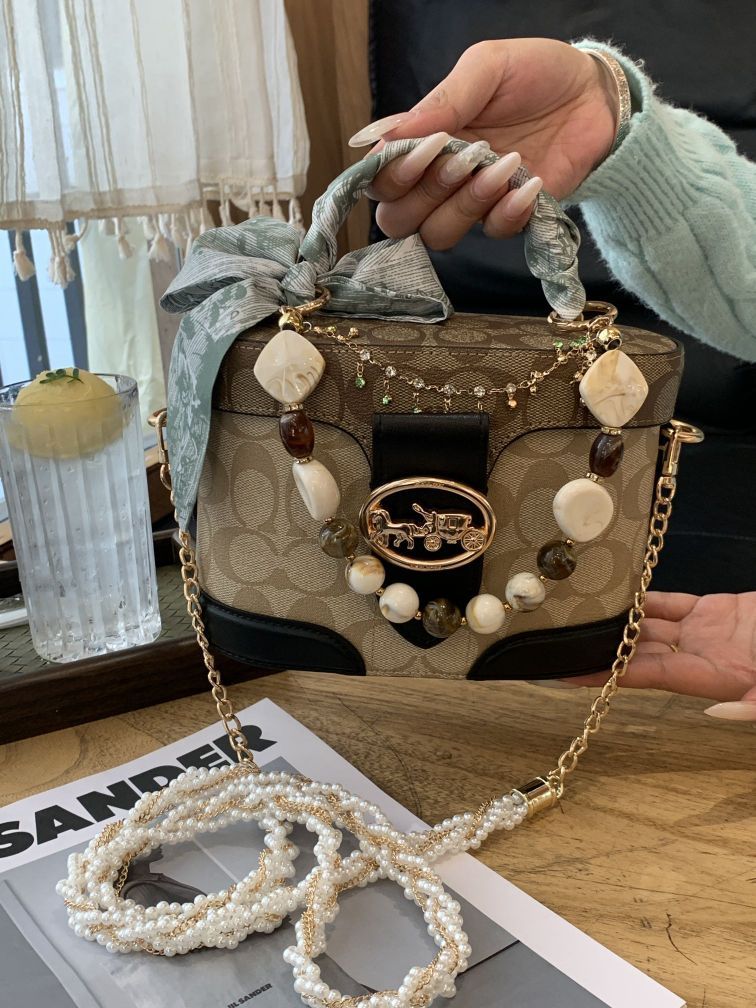 Coach这只老花盒子包太懂女生了!经典老花拼接温柔配色,系上薄荷绿丝巾,再搭珍珠链条,复古又精致。日常通勤或约会都适配,容量也很能装。送她这份仪式感,让她每次拎包都想起你的用心~小众又显贵,很难不爱!✨