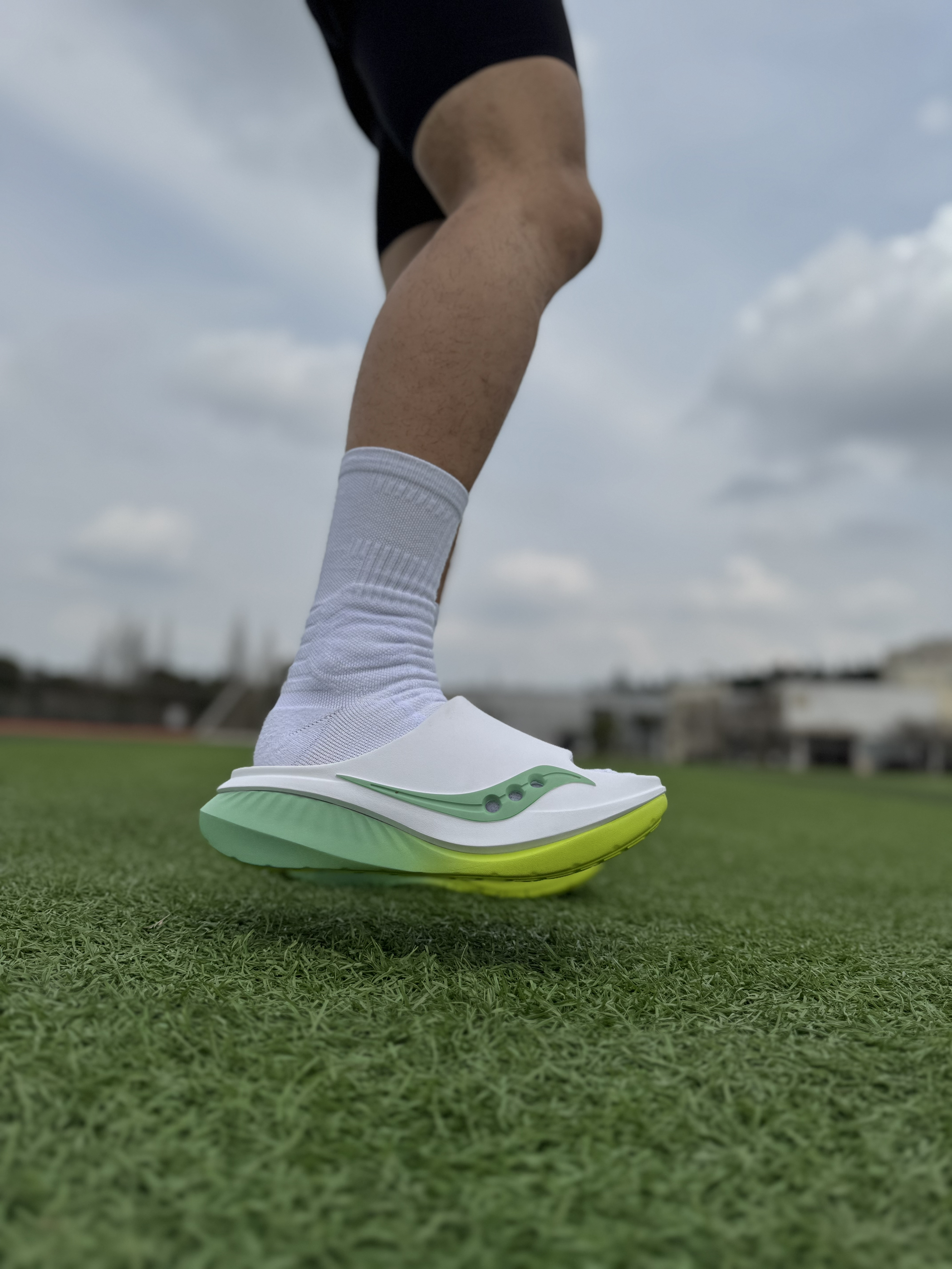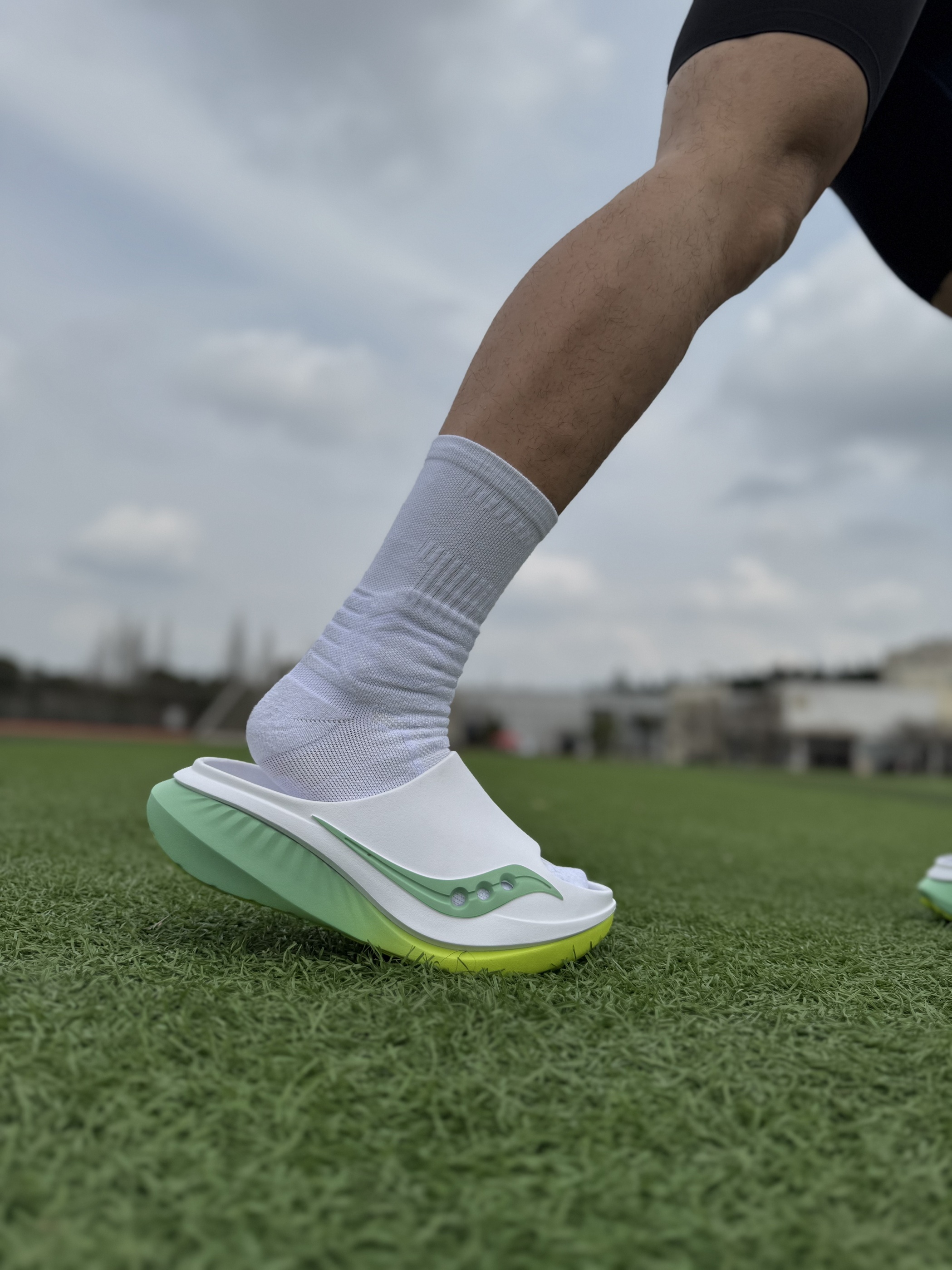 宝子们今天给你们分享一双我平时训练完穿的拖鞋😁 每次跑完步腿酸到抬不起来❗️换上这双索康尼家的 CRADLE 3一字拖,感觉脚上真舒服😂 它鞋子中底符合人体工学的足弓支撑,硬度刚好贴合脚背弧度,给疲惫双脚稳稳的支撑👍拖鞋也很轻盈,穿起来不重,不会累脚。 我穿的这款白绿撞色清爽又百搭,很有青春活力气息