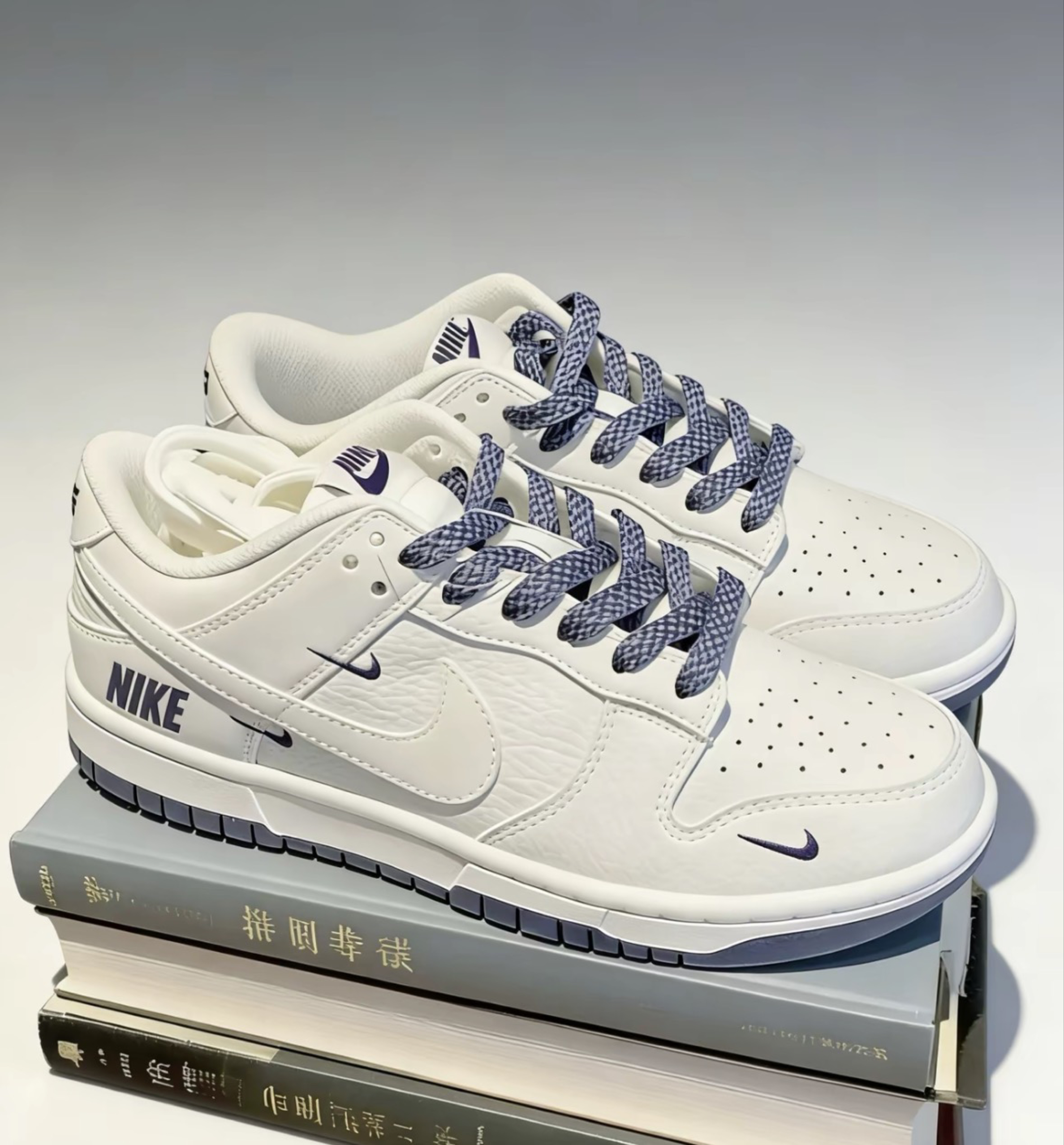 Nike Dunk藏青小勾,低调高级感拿捏了II刷到这双NikeDunk藏青小勾就一眼心动,入手后发现实物比网图更有质感!米白色鞋身搭配藏青色细勾和鞋带,还有鞋侧的NIKE字母印花,细节处全是小心机,不会像大logo款那样张扬,低调的高级感直接拉满。 上脚第一感受是鞋型超合脚,Dunk的经典楦头不挤脚,对宽脚星人很友好。鞋垫的软度刚好,日常上班通勤走一天也不累,藏青配色还特别耐脏,比纯白款省心太...