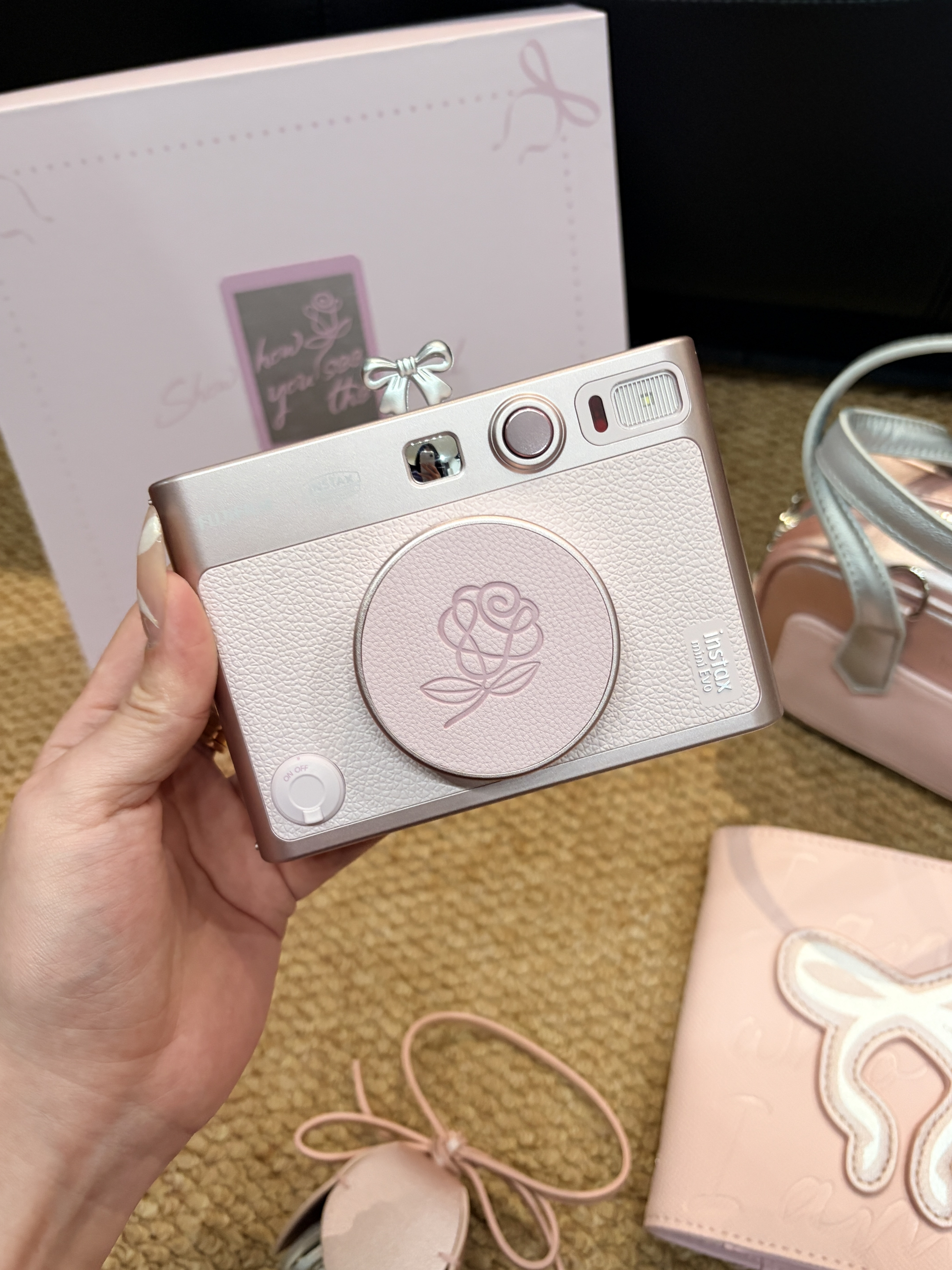 不允许还有姐妹不知道这个🎀 富士 mini Evo 玫瑰金机身超有质感 配件齐全一站式配齐~(。・∀・) 礼盒颜值太高了 摆在那都好看 送礼自用都很可