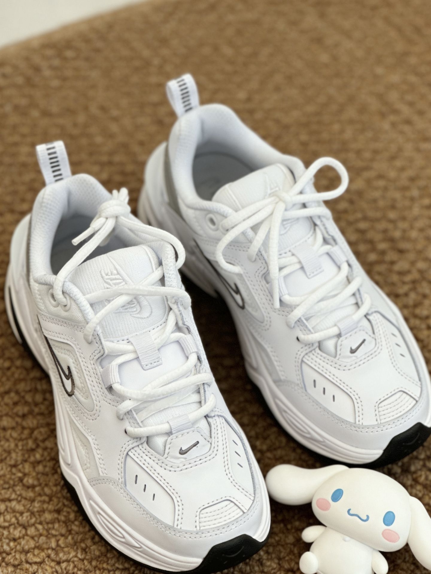 耐克老爹鞋真是我的心头爱啊!|||这双Nike M2K Tekno真的是我的年度最爱!白色皮革拼接鞋面干净百搭,厚底设计悄悄增高还超稳,橡胶底雨天也防滑。上课、逛街、通勤都能穿,配直筒裤、卫裤都和谐,脚感软乎不累脚,颜值与实用性双在线,学生党闭眼冲就对了!#学生党平价Nike推荐