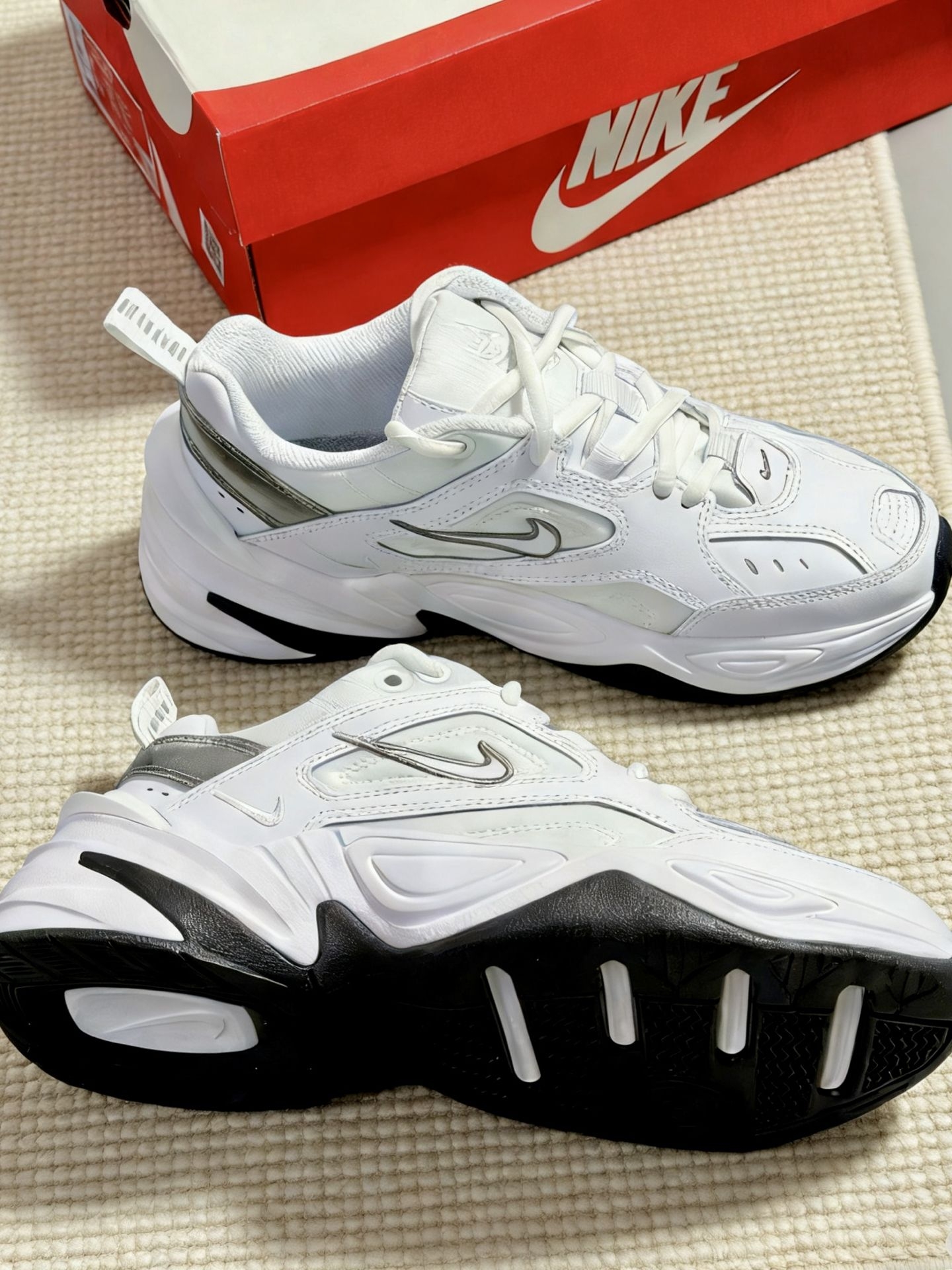 ✨挖到宝了!彻底沦陷Nike M2K Tekno~|||厚底上脚一点不笨重,踩上去软软的,增高又自在,鞋面好打理! 平时穿个牛仔裤或运动裤套上就能出门,整个人都变复古休闲了。秋冬配袜子穿也很有感觉~ 鞋型耐看,属于那种不用多想,套上就出门的鞋。 有没有跟我一样执着3cm以上增高的老爹鞋😎 #我最百搭的单品 #女生的宝藏老爹鞋
