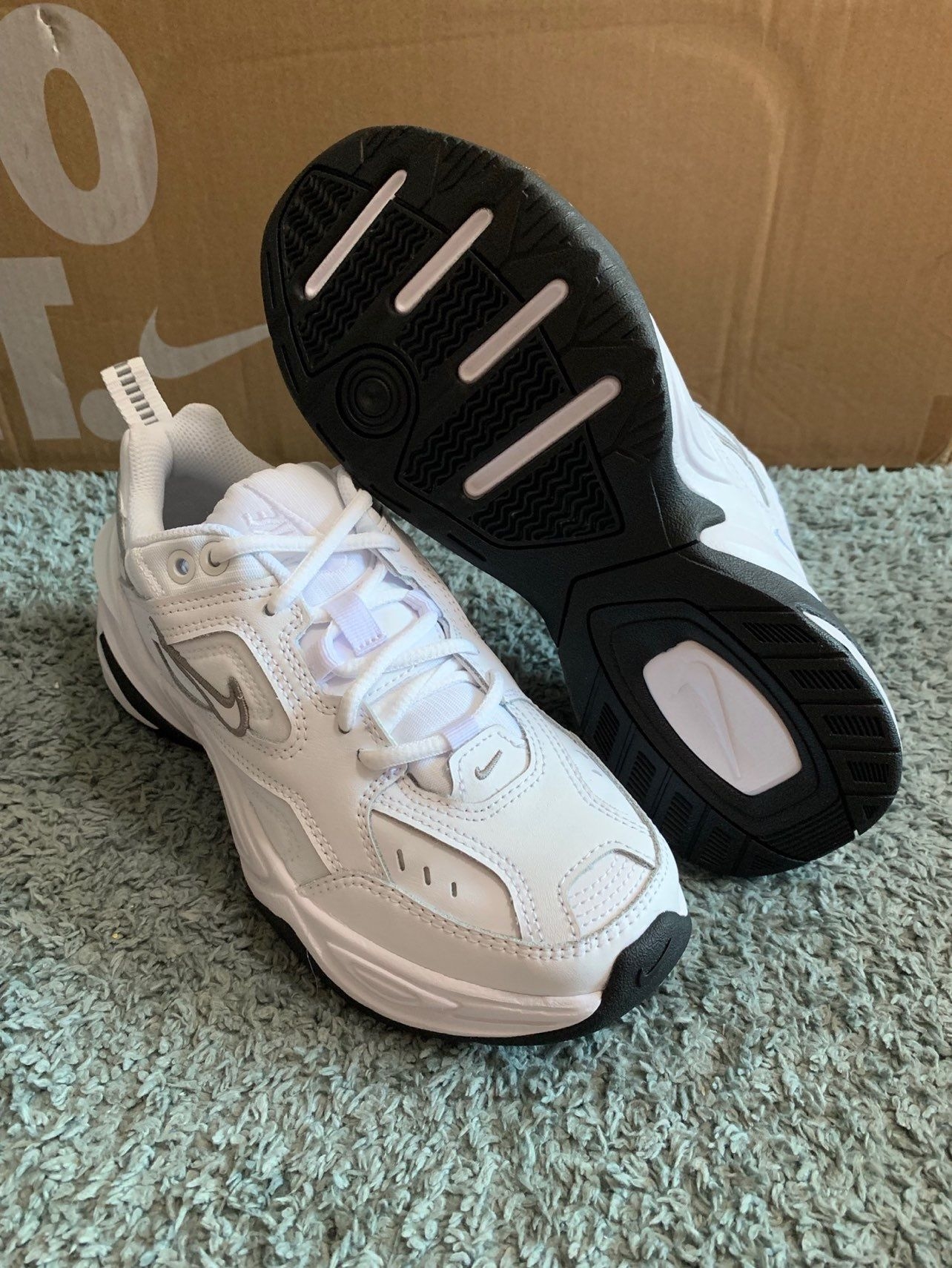 鞋柜必备老爹鞋|Nike M2K白银|||今天开箱分享的鞋款👟:Nike M2k 白银 女款老爹鞋 🌟这款M2K纯白白银配色采用了质感很好的牛剖层革,鞋侧 SWOOSH上带有白银色,在单调的纯白上增添一些类似的点缀,显得低调简约。在冬季穿着想必也是非常保暖舒适! 🌟M2K 白银老爹鞋 增高百搭一百分!热门白银第一名!一年四季都很好搭配的神仙老爹鞋!搭配情侣鞋妥妥的。 @得物好物分享 @得物社...