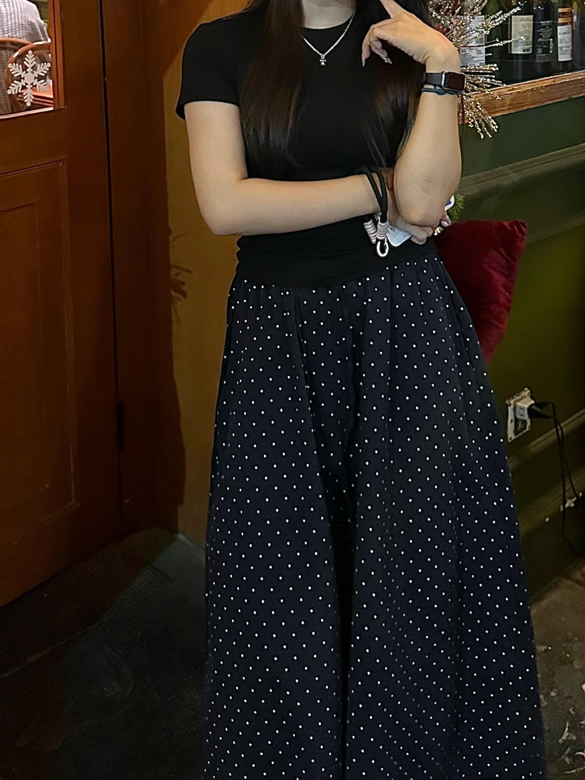 谁懂啊!懒人约会穿搭yyds 万能黑T+波点裙 绝配呀!!! 真的是懒人必备黑T真的是万能百搭王 随便搭一条波点阔腿裤就很有feel 显瘦又藏肉,舒适度直接拉满 日常出门不用费脑,随便一套就很出片 学生党、打工人必备神器随便穿都好看~ #每日穿搭 #显瘦穿搭 #波点裤 #慵懒慢人穿搭 #春日约会穿搭