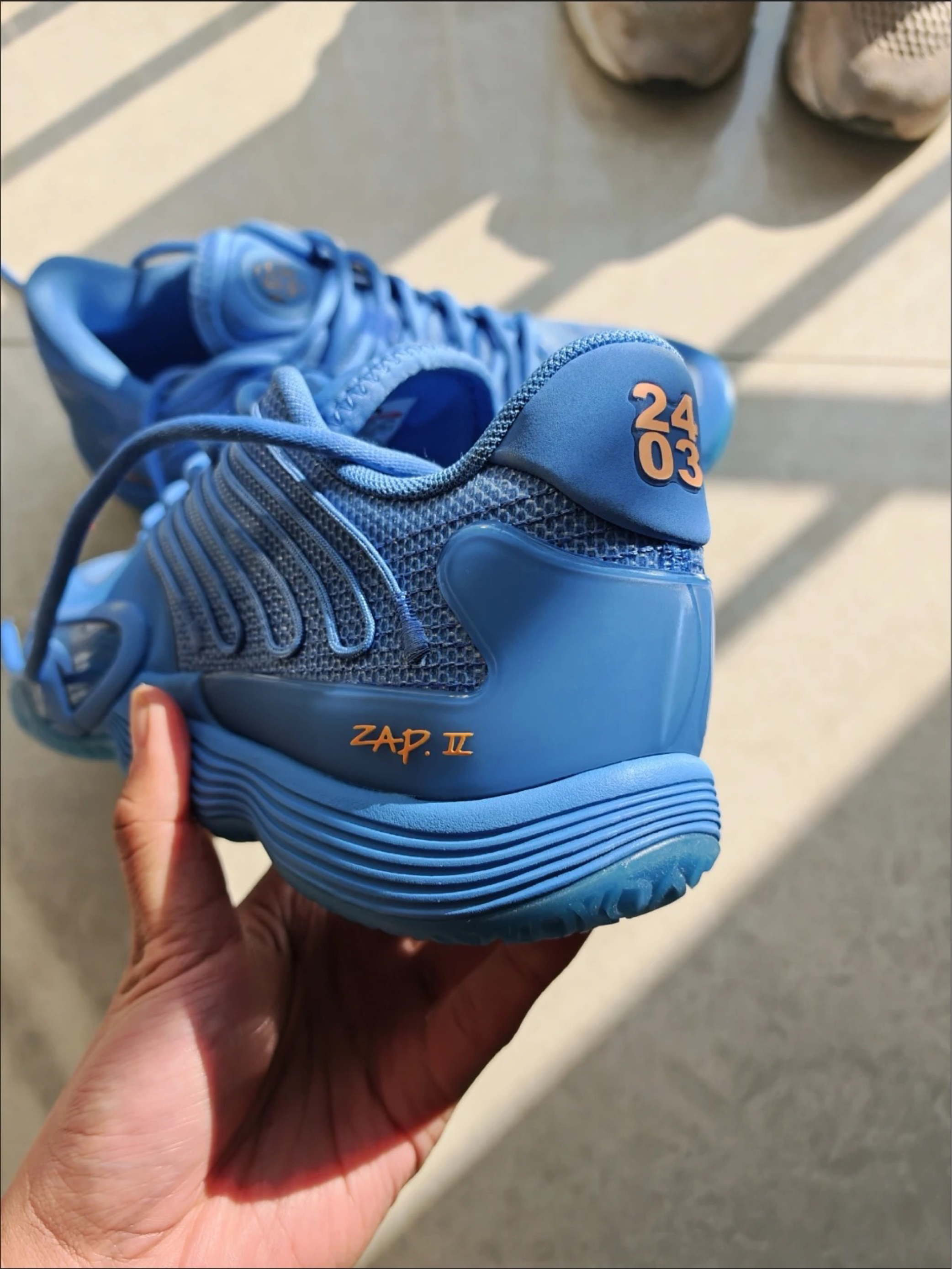 🏀 安踏ZAP II 「晴空蓝」| 速度与颜值双在线 清爽晴空蓝鞋面,一眼治愈夏日燥热,网纱透气材质+流畅波浪线条,上脚轻盈不闷脚,球场、出街都自带清爽氛围感。 鞋身标志性流线支撑条,搭配波浪纹大底,抓地力与抗扭性拉满,变向突破、急停起跳都稳如磐石,为速度型选手量身打造。 后跟ZAP II标识与鞋盒纹理设计呼应,细节满满,既是实战利器,也是潮流穿搭单品,让你在赛场与街头都能轻松成为焦点。 ...