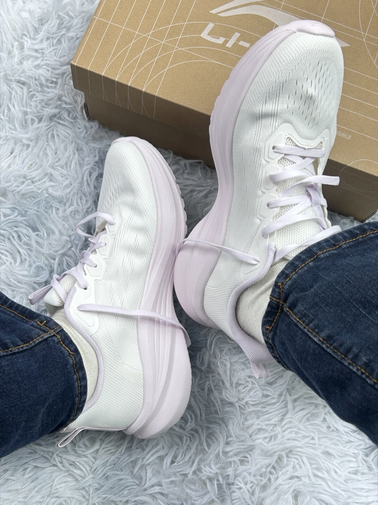 拆箱就觉得这双鞋长在我的审美点上,白紫配色温柔又不扎眼,网眼鞋面摸起来软乎乎的,上脚第一感受就是轻,像没穿鞋似的。 鞋底软但不塌,走久了膝盖没那么酸,这点是意外惊喜✨。 配牛仔裤、运动裙都不违和,细节加分,适合夏天出门。 鞋带是扁的,走快了容易松,得系紧点;白色网面太容易脏,蹭到点灰就很明显,得勤擦。 性价比还可以,两百多的价格,日常通勤、散步完全够用。 如果是要剧烈运动的话,支撑性可能差点意思,...