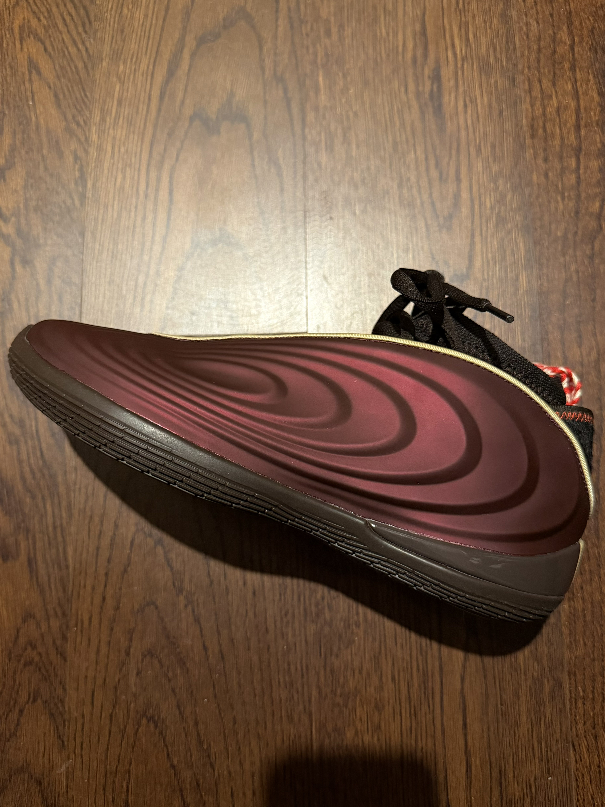 颜值:酒红主调+后跟人造马毛+红白拉环,年味与质感拉满 配置:全掌LightBoost+Lightstrike Pro 2.0,缓震上限不错 实战:X型TPU抗扭,变向稳、防侧翻在线;径向纹路抓地出色,适配节奏型打法 小结:颜值与实战兼备,马年主题细节到位,收藏实战两相宜