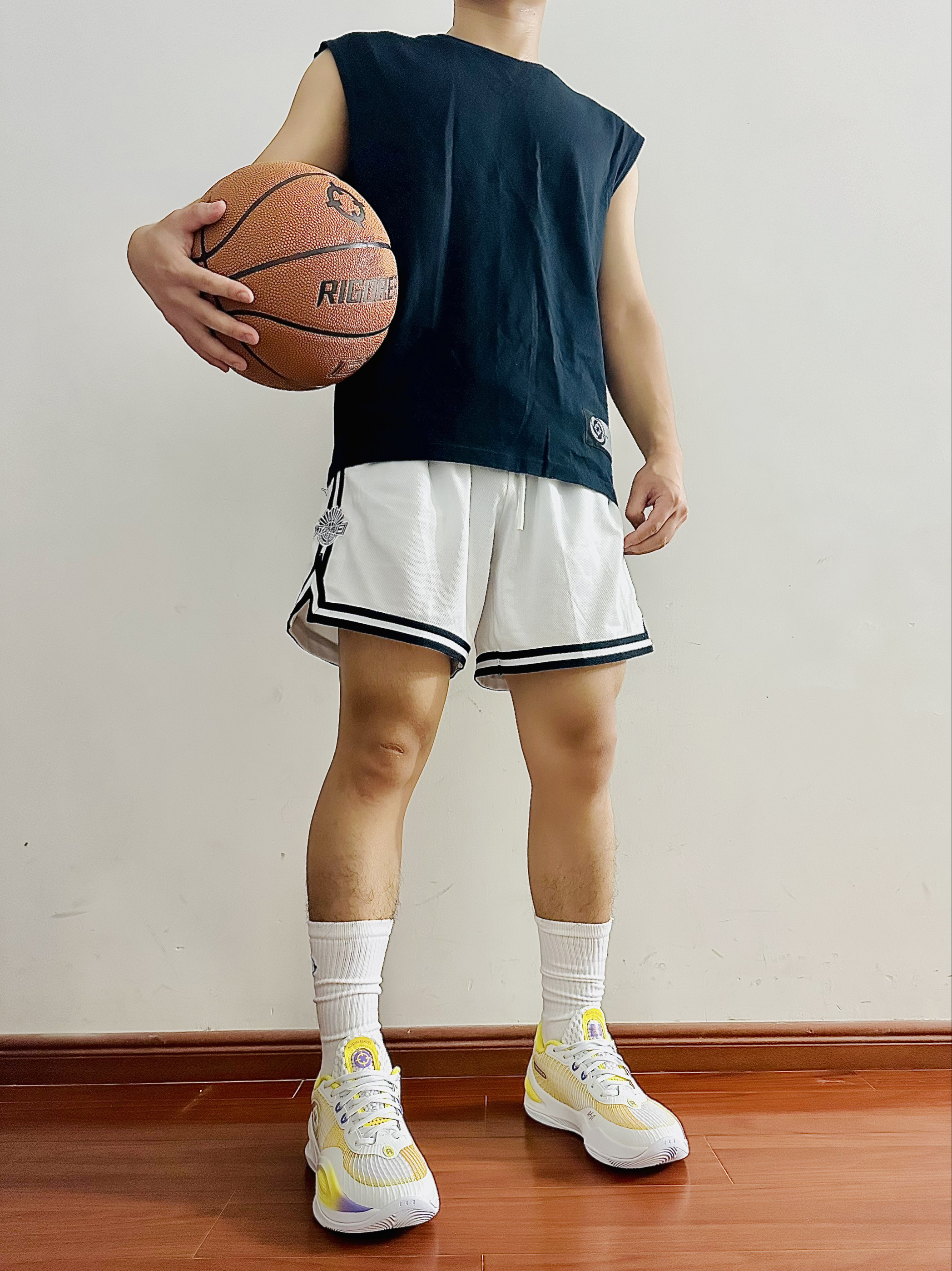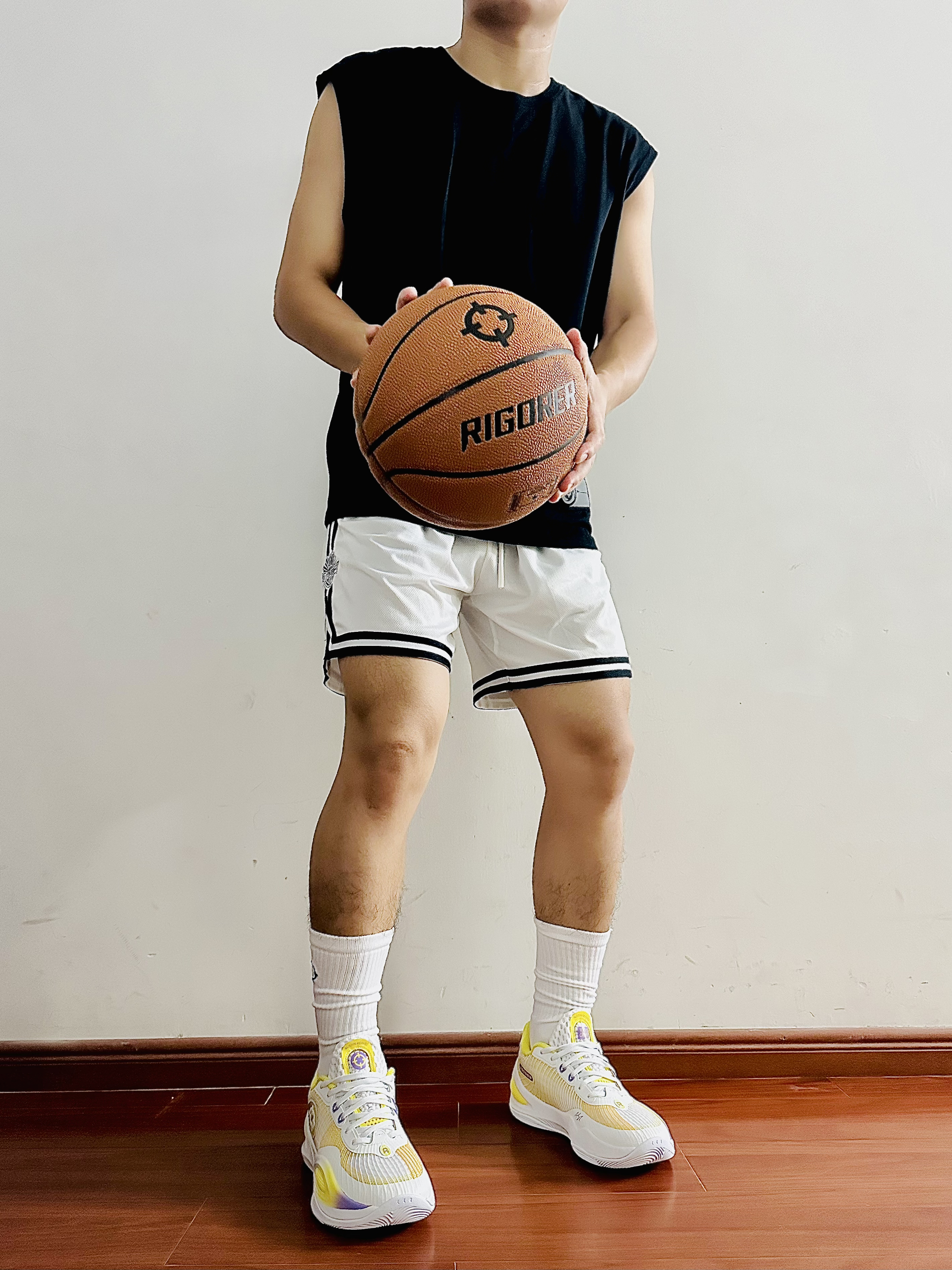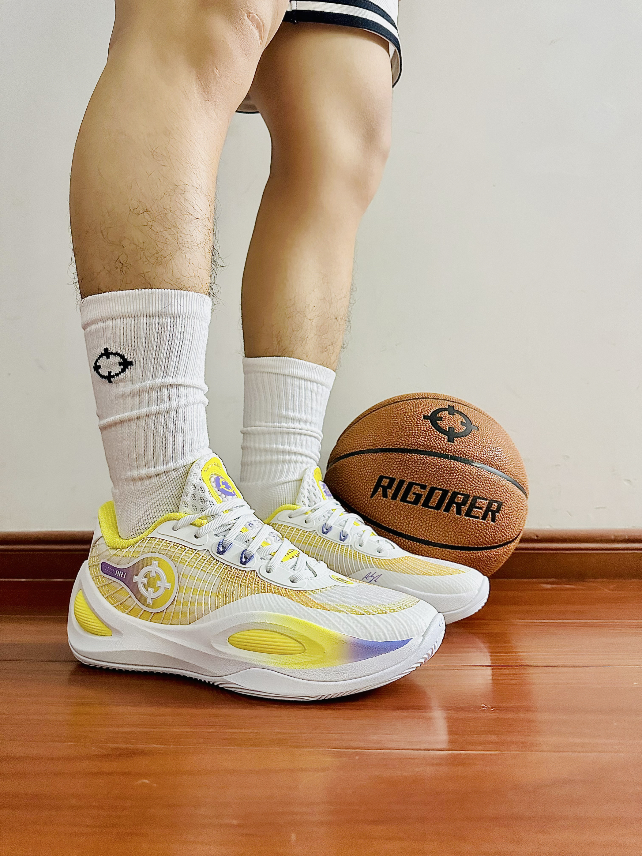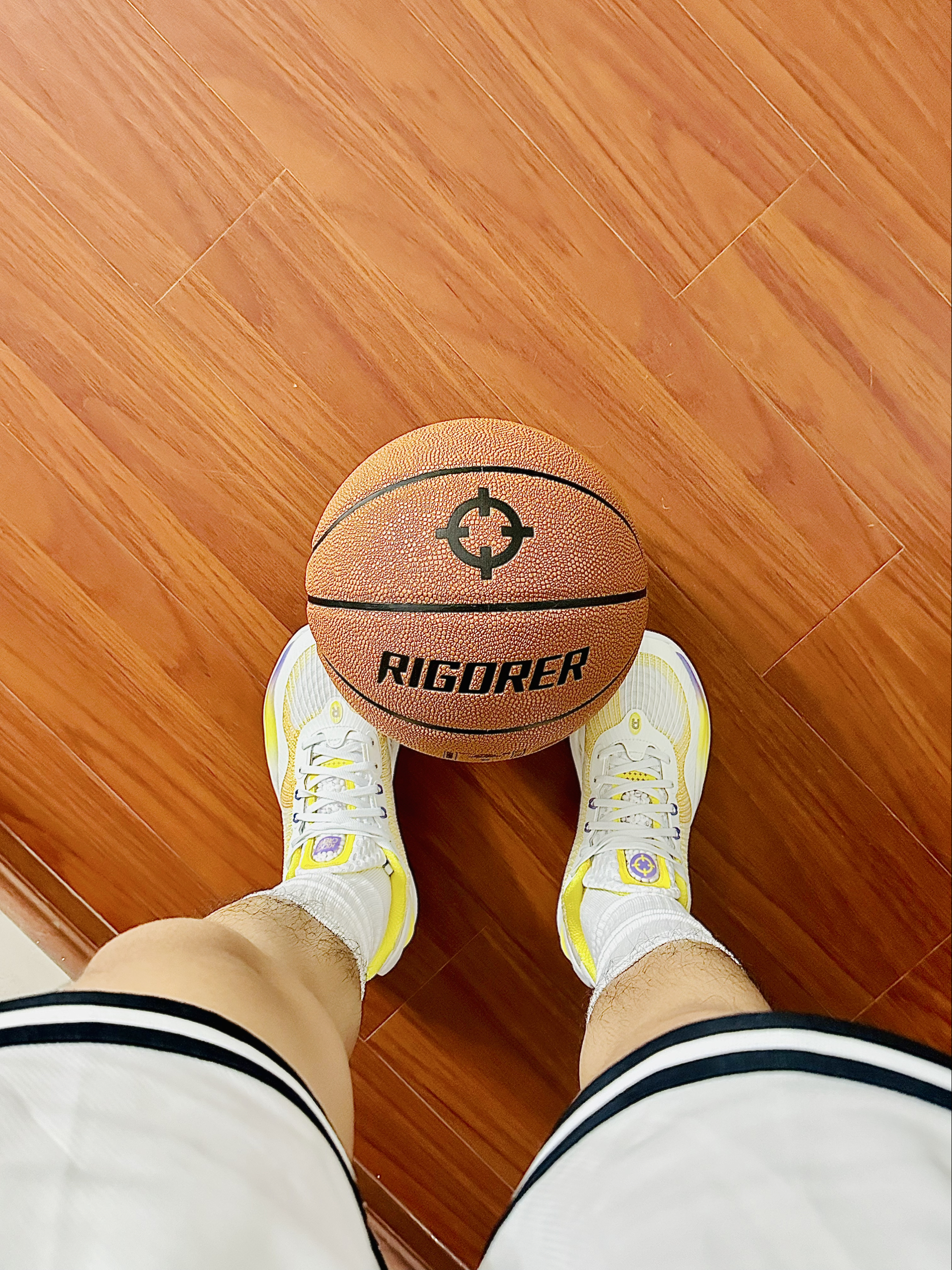 今天给大家推荐这款 准者 RIGORER 篮球 这款标准的比赛级别的七号篮球🏀 表皮PU的材质耐磨防滑 质感柔软细腻 打球的时候不会打滑 很黏手超给力🔥 室内外球场都可以打 运球投篮都很舒服😍 还有这款实战篮球袜 袜子整体很厚实 毛巾底设计 上脚脚感很不错吸汗效果杠杠滴💯