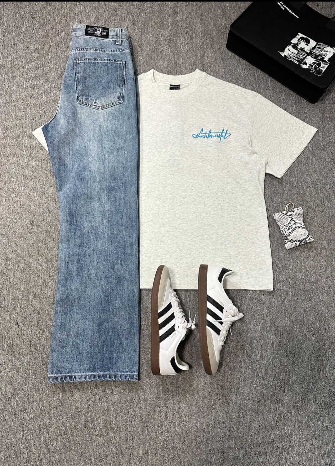 今天给大家分享一套夏季搭配👔 这件黑色短袖真的很哇塞💥 纯棉的面料上身很舒服😌 搭配一条复古蓝的牛仔裤👖 直筒的版型显高显瘦 夏天出街穿这套绝对很帅❗️ 喜欢的点赞支持一下吧~