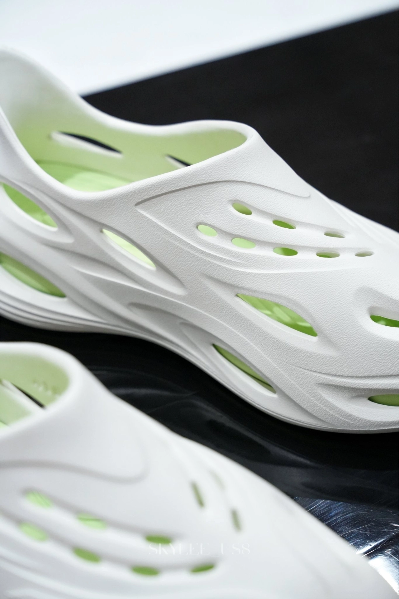 最近天气终于暖和一些了,打完球也可以换上洞洞鞋了,白色鞋身加上荧光绿的中底颜值没话说!之前一直在穿另一双迷彩的同款飞影洞洞鞋,脚感很舒服,中底还是可拆卸的,夏天海边沙滩也可以轻松驾驭🫣