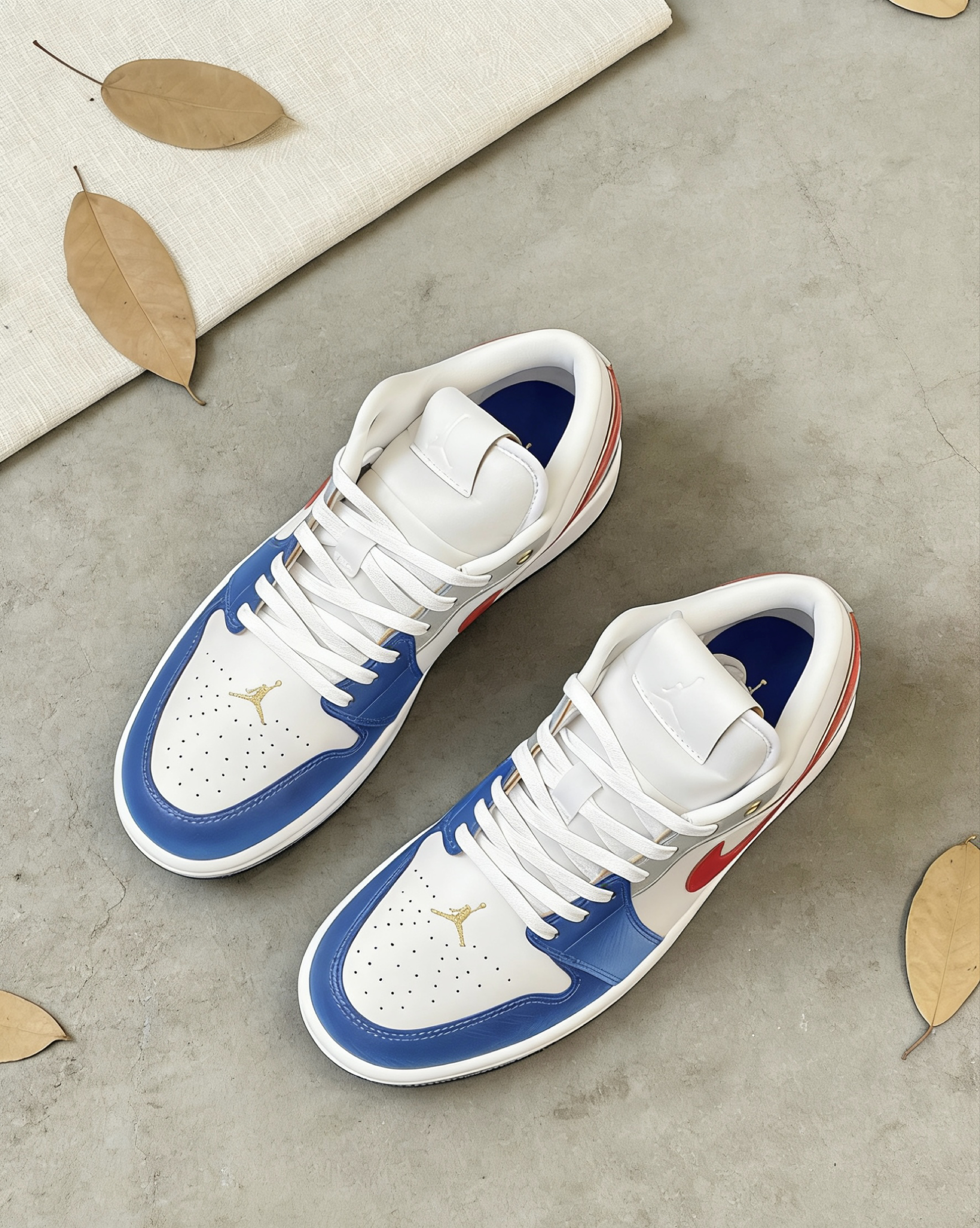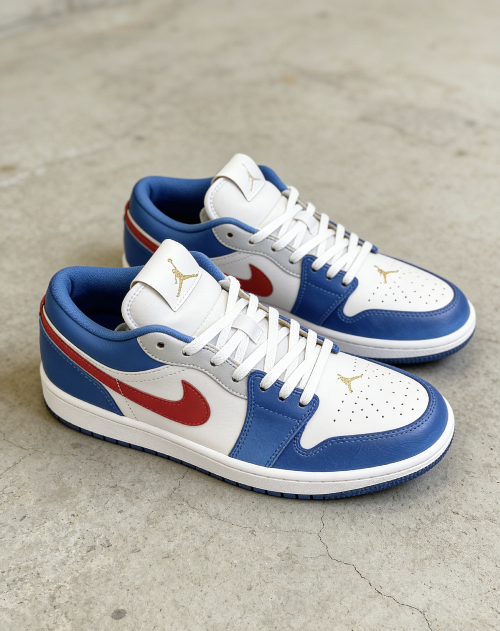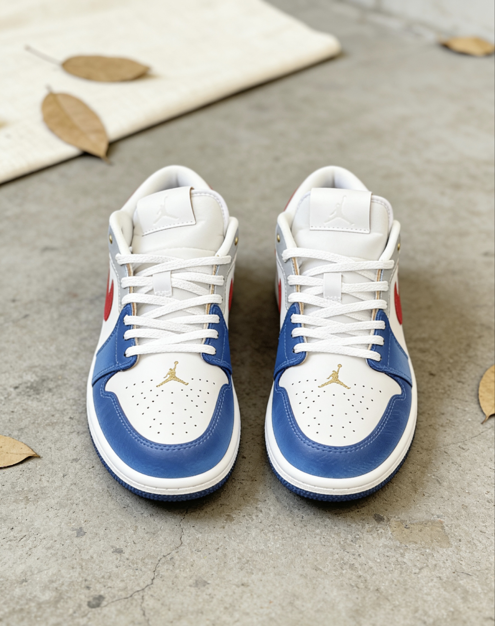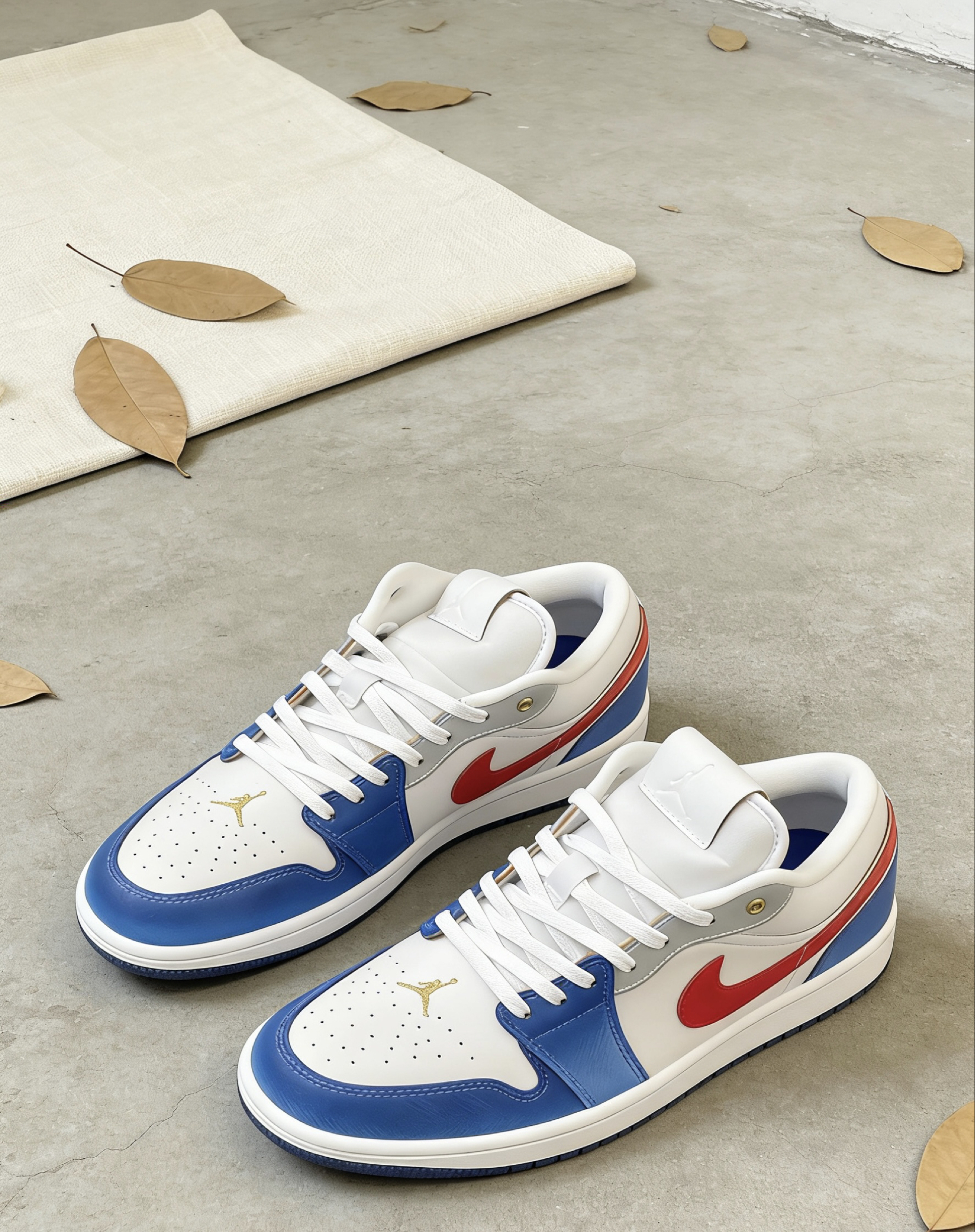 刚上脚三天,鞋头和后跟都不磨脚,走路久了也没闷感😌 白蓝红撞色很吸睛,配运动裤、牛仔短裤都很亮眼👖 低帮版型显利落,夏天穿不闷脚,透气感还可以👟 皮质部分容易留印,日常要注意别蹭到,擦起来还算方便🧹 这种高饱和度撞色鞋,你们平时会怎么搭衣服?🤔