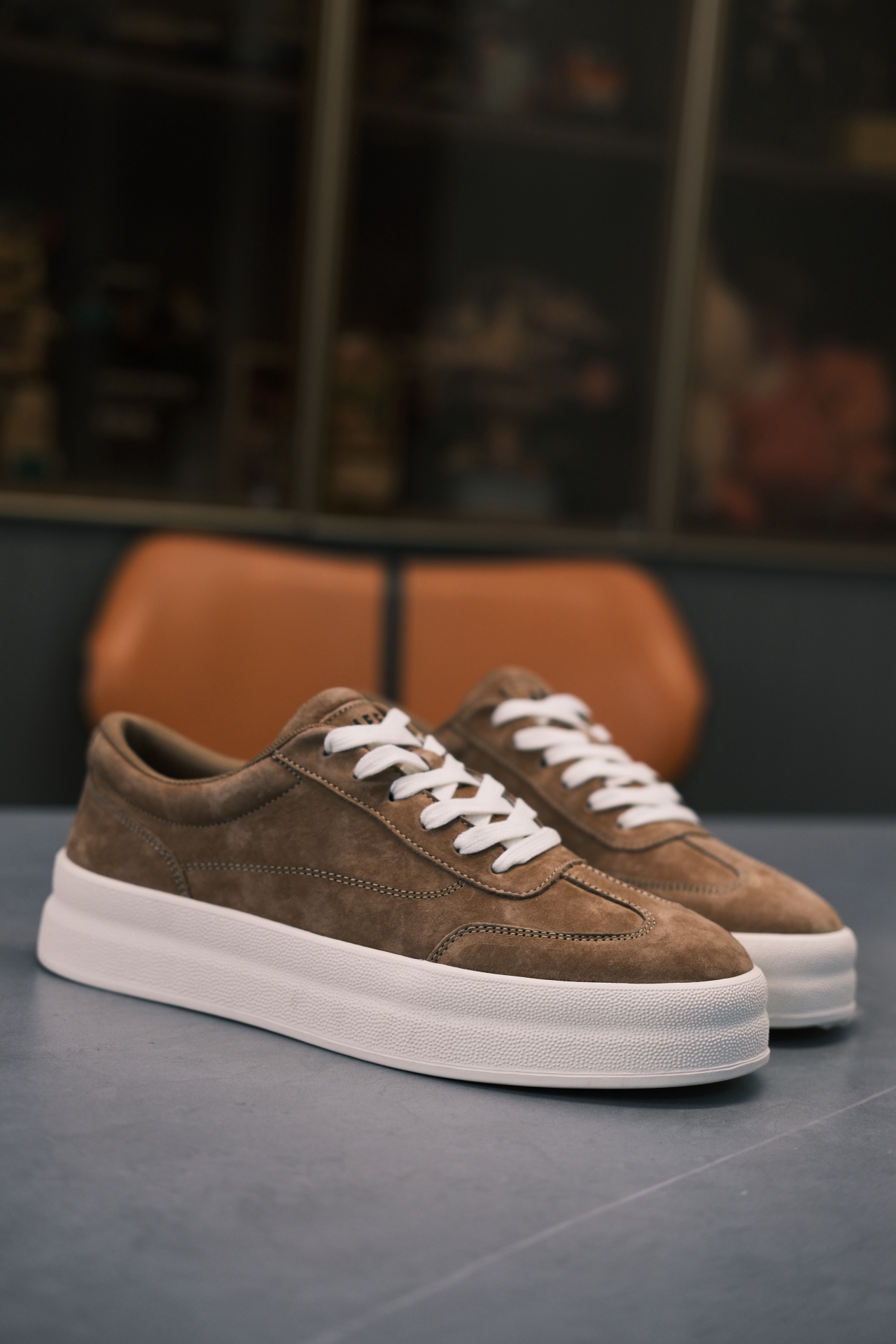 你看这个焦糖棕麂皮,质感直接拉满,摸起来软乎乎的,氛围感一下就上来了! 厚底设计还能悄悄增高,小个子兄弟直接狂喜,显高又显腿长! 关键是它巨百搭!配牛仔裤、工装裤、甚至西装都好看,通勤、约会、遛弯全能hold住。 上脚软弹不磨脚,走一下午都不累,细节做工也很扎实,这个价位真的捡到宝了! 喜欢复古休闲风的兄弟们,这双真的可以闭眼冲!✅