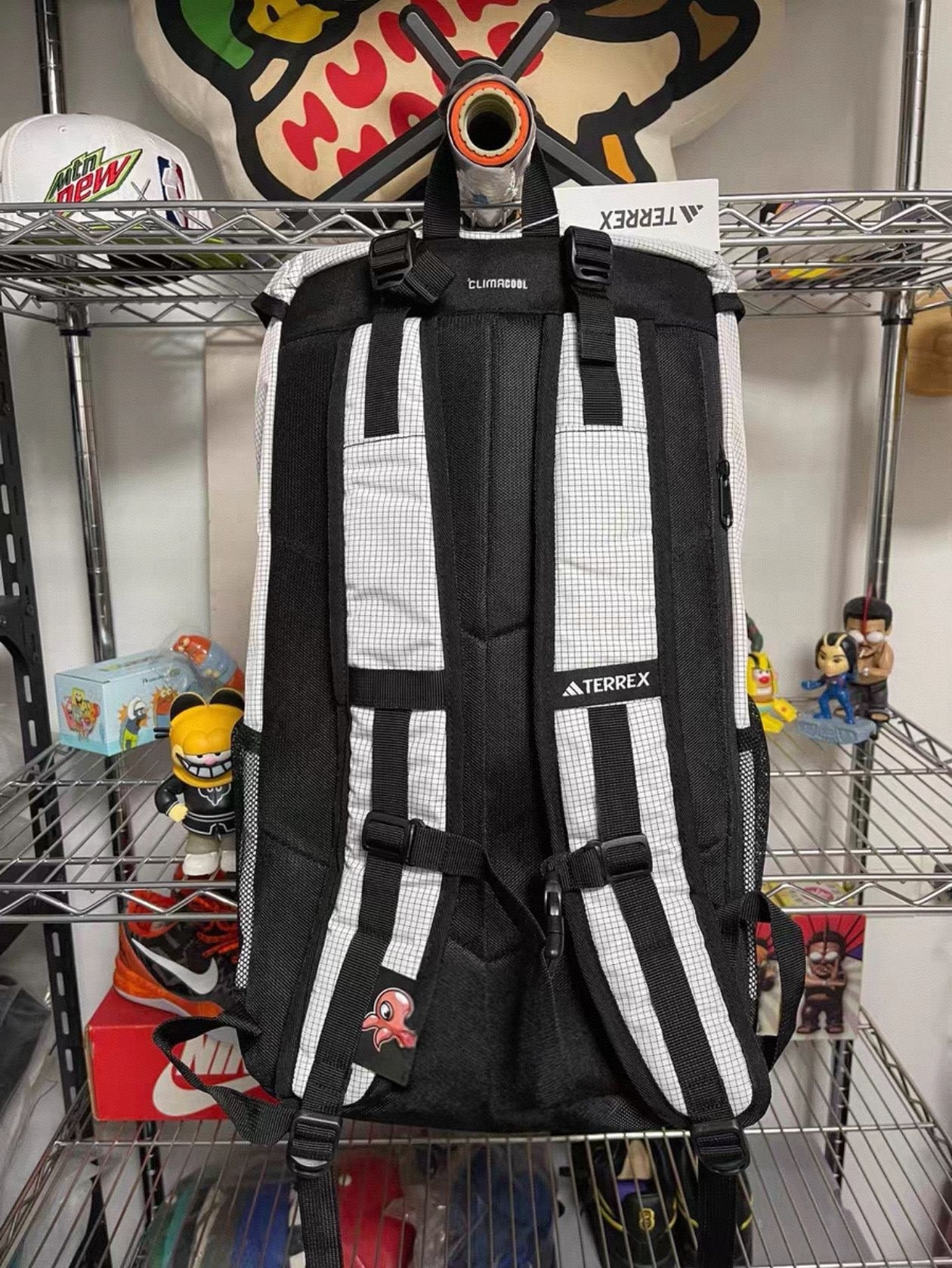 🎒阿迪达斯TERREX徒步背包,专为户外设计,轻量透气网布+黑色织带,简约又实用!正面弹力绳可固定登山杖或衣物,侧边网袋方便放水瓶或小物,容量适中,短途徒步、登山都很合适⛰️。肩带人体工学设计,背负舒适,适合长时间使用。TERREX系列主打户外性能,防水耐磨,户外爱好者必备!✨
