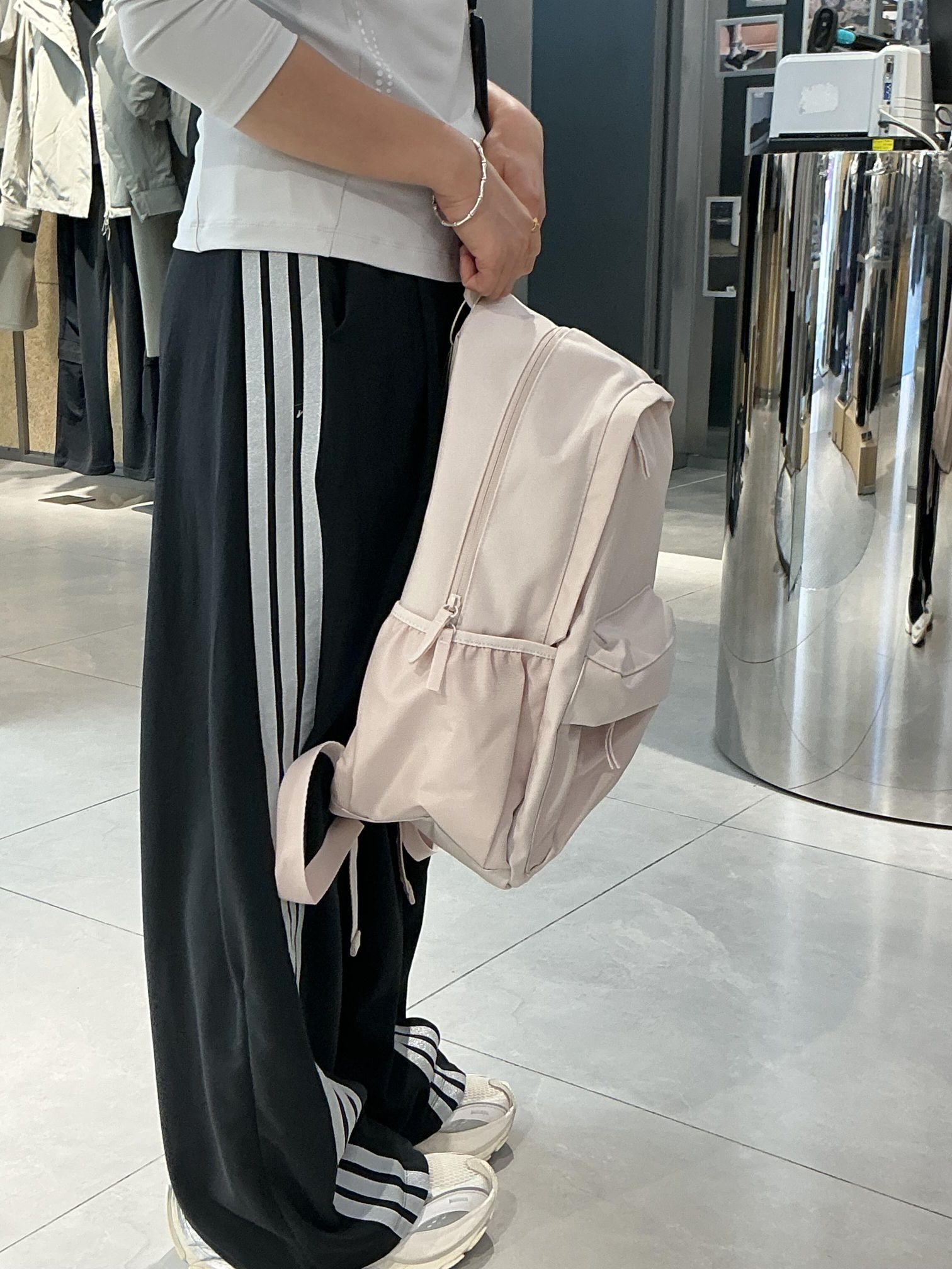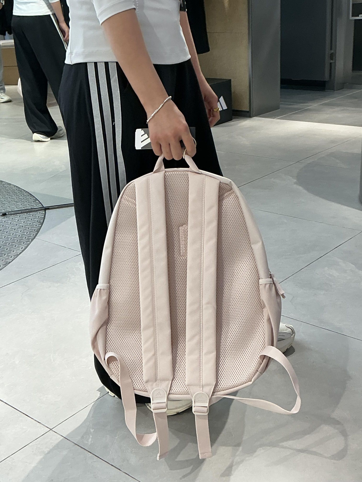 在阿迪达斯的试衣镜前, 浅粉背包温柔了整个秋冬。 运动风也可以很软妹, 日常通勤、上学逛街都适配, 把好心情装进口袋, 出发就现在。✨