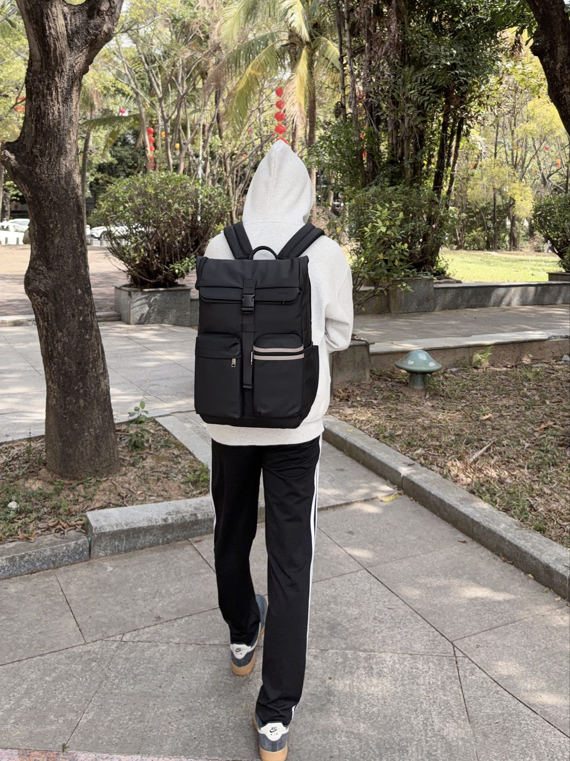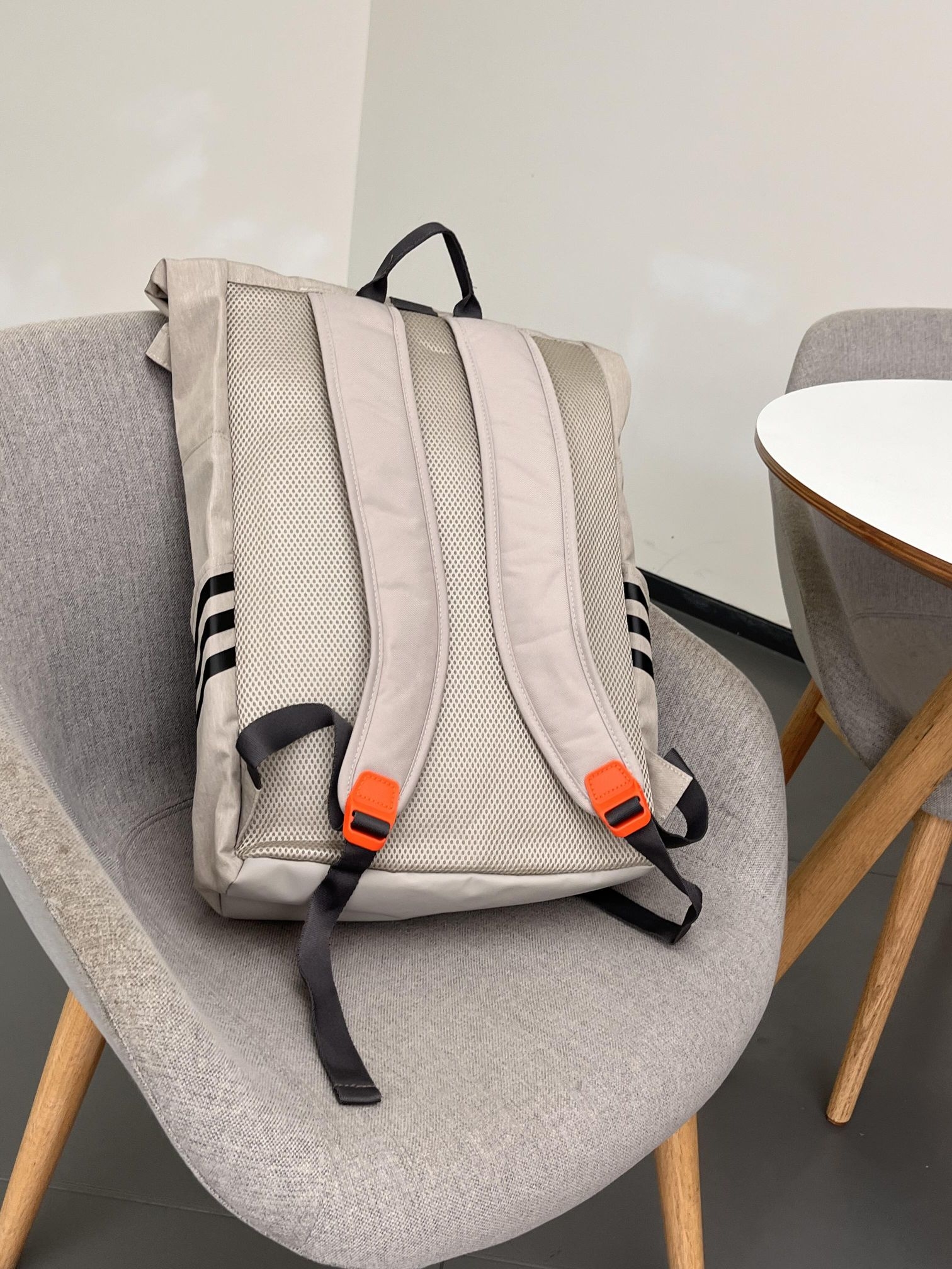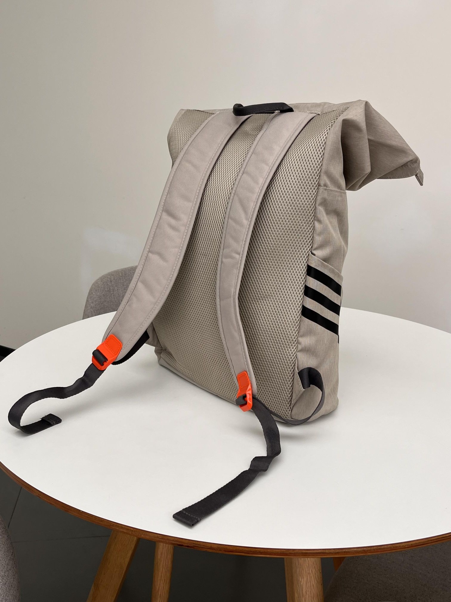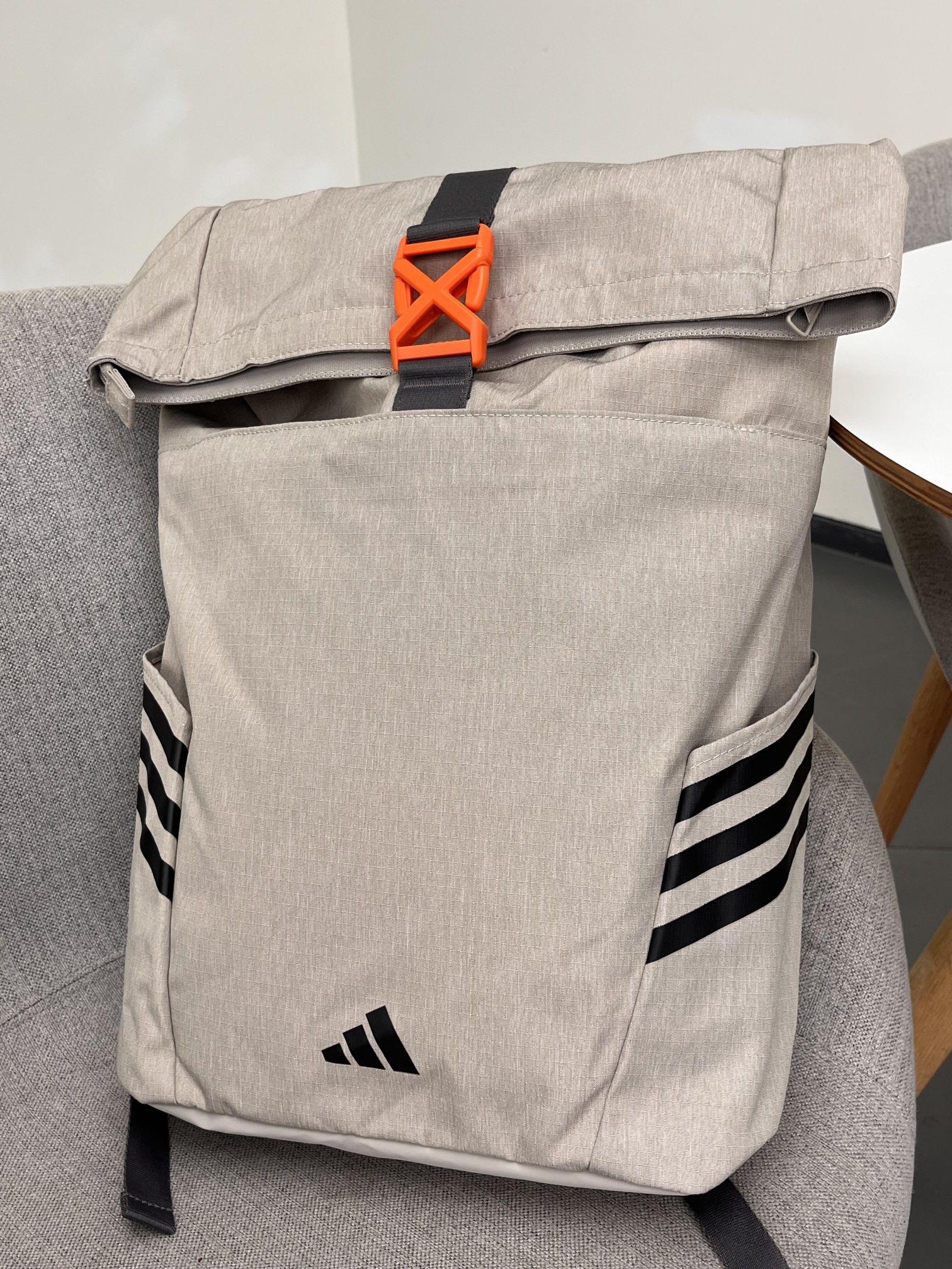 阿迪达斯这款双肩包,浅灰主调简约又百搭。独特的橙色锁扣设计,亮眼又别致,侧边经典三道杠元素,自带运动基因 。日常通勤装电脑、书本,户外出行塞装备,实用又有型,背它轻松拿捏时尚与实用~