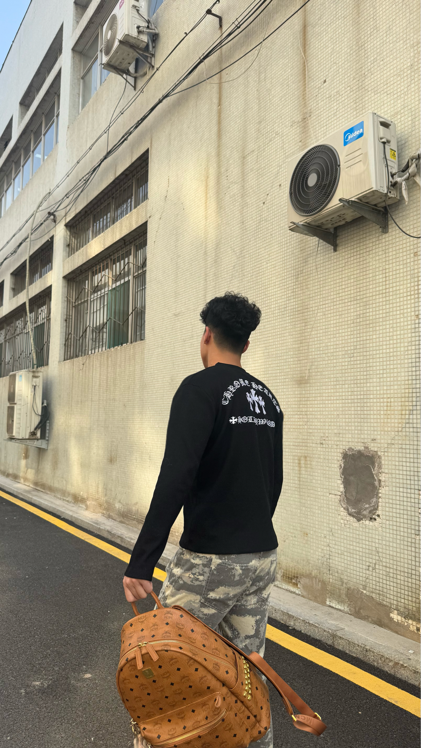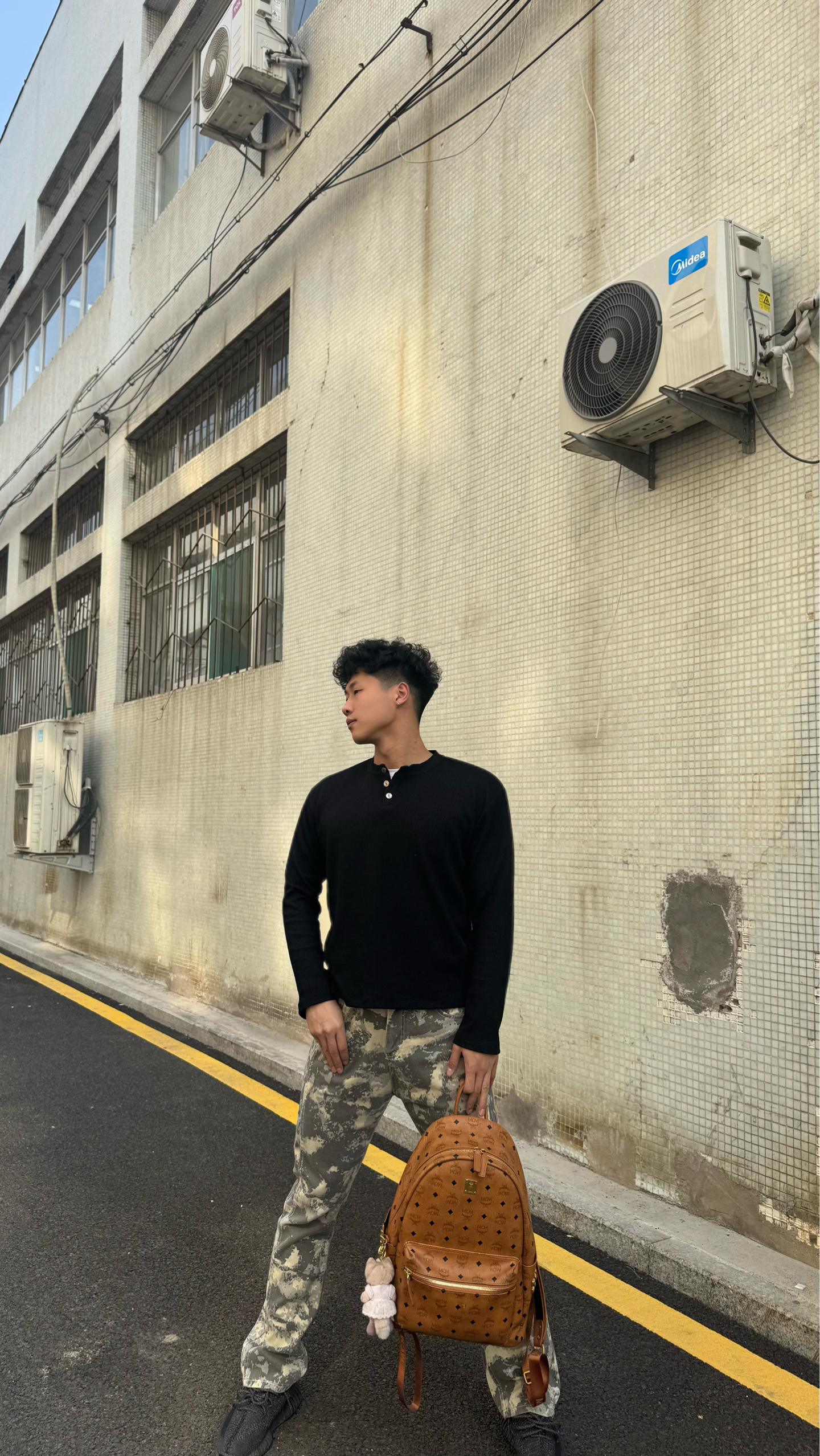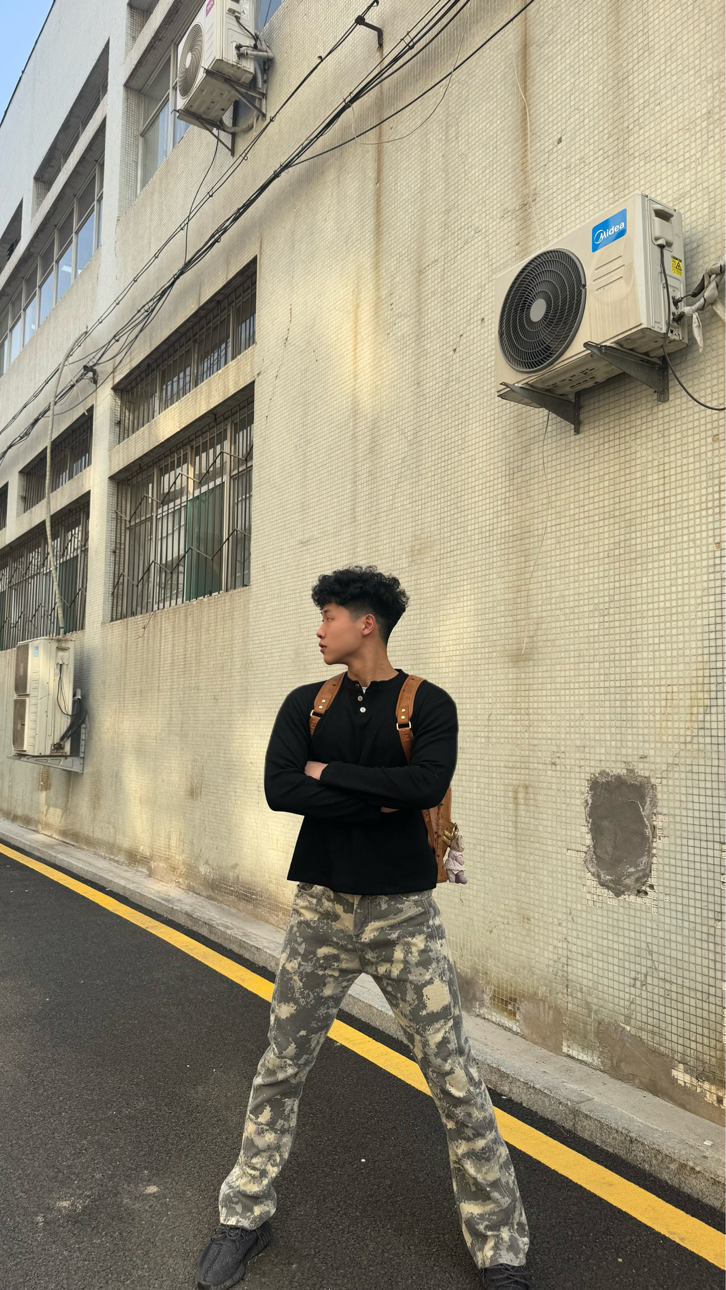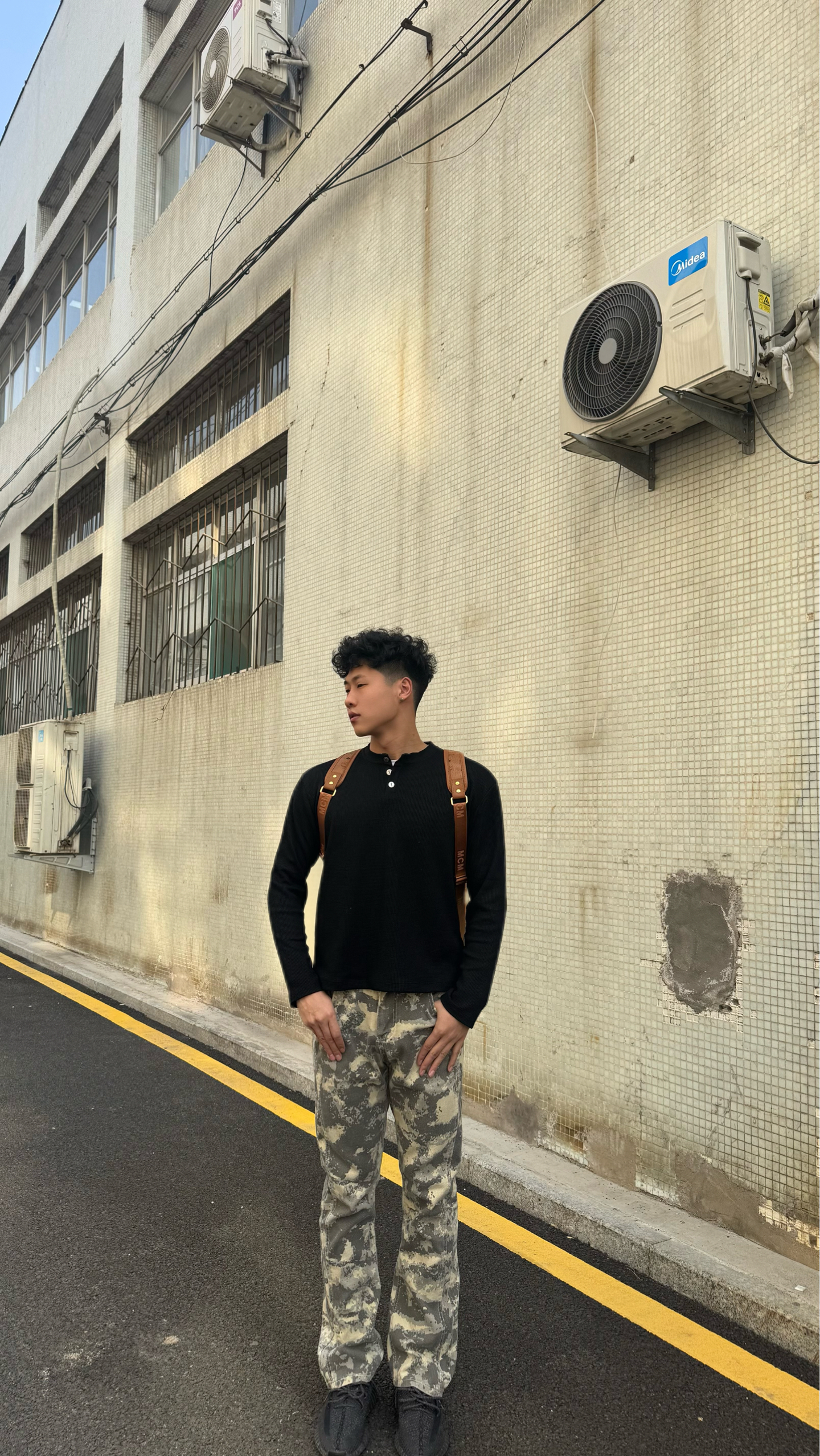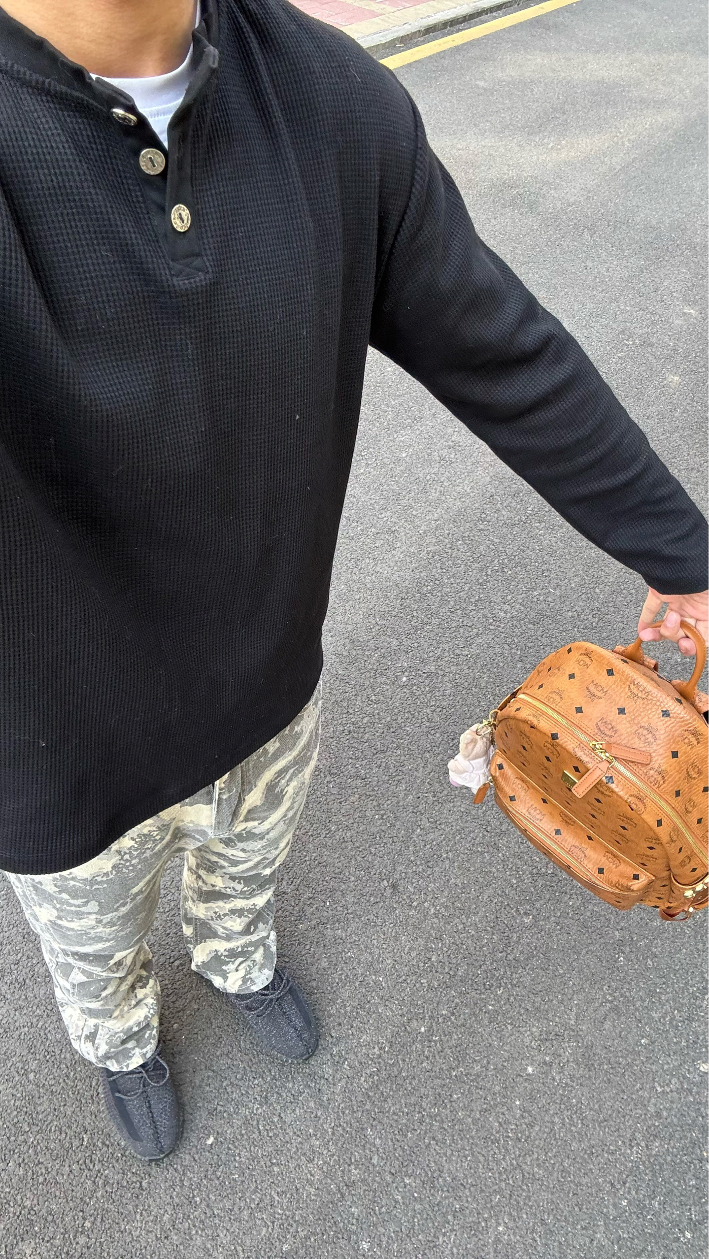 真的要按头安利给所有男生!这件克罗心亨利领Polo我直接焊在身上了😭 华夫格面料软fufu的,贴身穿巨舒服,透气不闷汗,周末逛一天街都没压力 亨利领的金属扣设计太戳我了!比普通Polo有细节多了,后背的十字花logo低调又炸街,懂的都懂 搭了条做旧迷彩微喇裤,腿型直接被修饰得巨好看,再上脚yeezy,美式高街那味儿直接拉满 MCM经典双肩包一背,日常通勤、出街拍照都超上镜 黑+迷彩的配色真的永不出...
