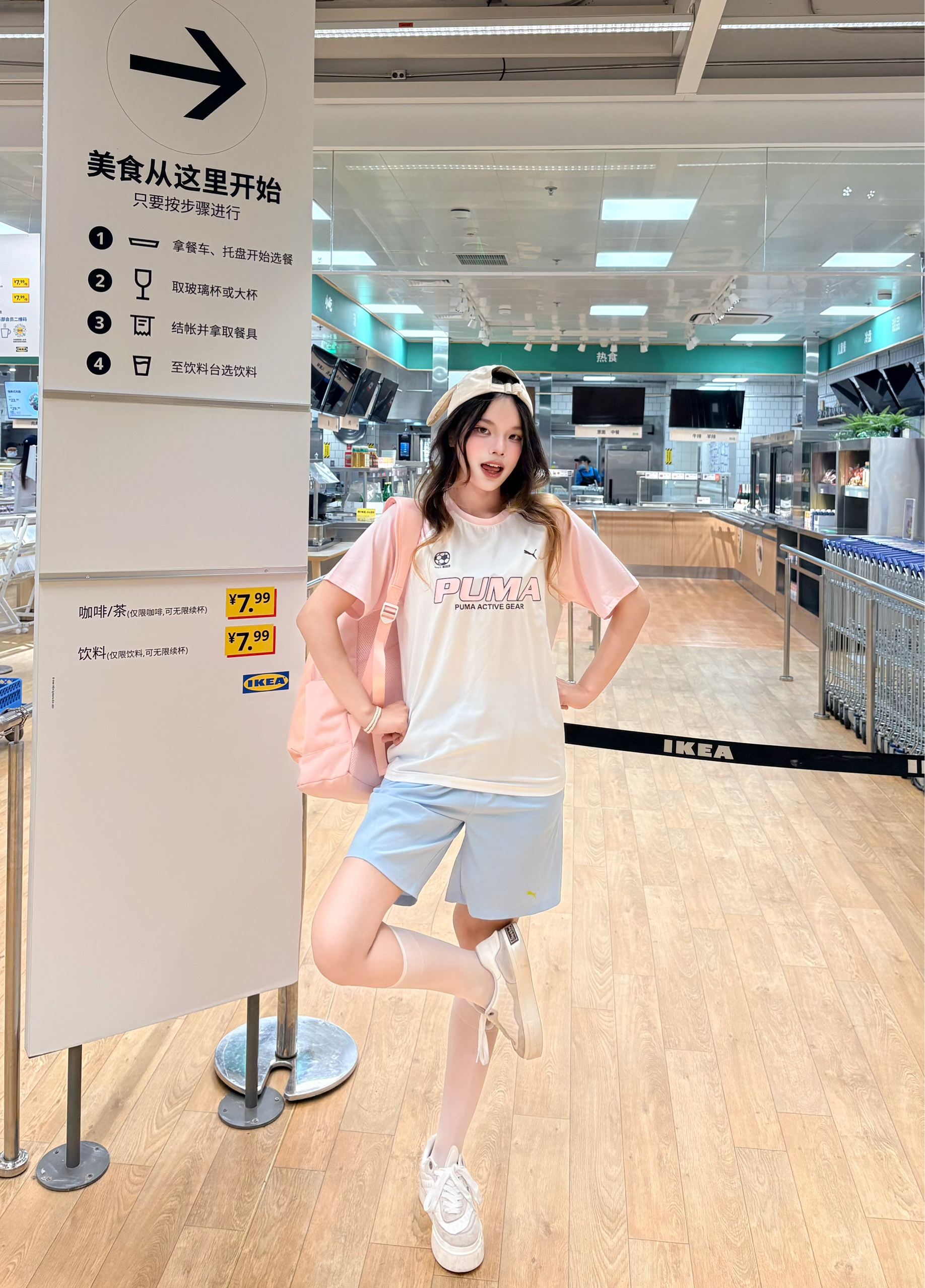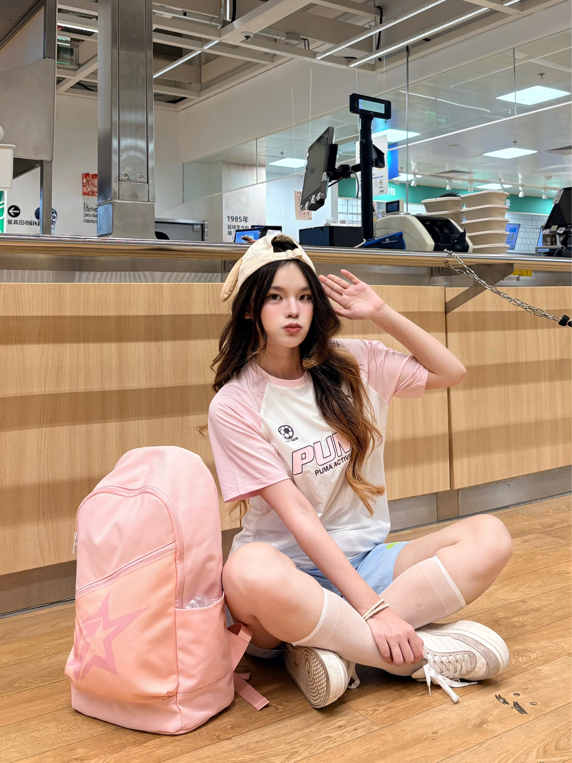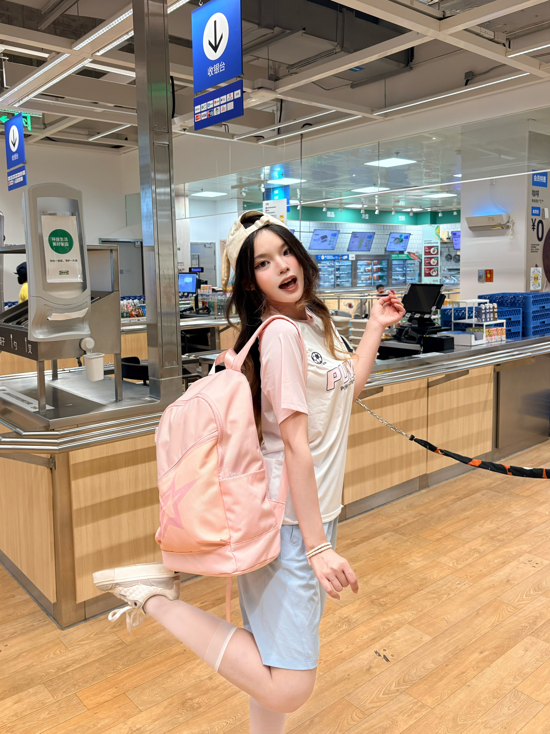 我今天这套是韩系甜酷校园风,核心就是用大面积基础色+小面积跳色✨ 上衣选了做旧感插肩印花T,黑灰拼色自带美式复古感,宽松版型藏肉又随性。✅ 搭配上粉色小书包 真的很有春日感🌸 软乎乎的粉色瞬间点亮穿搭,既减龄又有元气感,容量也够日常上课/出游背,实用性拉满。