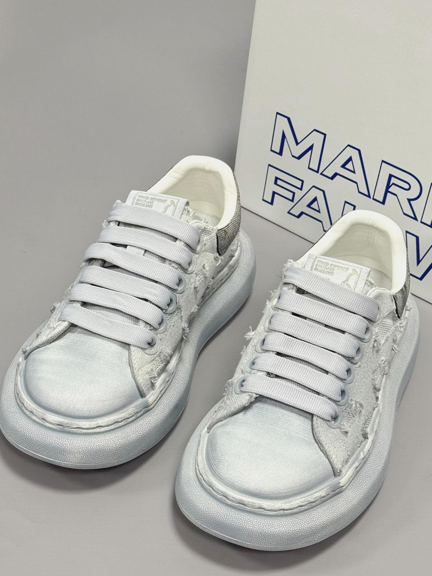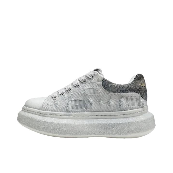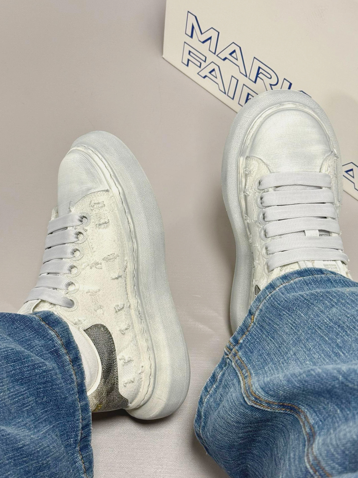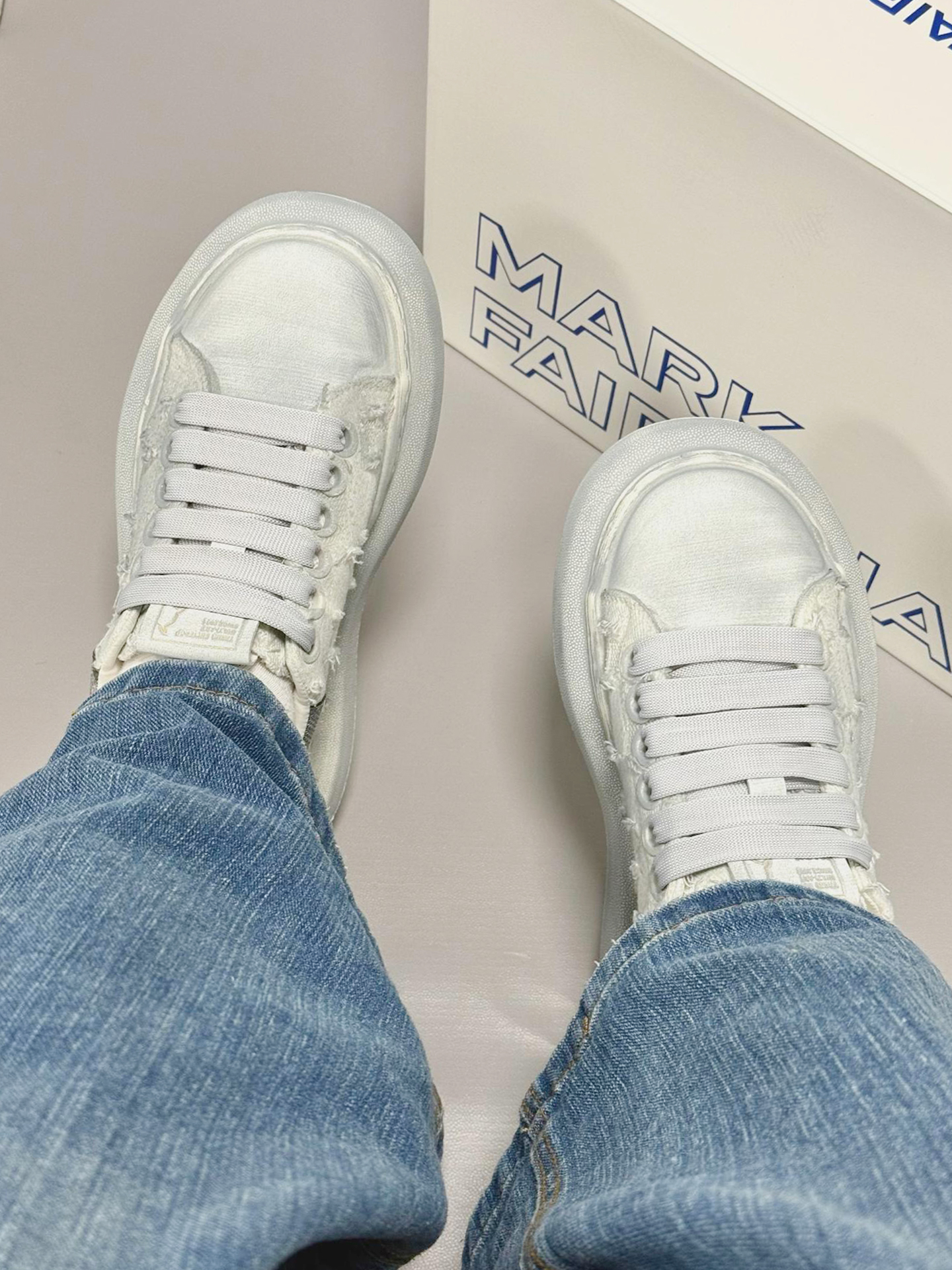 这双马克华菲浅灰做旧厚底鞋质感慵懒,搭直筒牛仔裤打造随性休闲感。 通勤配垂感西裤干练利落✨,约会搭针织半裙温柔雅致☁️,逛街配束脚卫裤随性洒脱,适配多种日常场景。 偏爱的清新日常款搭配,搭配同色系发带,整体氛围更协调柔和。