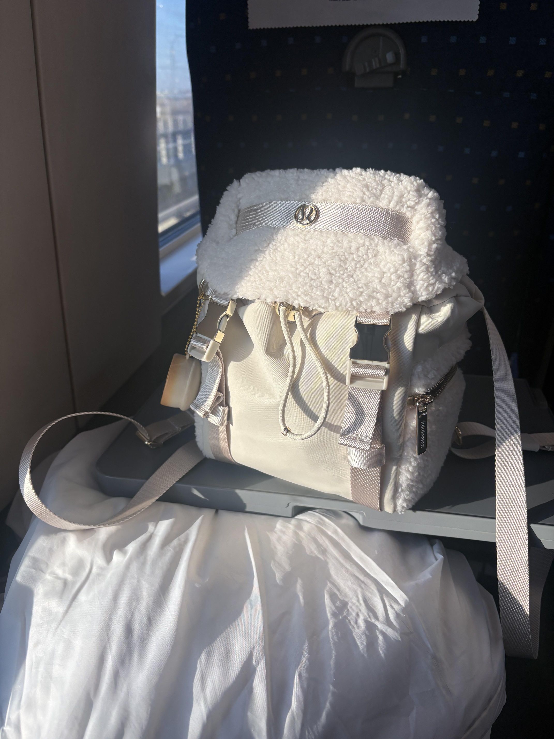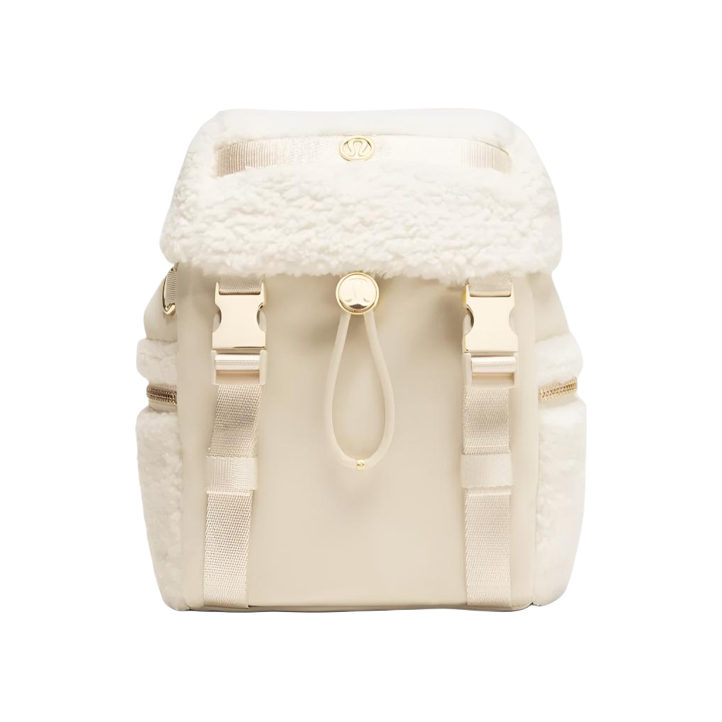 🎒Lululemon这款毛绒双肩包,天然象牙白配色+金色五金,简约又超有质感✨。羊羔毛绒面,触感软糯,秋冬背超有氛围感!3L容量,日常通勤、轻便出行都OK,肩带可调节,背起来很舒服~毛绒设计不仅保暖,还提升辨识度,是秋冬穿搭的亮眼配饰,实用又时髦!