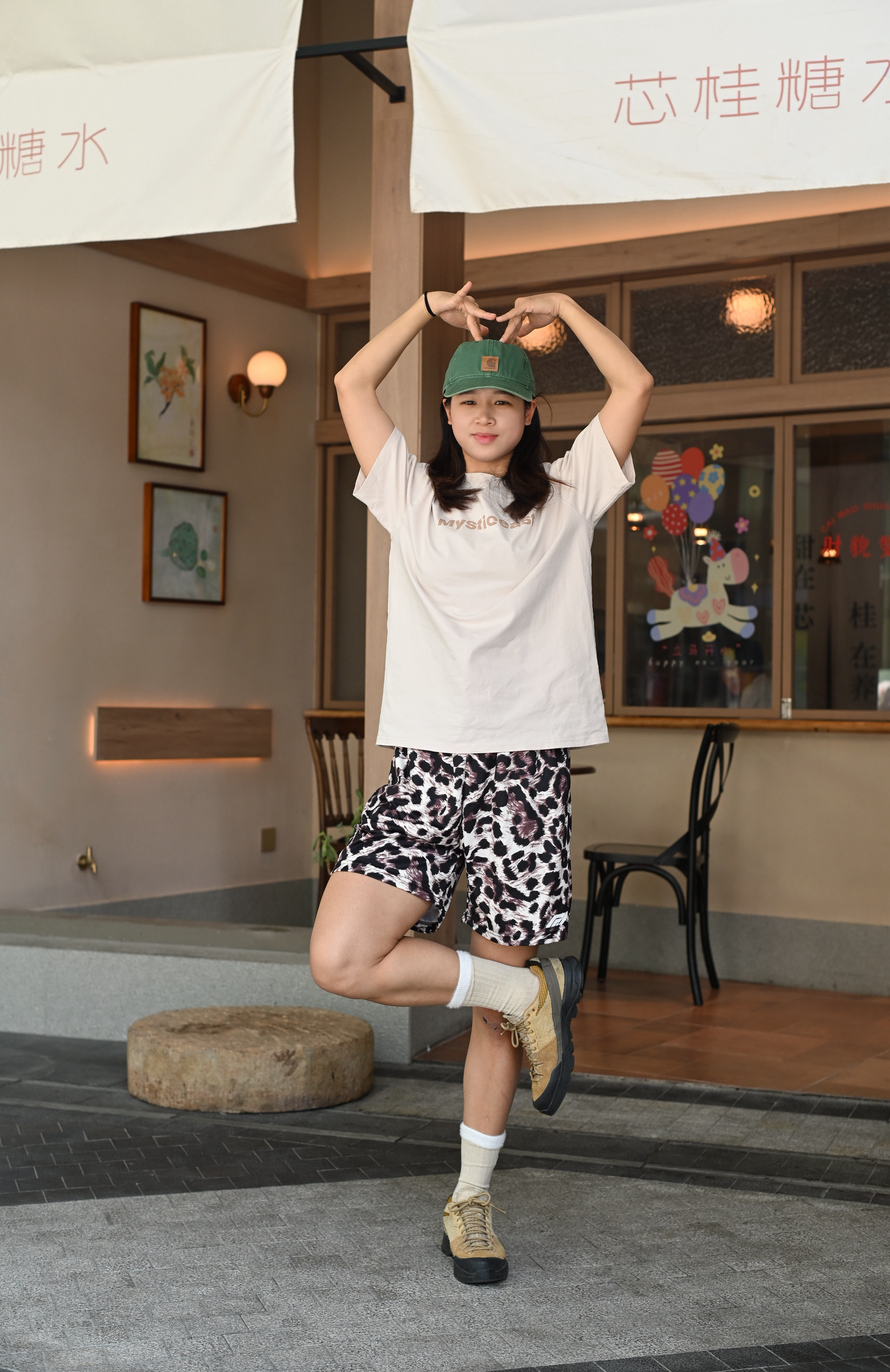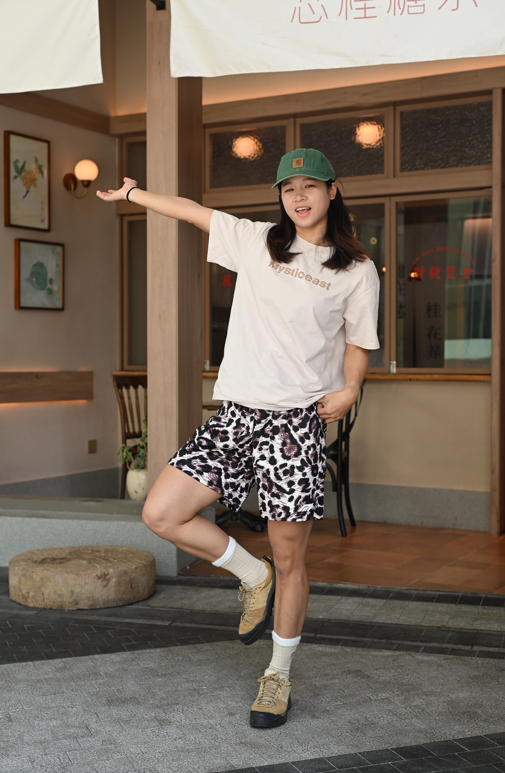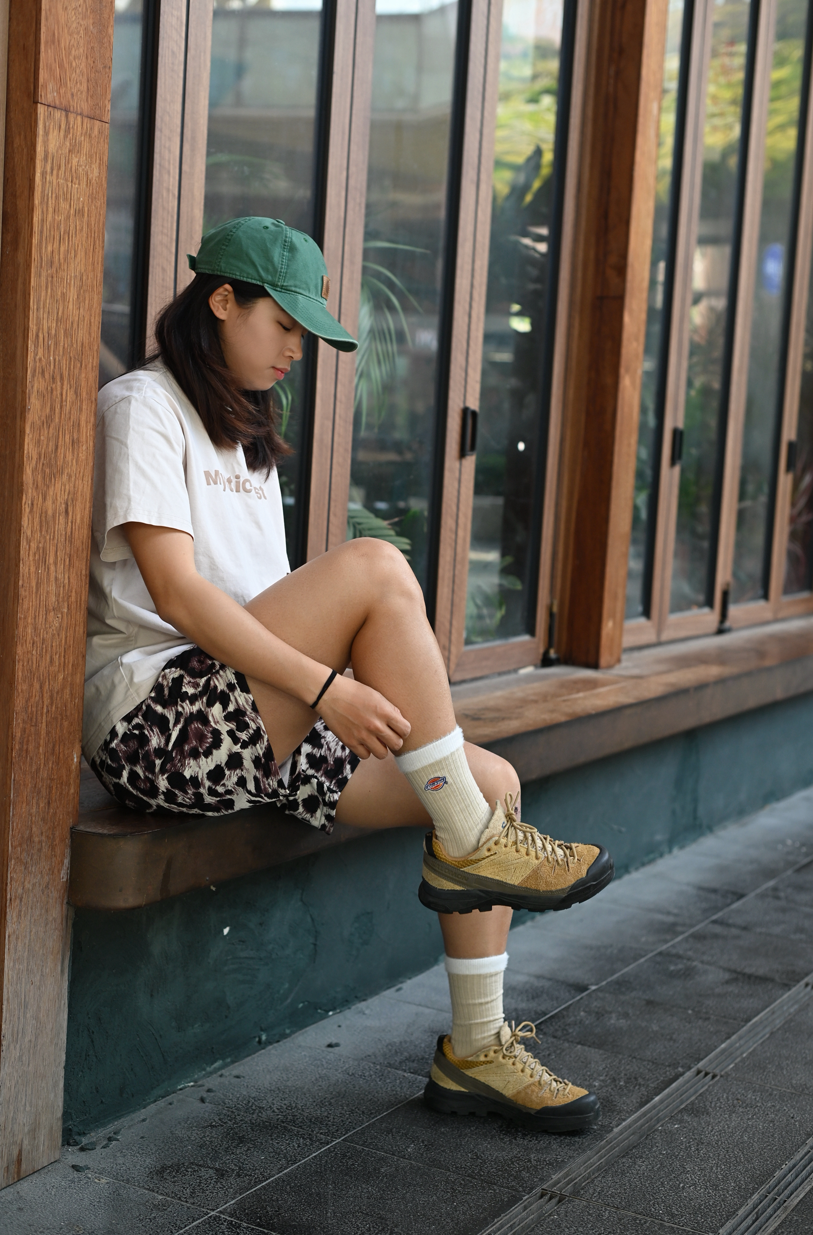 圆:167CM|58KG|👔:M 👖:m|👟:38码 今天不想跑步 所以出门喝咖啡 穿喜欢的穿搭出门耍 豹纹裤简单T 绵羊毛中筒袜符合一身棕调 近期上脚率最高的鞋 今日快乐达成~