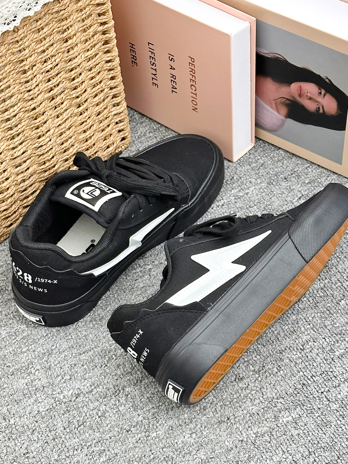 这双 T628 黑白拼色帆布鞋版型简约,搭直筒牛仔裤打造复古休闲感。 通勤配垂感西裤干练利落🖤,约会搭碎花半裙温柔灵动🤍,逛街配束脚卫裤随性洒脱,适配多种日常场景。 偏爱的酷感日常款搭配,搭配同色系发带,整体氛围更协调柔和。