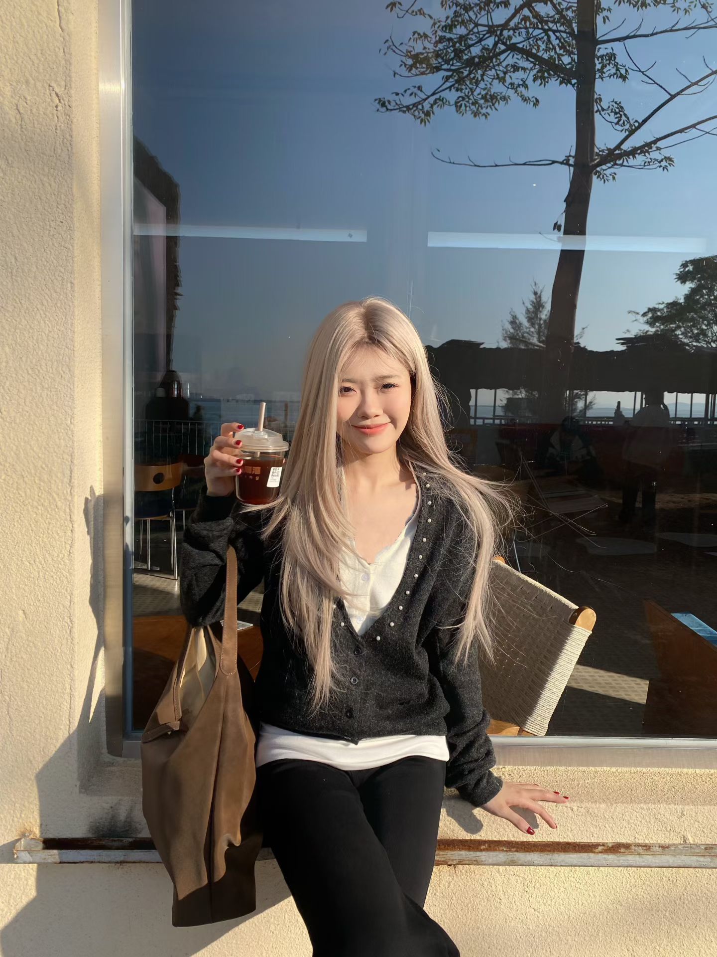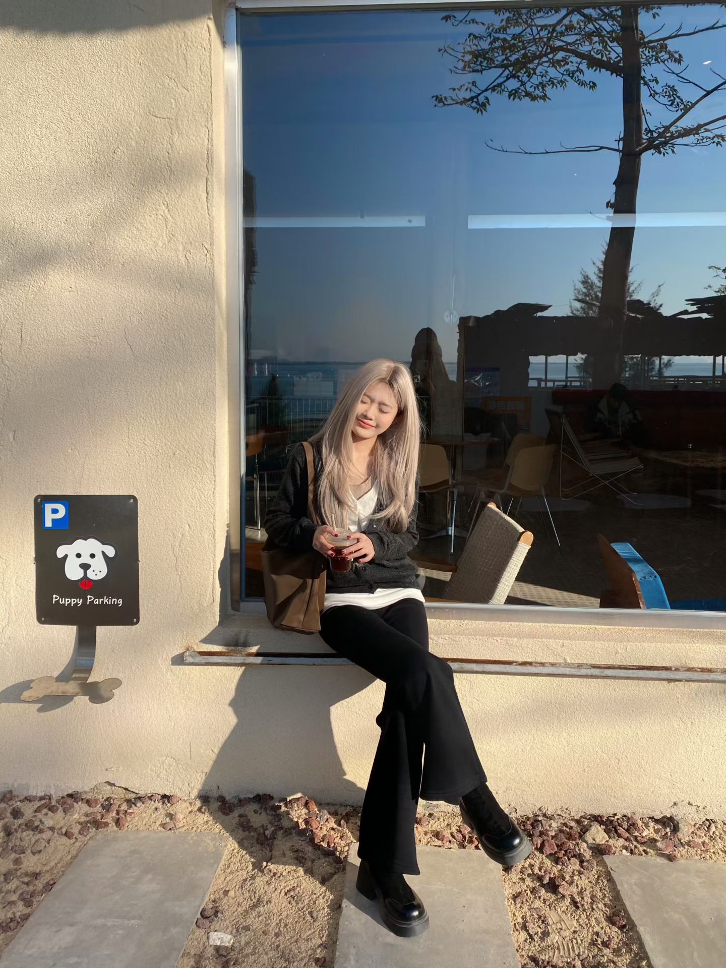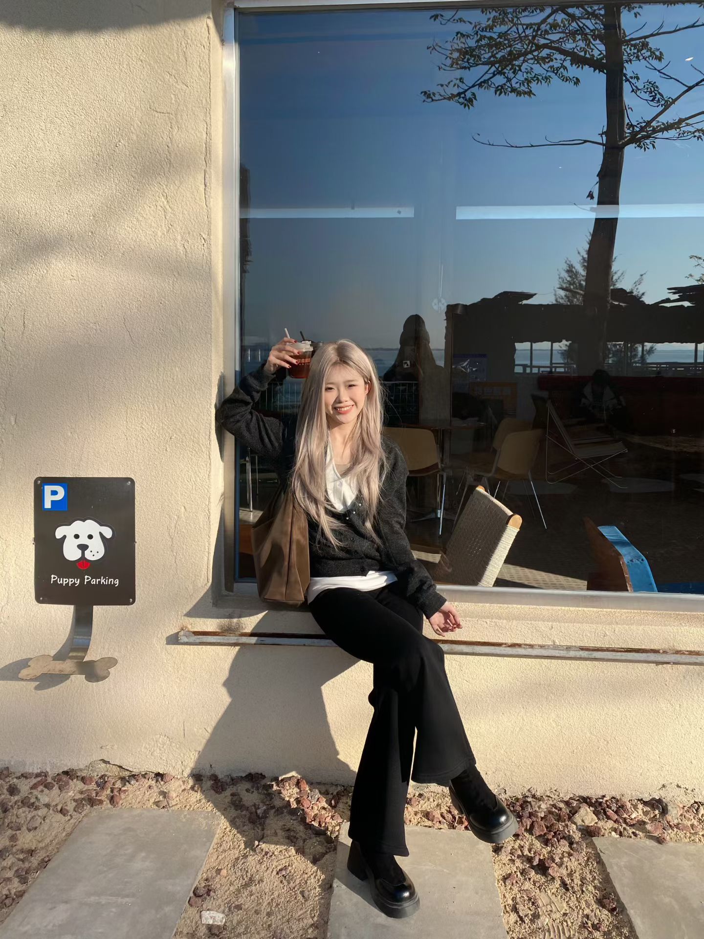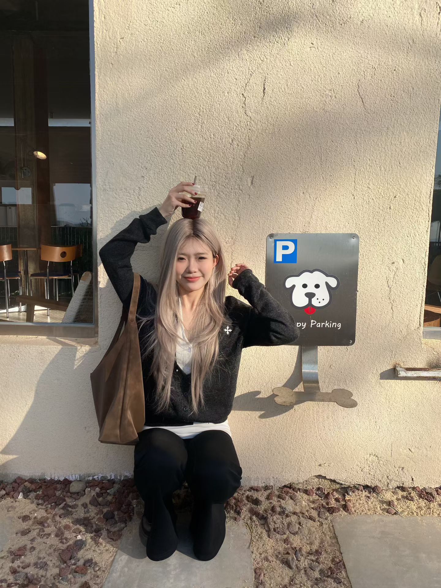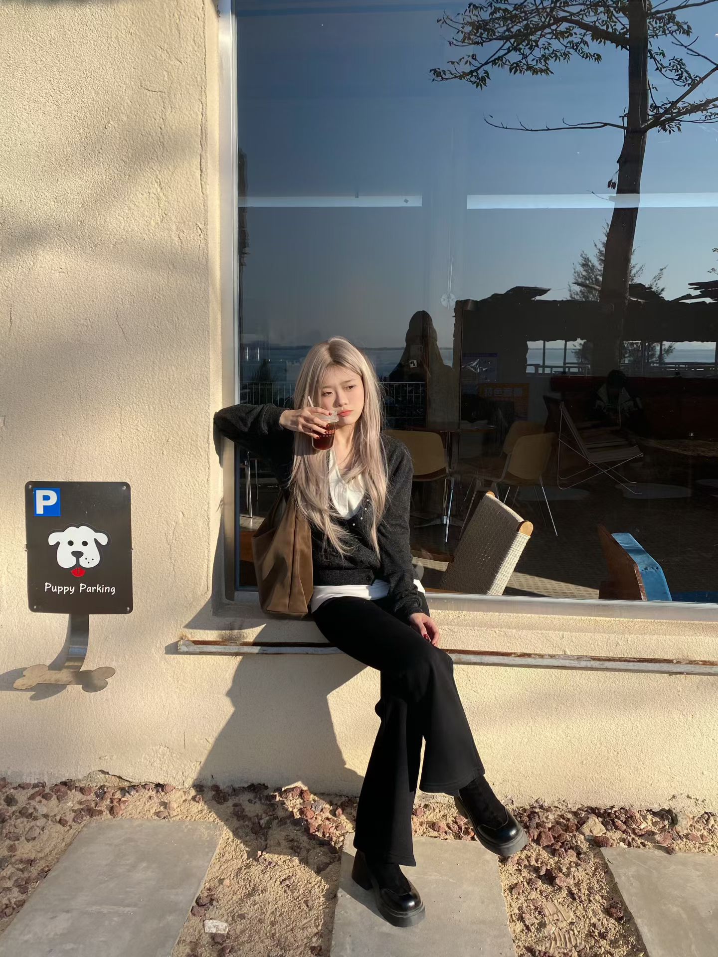 浅发色配黑灰系穿搭 简单又有松弛感 日常出门超舒服~
