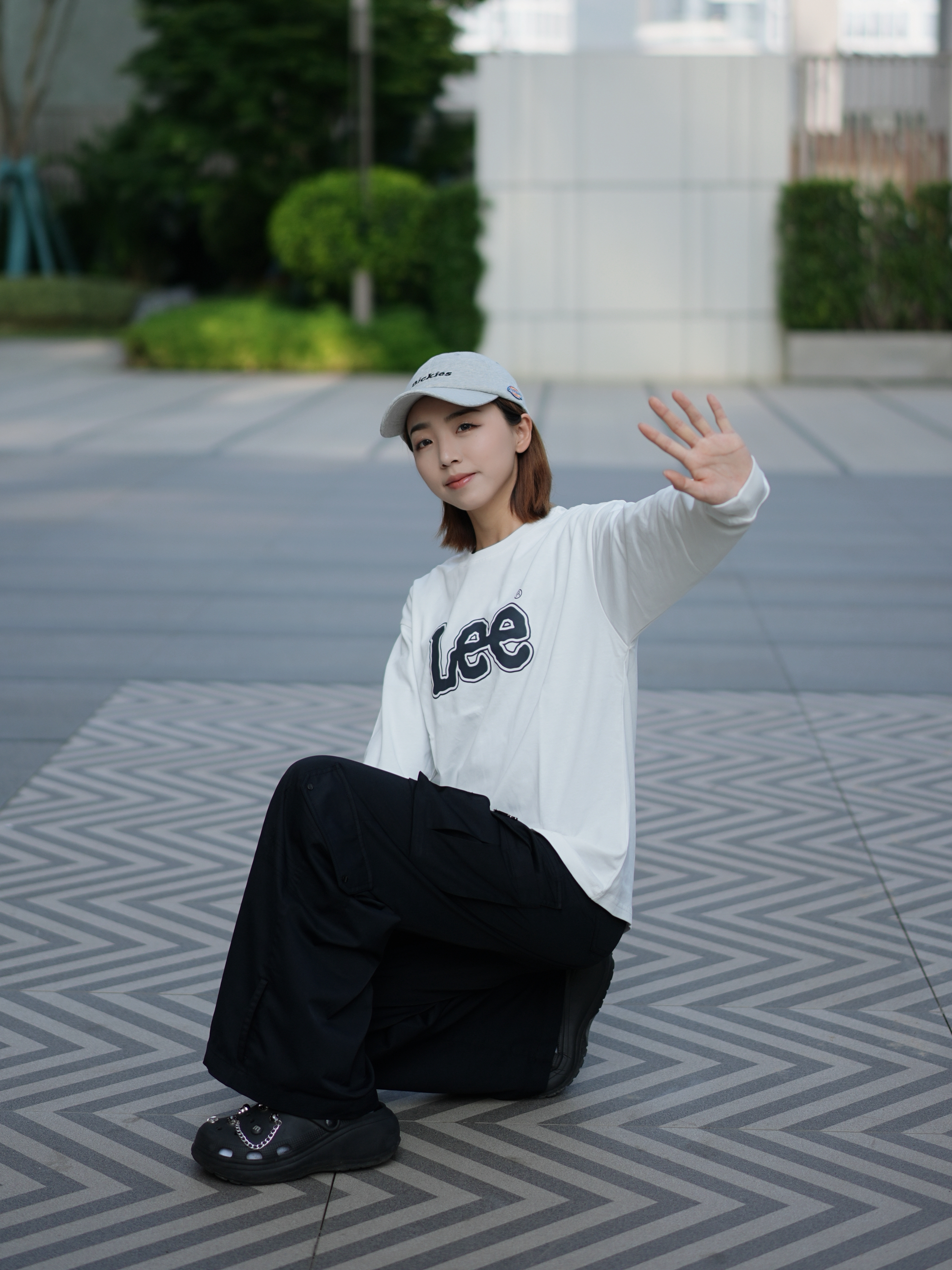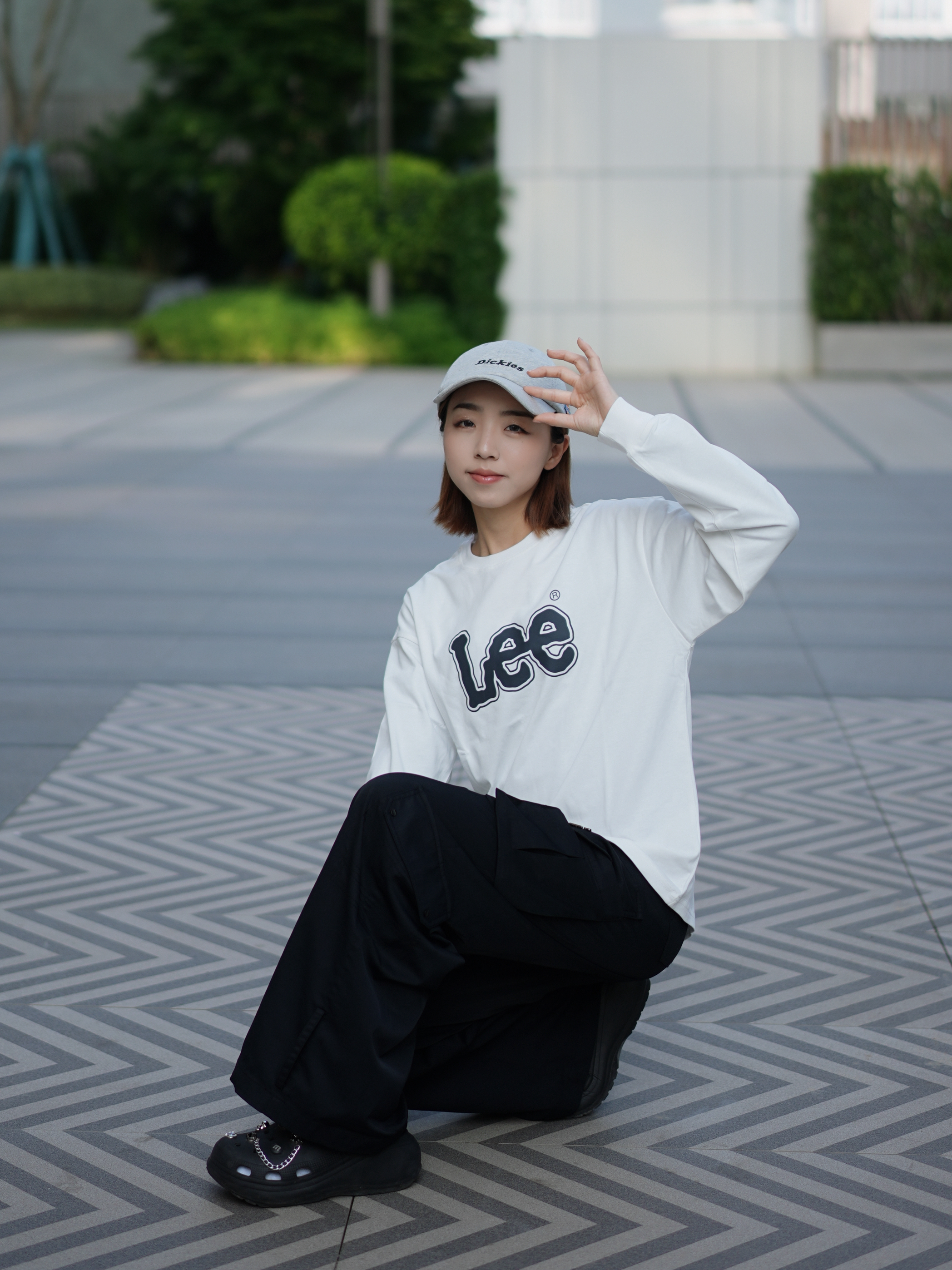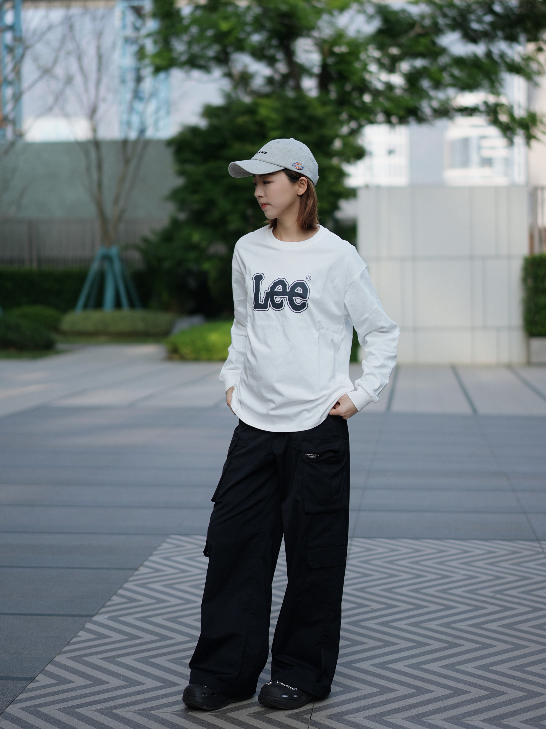 Lee白T配黑工装裤,是春日不费力的松弛感~ 经典logo款打底单穿都百搭,宽松版型藏肉又随性,搭配同色系工装裤和鸭舌帽,街头少年感直接拉满,踩上洞洞鞋出门,舒服又吸睛,通勤逛gai都适配!