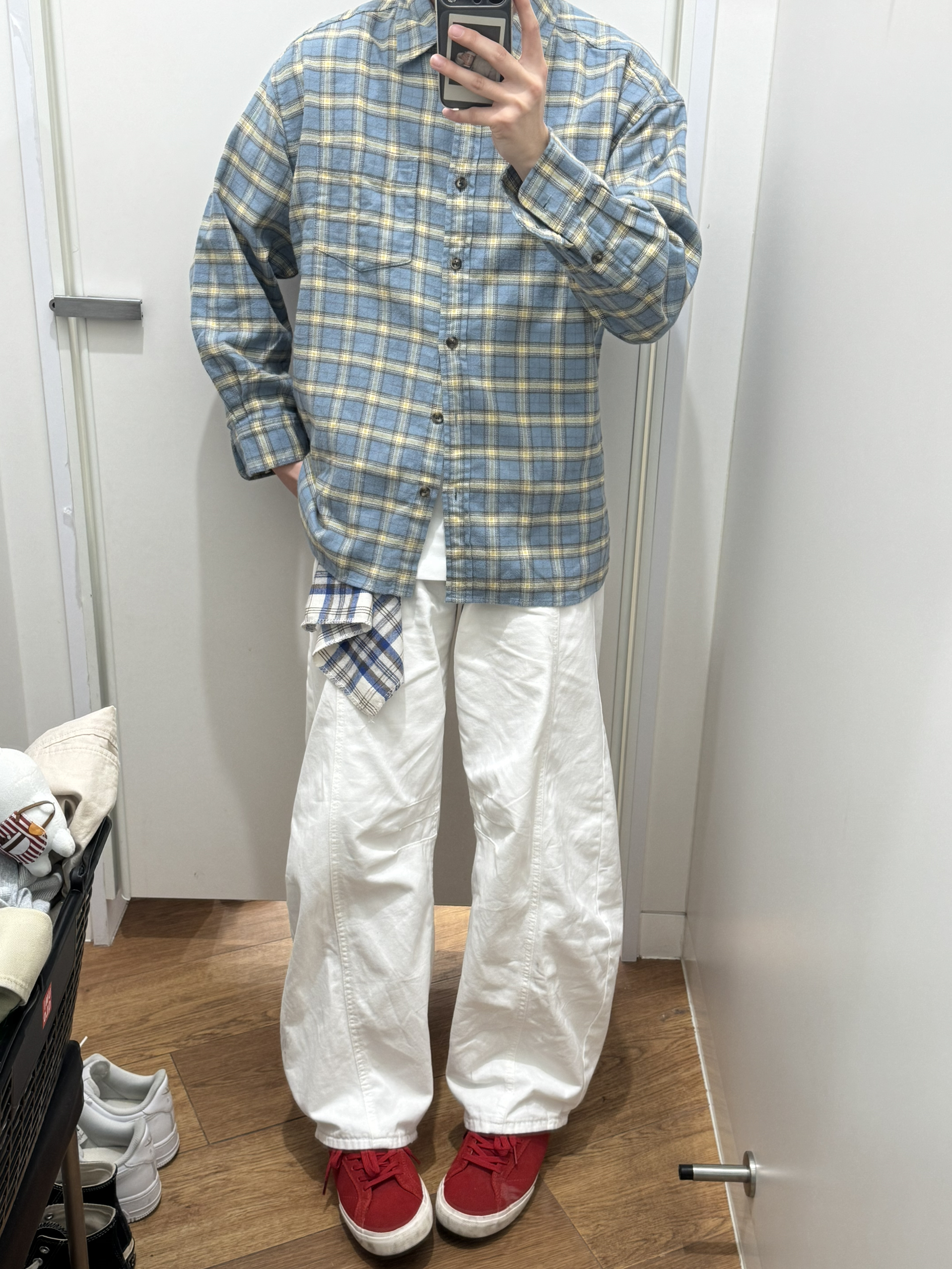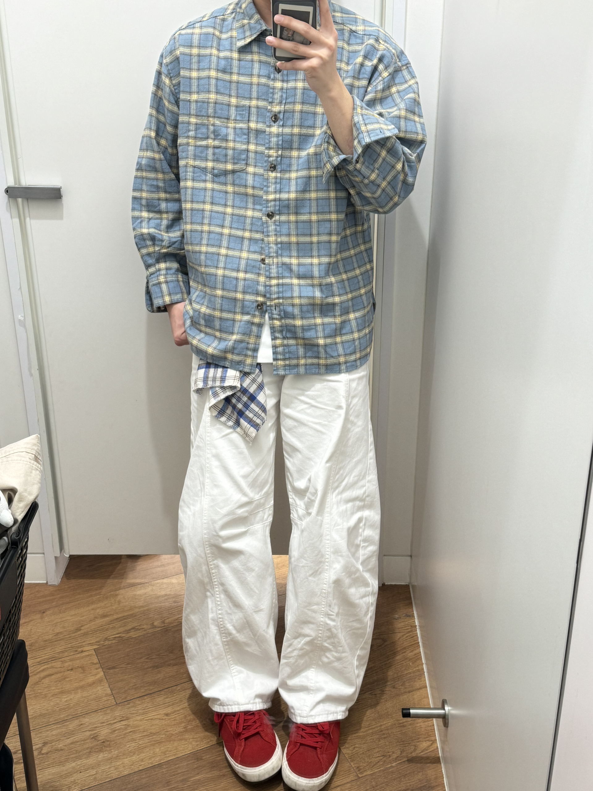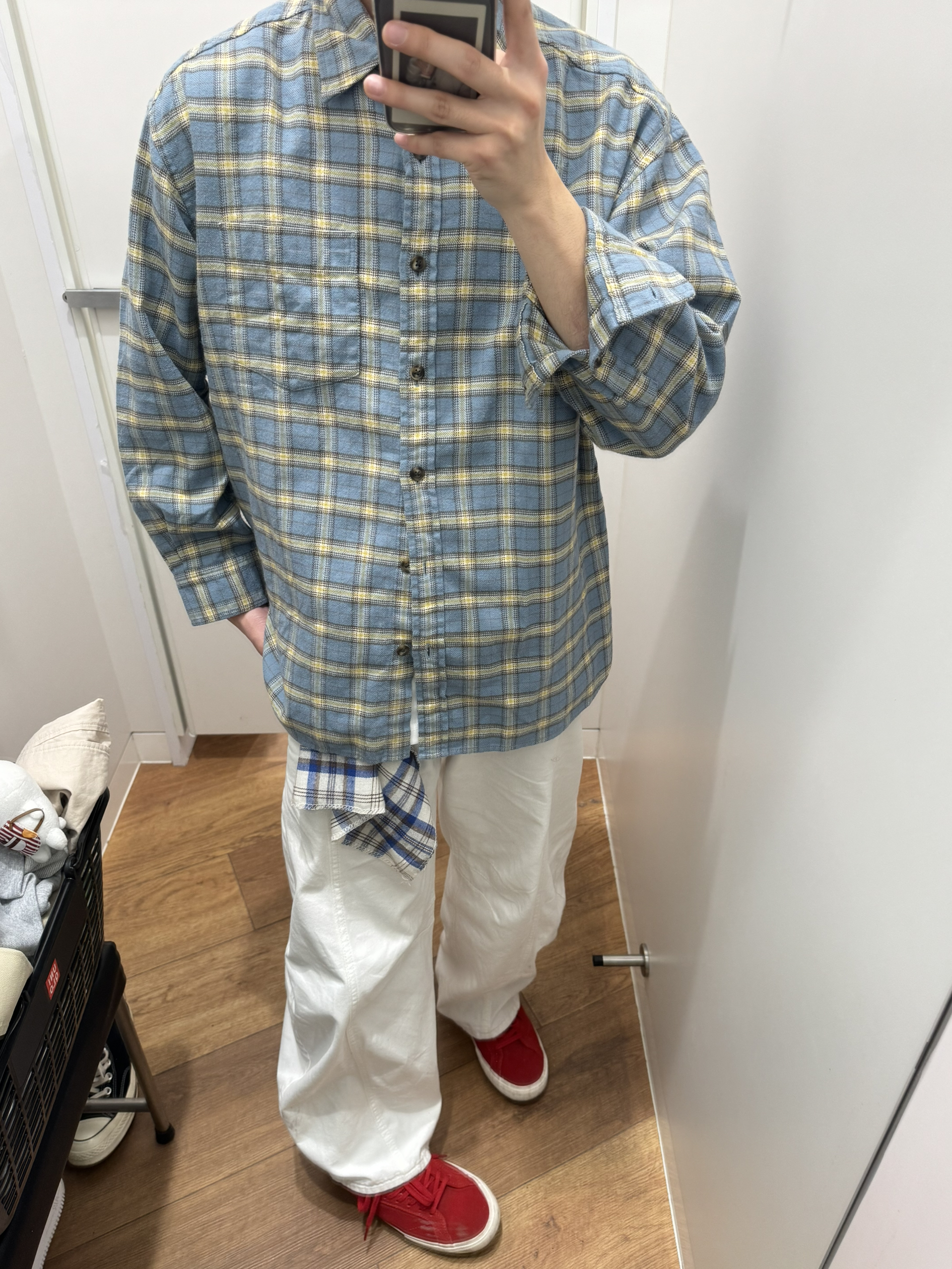 家人们谁懂啊!这件蓝黄格纹衬衫真的挖到宝了🥹 软乎乎的磨毛面料,上身巨舒服,蓝黄配色复古又显白,黄皮男生也能轻松驾驭!版型宽松不紧绷,巨藏肉,内搭白T、搭白裤子、红鞋子,日常出门、上学通勤都超合适,随便穿都有少年感,真的爱了爱了✨