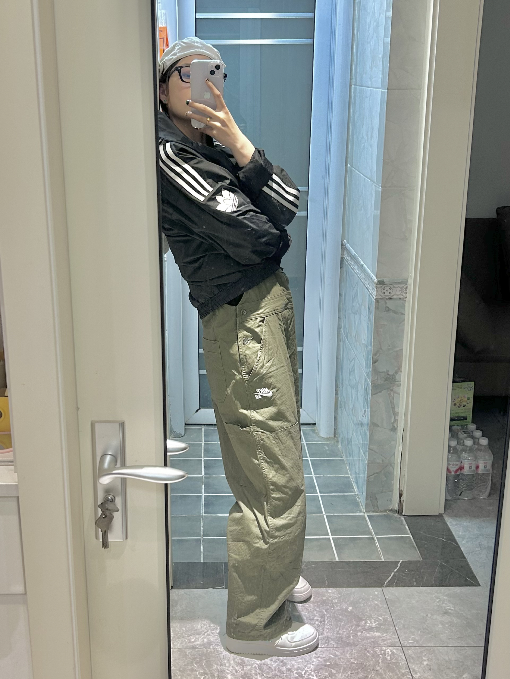 1. 完整背带模式 背带款是最经典的工装穿法,自带复古少年感,搭配黑T和运动外套,直接穿出美式街头的松弛感。背带的调节扣很贴心,对各种身高都很友好,单穿也不会显臃肿,小个子也能穿出利落感。 2. 无背带工装裤模式 把背带拆掉之后,秒变一条高腰工装阔腿裤!腰头的设计也很有细节,自带的调节袢能收住腰,不会掉档,搭配衬衫、卫衣都超合适,通勤和日常穿都不违和,适配度直接拉满。