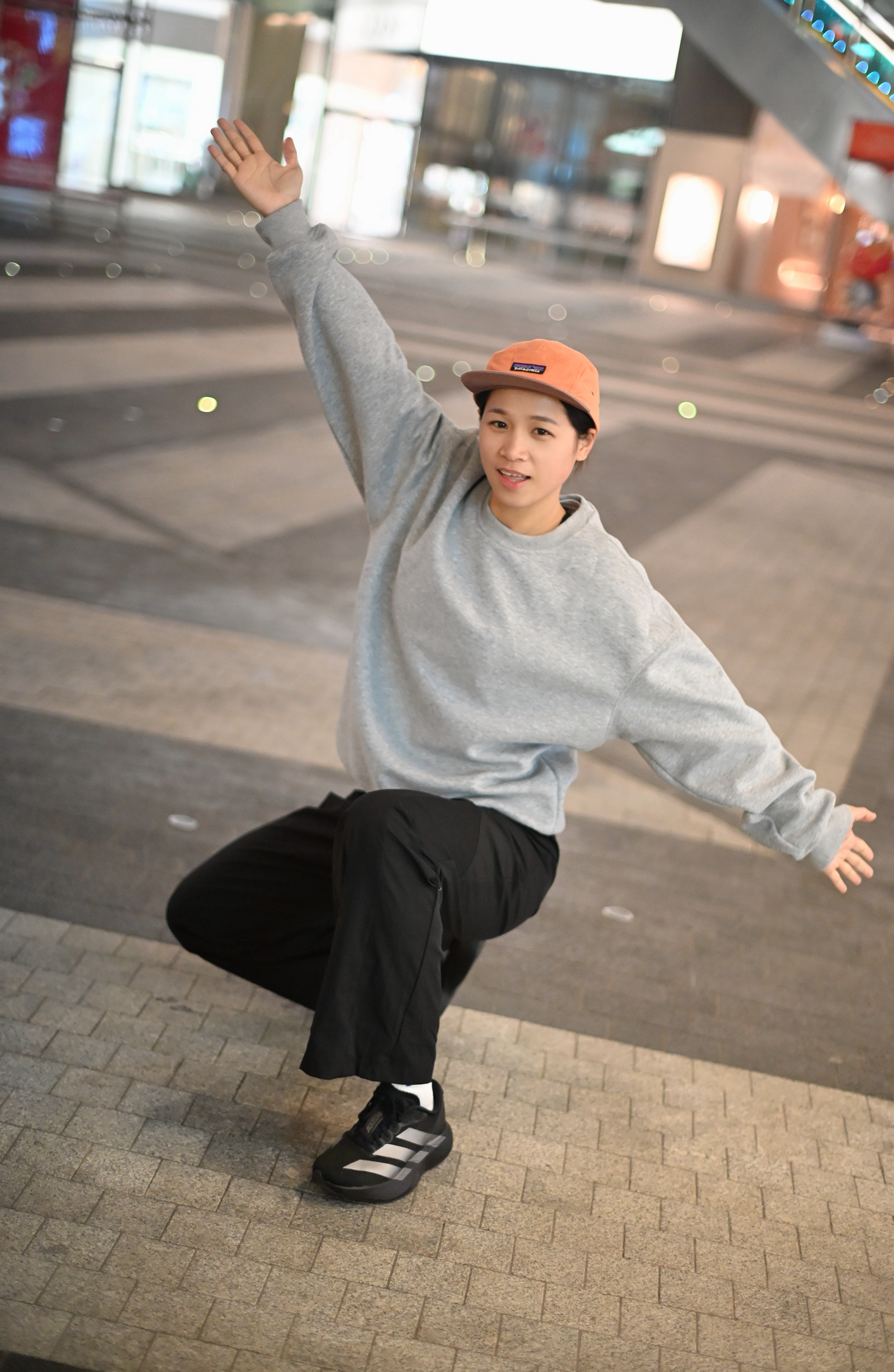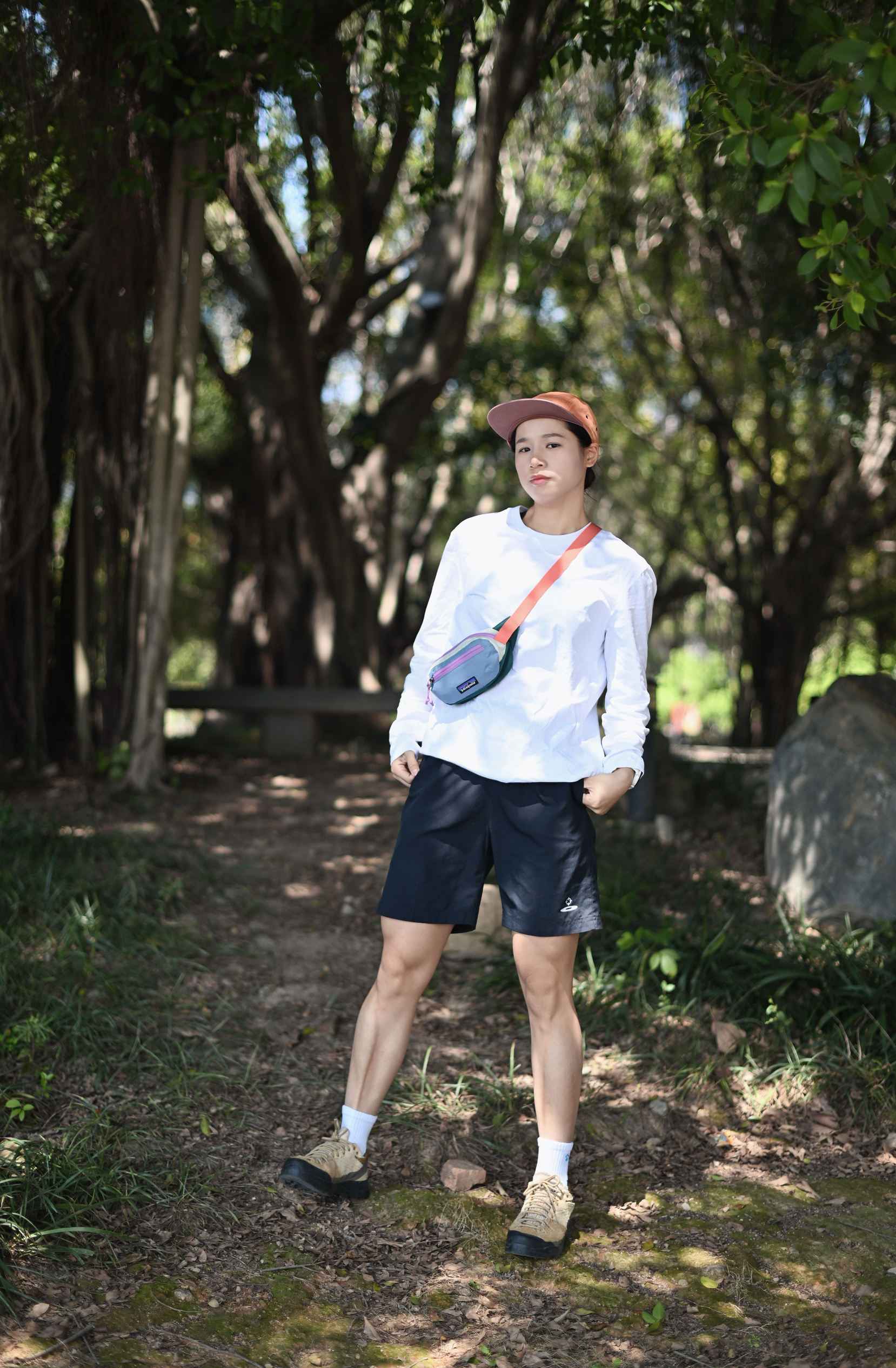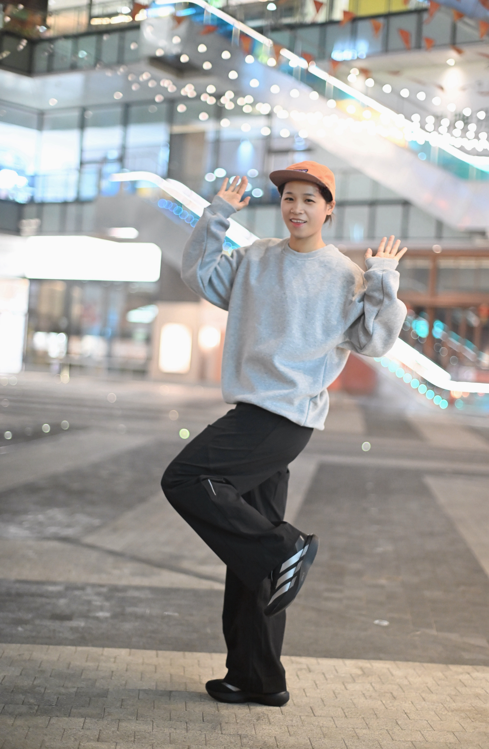 只是想出门散步消消食 那就以舒适为主 灰色简约长袖T 黑色运动直筒休闲裤 一双可跑可走的运动鞋 一顶帽子就出门~