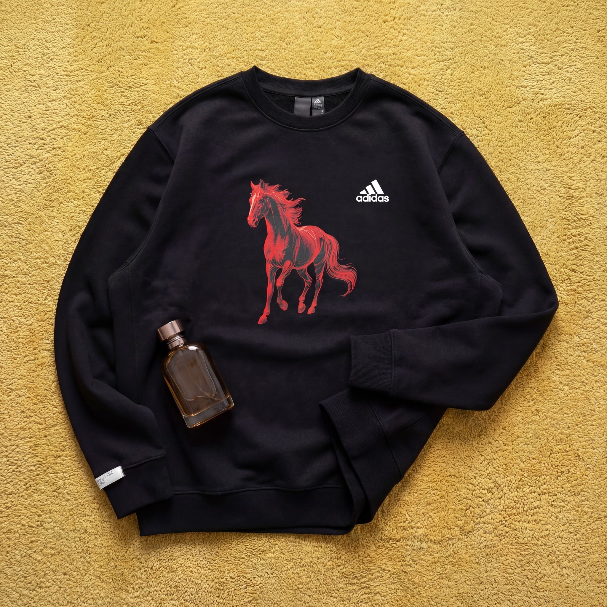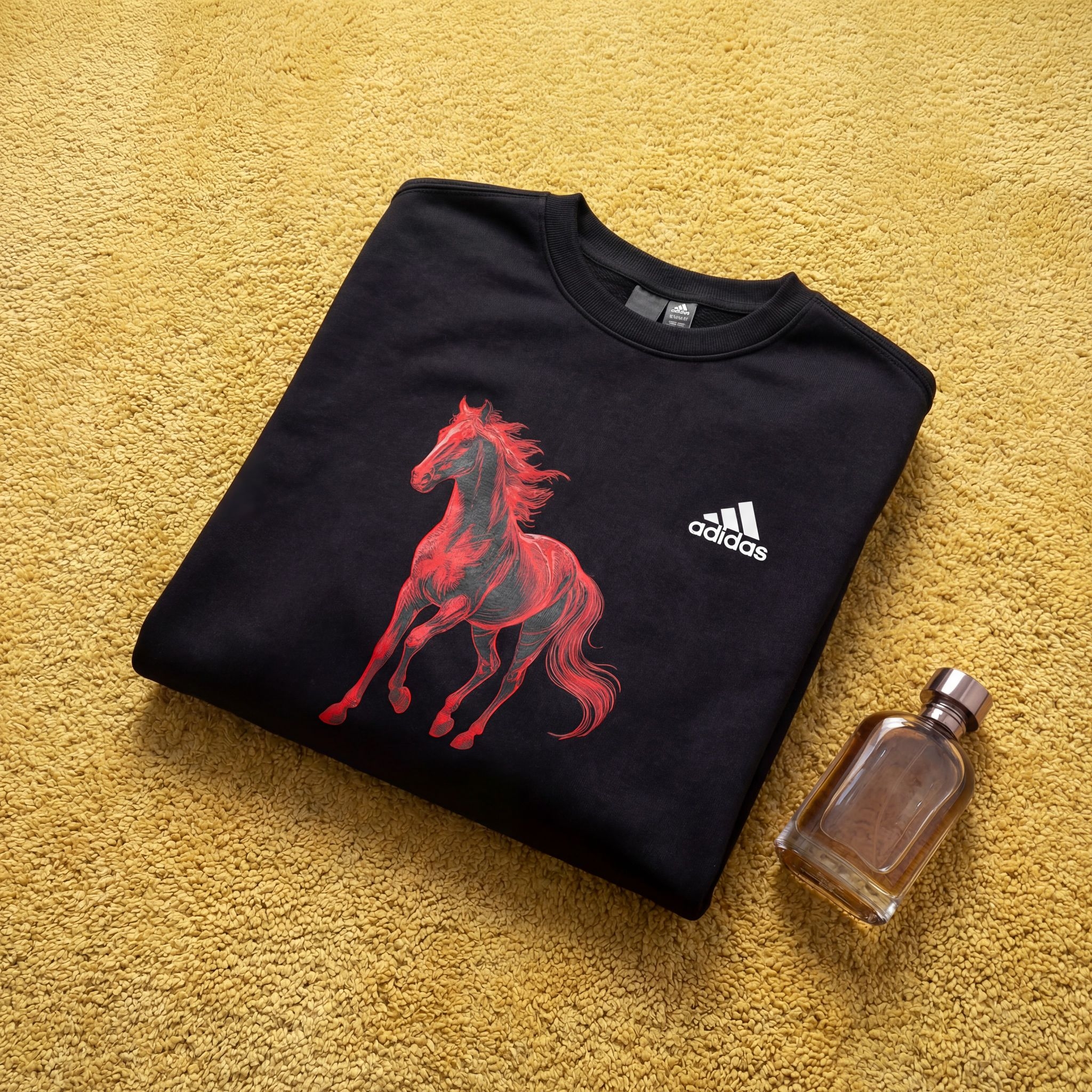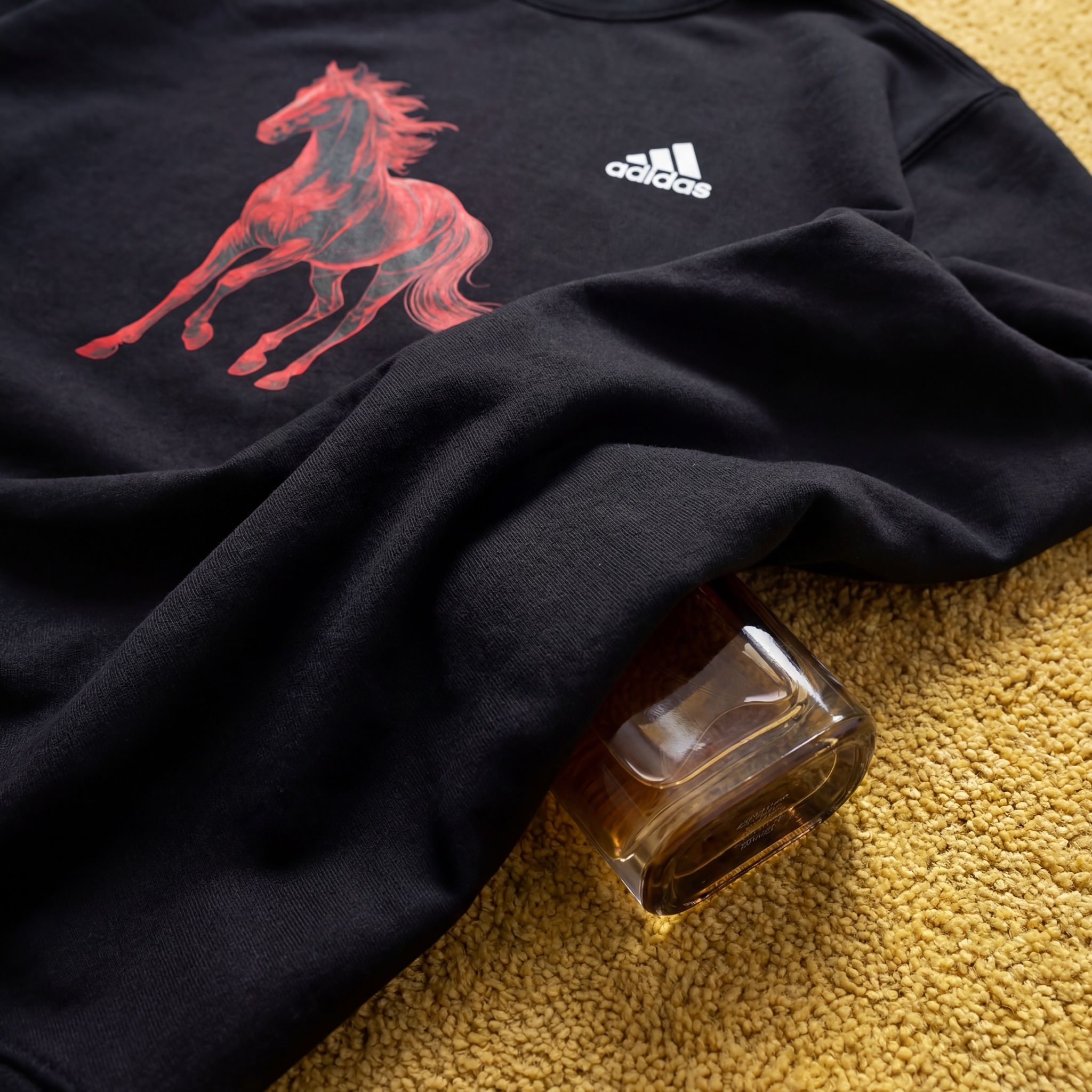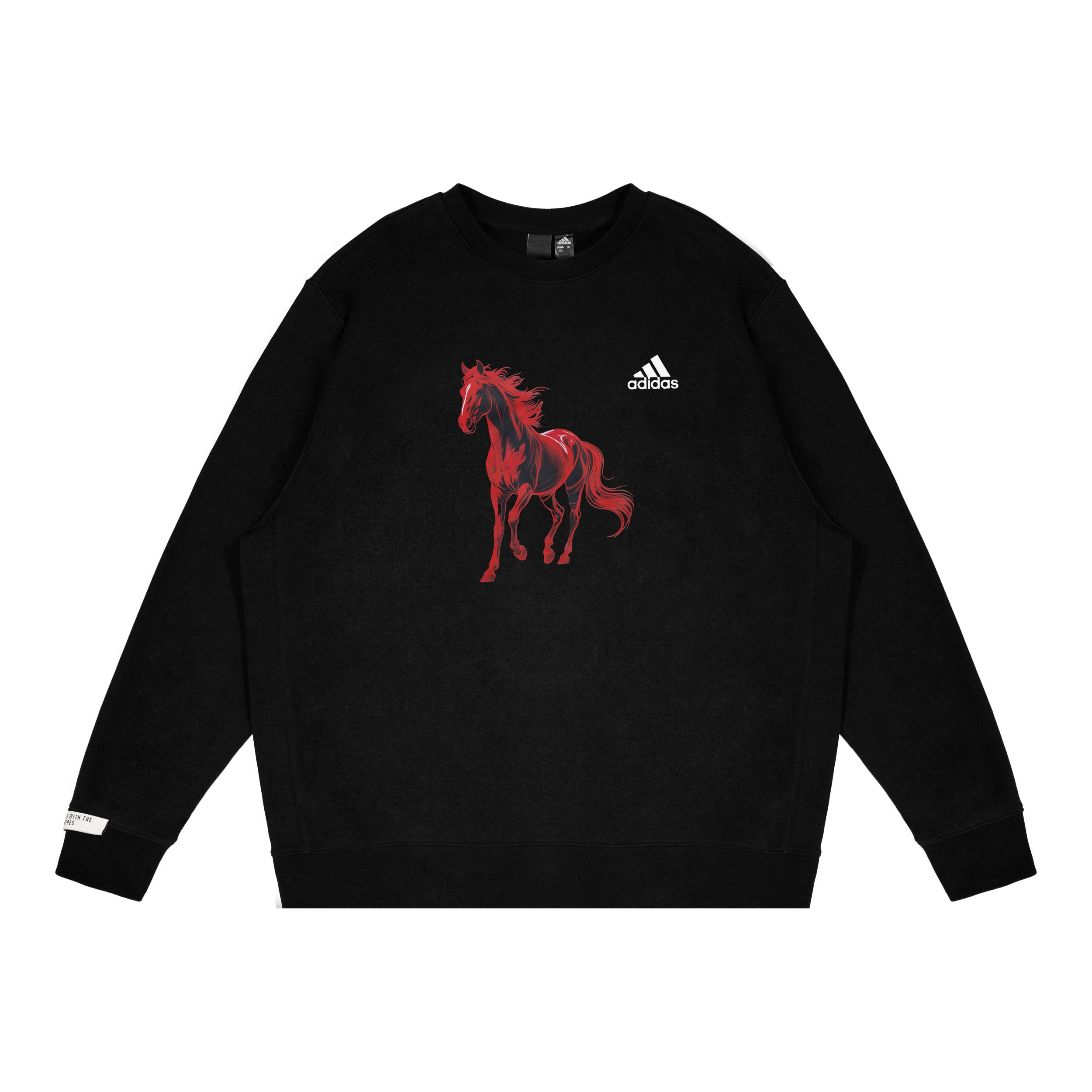 今年是马年,一眼就相中了这件阿迪达斯的红马卫衣,太对我胃口了。 主体是经典的黑色抓绒面料,摸起来软乎乎的,贴身穿不扎人,春秋单穿刚好,冬天叠在外套里也不臃肿,实用性拉满。 最戳我的是胸前的红马印花,线条飘逸又有力量感,像国画里的奔马,红黑撞色很有中式氛围感,马年穿出门特别应景。旁边的小logo低调不抢戏,日常通勤、逛街都不突兀。 随便搭条牛仔裤或者工装裤就很有松弛感,不用费脑子想搭配,舒...