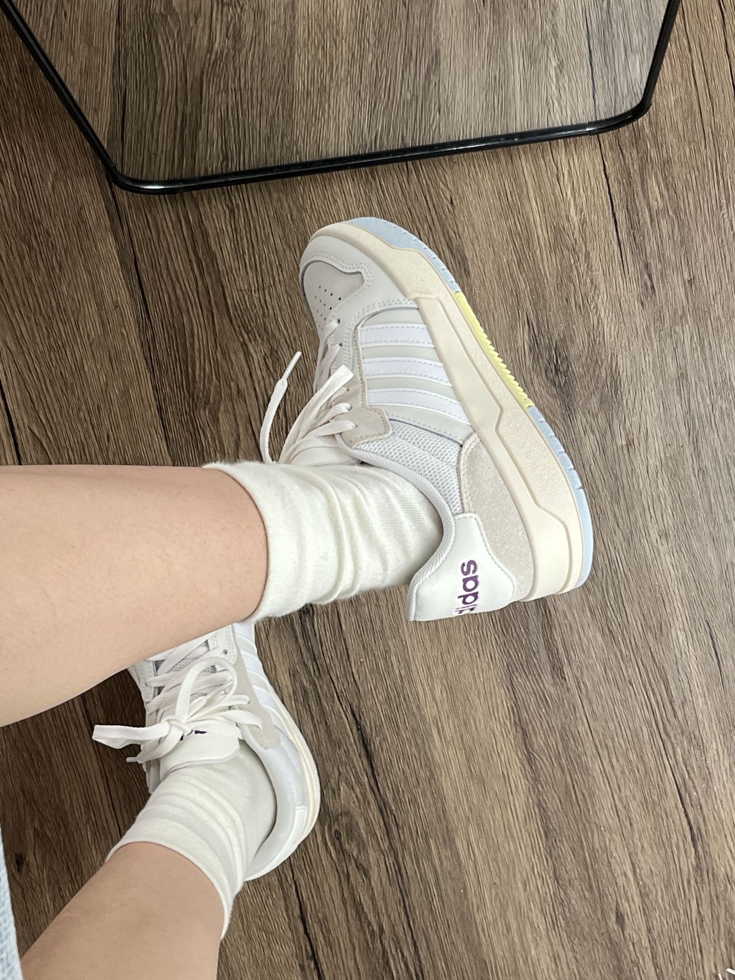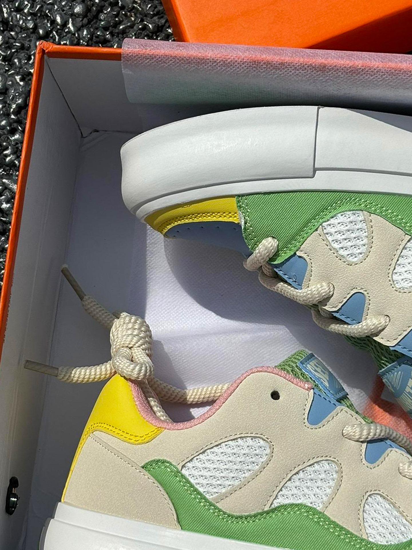 粗麻绳鞋带和撞色拼接,在街头一眼吸睛👀 搭配直筒裤穿梭于咖啡馆与美术馆,氛围感拉满 中底软弹,久走不累,包裹感适中,建议选大半码更舒适👟 美中不足是皮革拼接处易积灰,打理需细心 且厚底设计在湿滑路面要格外注意防滑⚠️