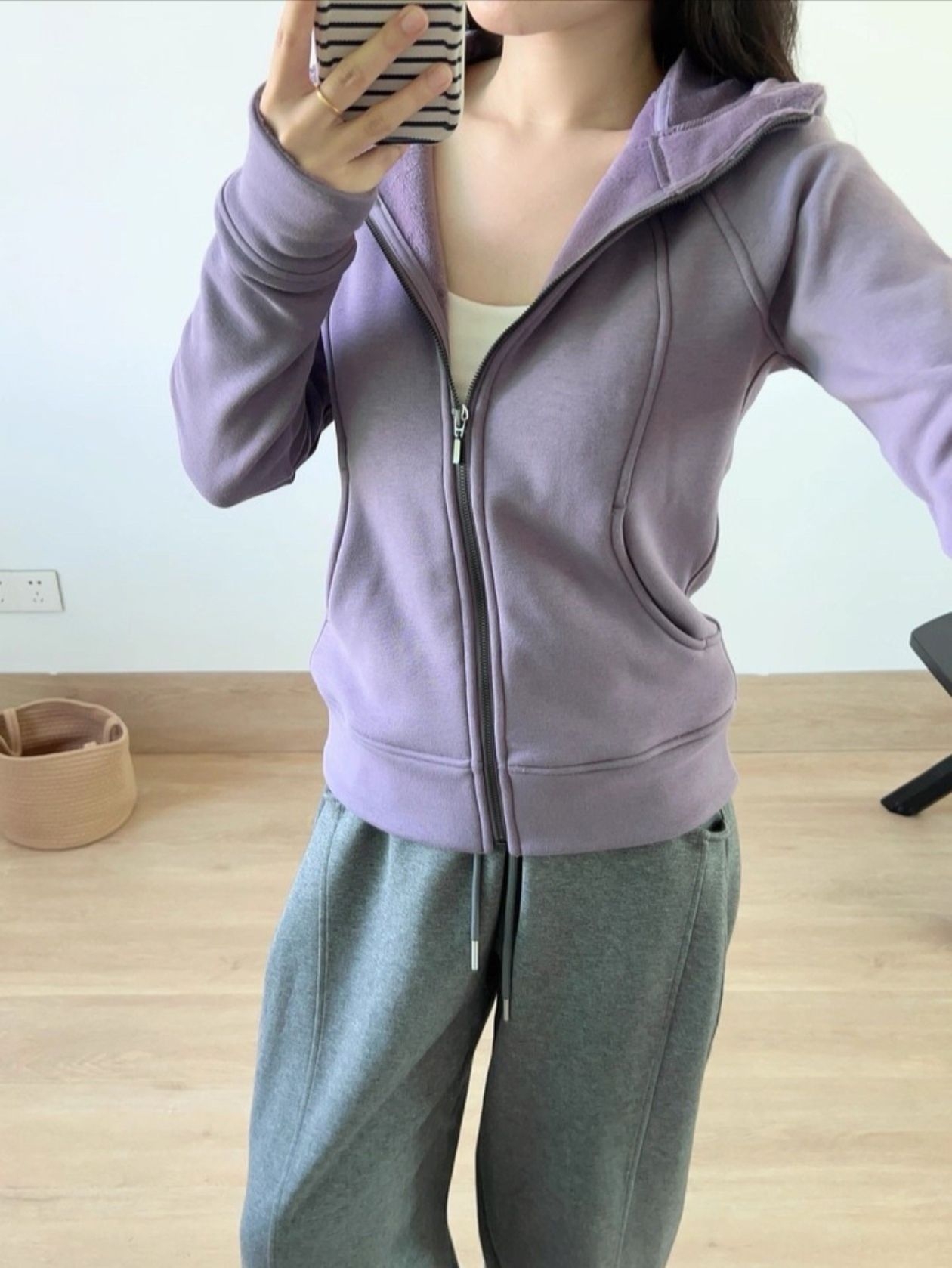 不愧是我熬夜选出来的纸片人加绒外套 紫色真的好美上身一整个显白住 双S线收腰设计加上超A剪裁 H身形都给穿出腰臀比 大连帽领口显直角肩显锁骨 拍照戴起来很有氛围感 厚实柔软的不倒绒内里 做了抗静电处理亲肤如软糯