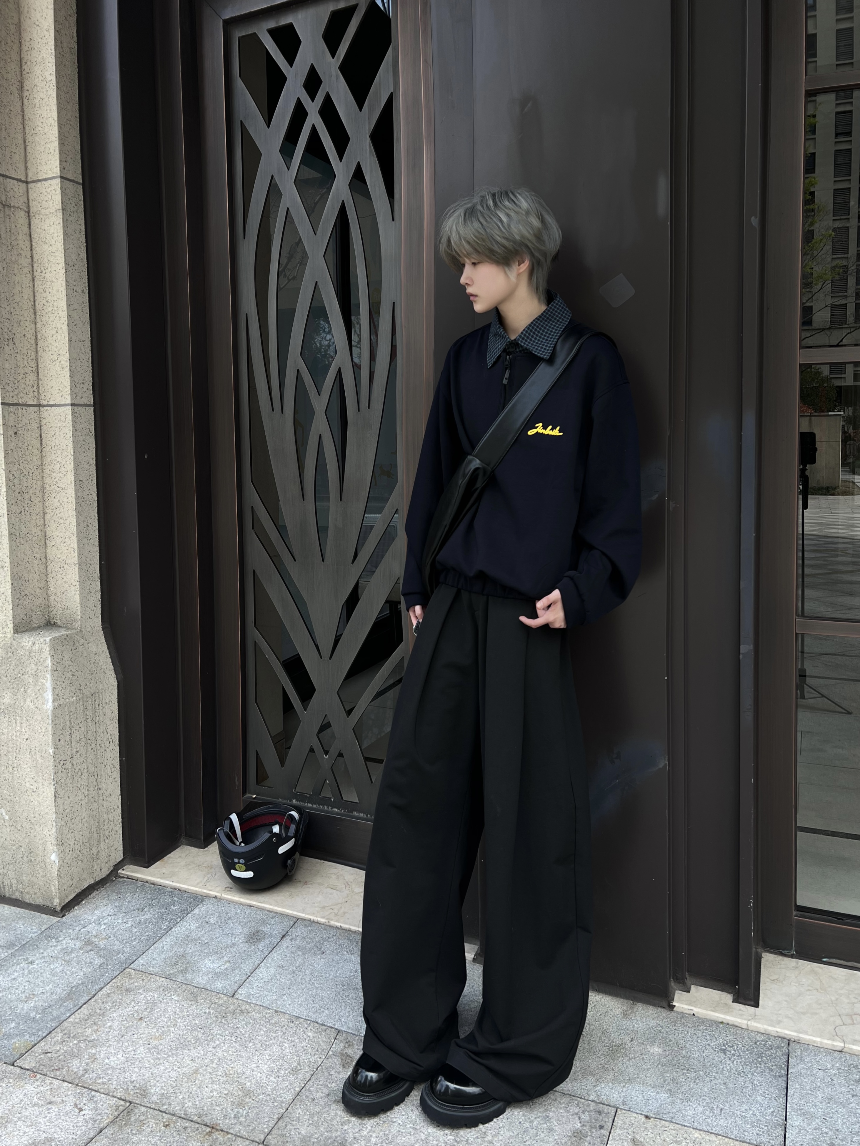 半拉链格纹领卫衣太懂少年感了 藏青底色+黄色刺绣小标,低调又有细节 格纹领假两件设计,不用费心搭配就很有层次 搭一条垂感拉满的阔腿西裤,慵懒感直接拉满 厚底德比鞋+软皮斜挎包,整套就是不费力的清冷感 日常通勤、出街都能穿,男生女生穿都超有范儿 我172/100 穿m码 微宽松