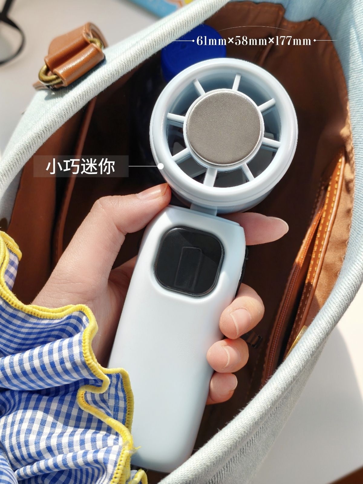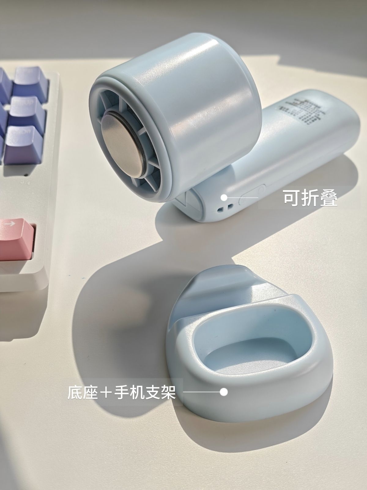 真不戳!我之前怎么不知道风扇还能制冷… 🧊外观 风扇头部是可以折叠的,吹吹手机也不错😁,带了一个底座还可以当手机支架 🧊材质+数显 中间的是铝片制冷凉的挺快的,吹出来的是凉风,操作也挺简单就两个按键,数显不像手机拍出来一跳一跳的,是很清楚的,可以100档无级变速,噪音不大不用担心~,也可以分为5个档位 总的来说:挺迷你,噪音小,风力大,主要是能制冷❄️可折叠,放在包包里不占地方哦