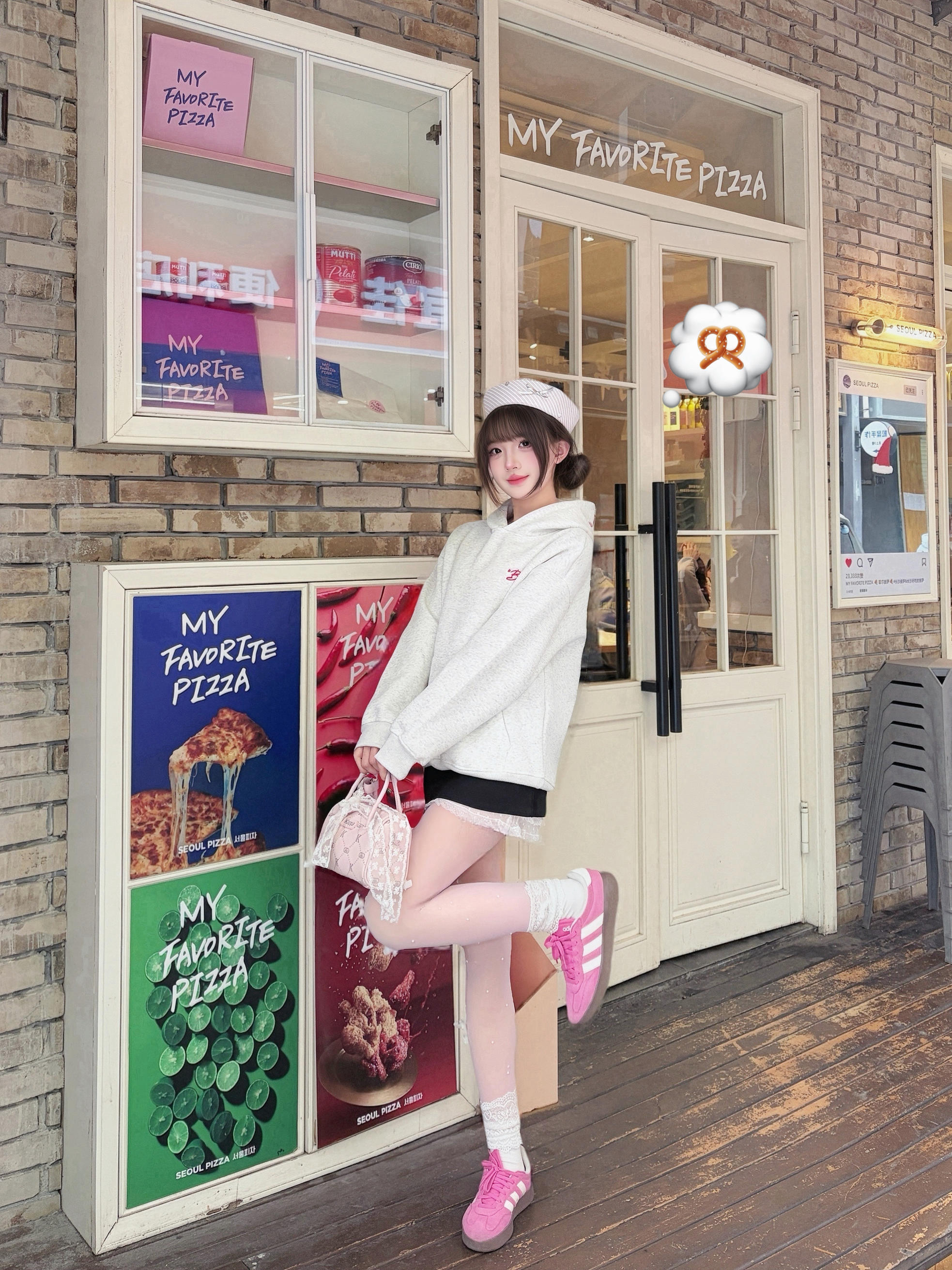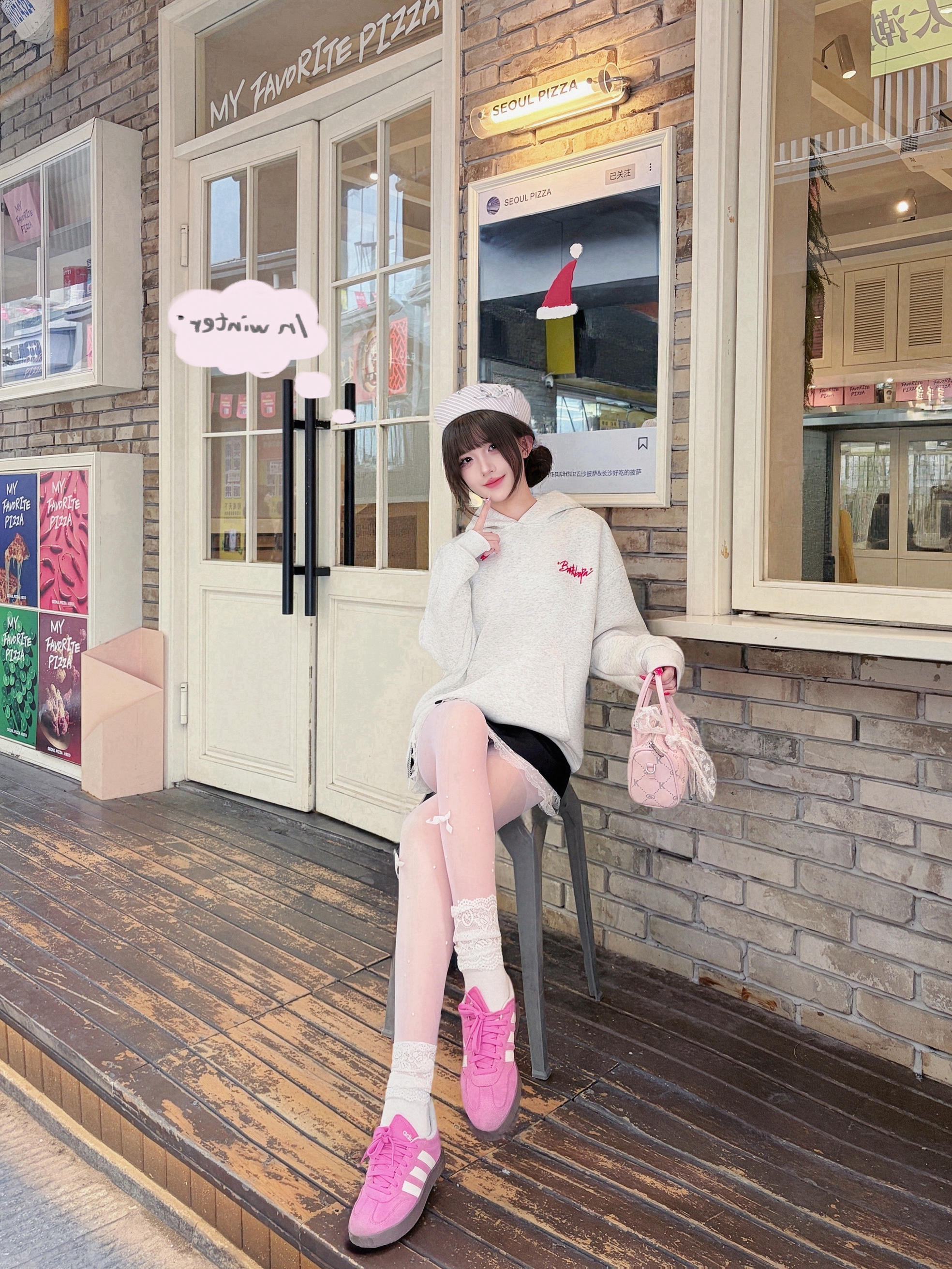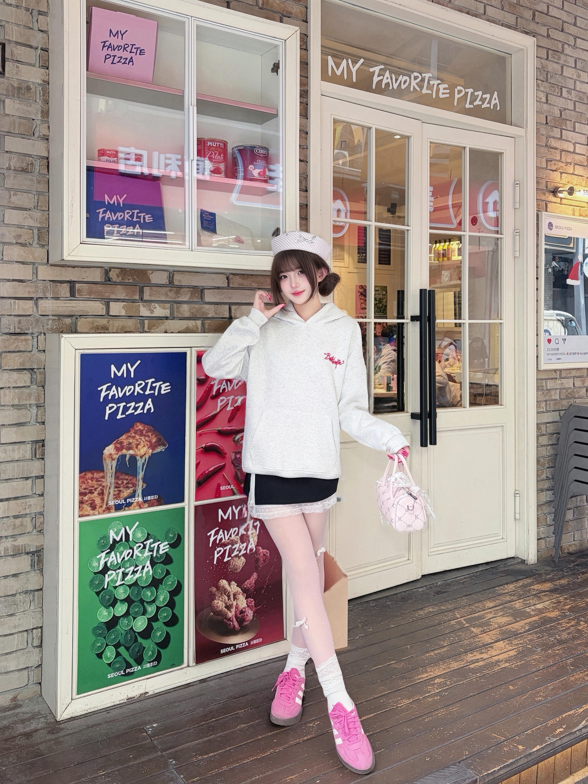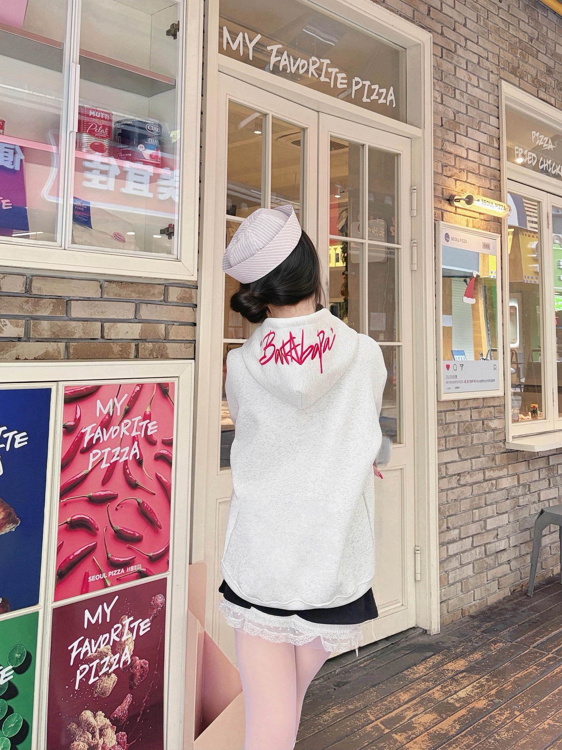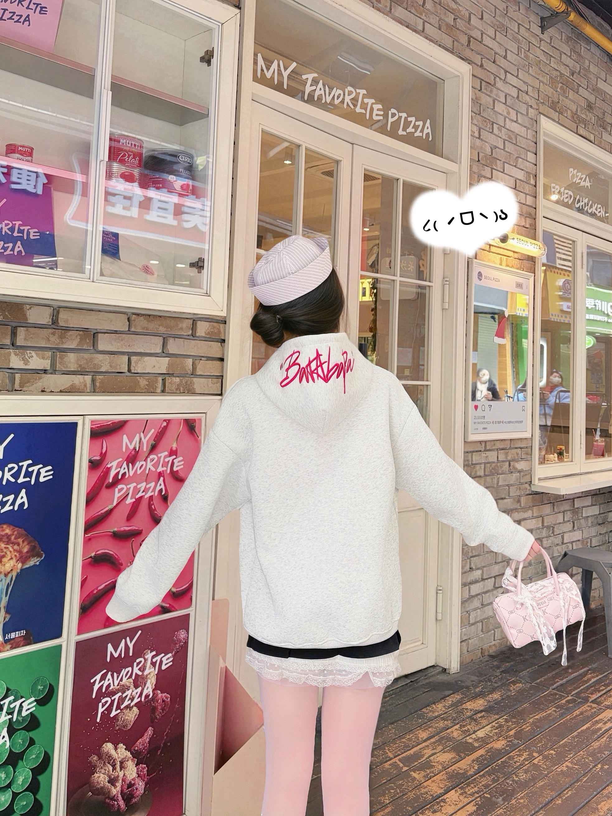 今天是美式甜心💫Look呀~ 花灰色刺绣卫衣➕黑白蕾丝A字裙🫶🏻 搭配冰莓粉德训鞋➕奶芙色包包~ 真的是又甜又酷的一套呀‼️ 卫衣是高克重的✨ 上身很有型哦 不会软塌塌的 胸口和帽子都有字母刺绣🪡 是有质感的那种哦! 真的好爱这种有设计感的高颜值单品😍😍