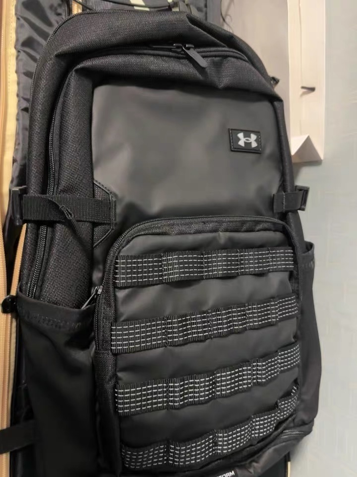 🖤这款Under Armour战术风背包,黑色主调+织带设计,硬朗又实用!耐磨聚酯纤维材质,日常通勤、户外运动都OK。多拉链隔层+侧网袋,收纳超方便,容量大,书本、电子设备、运动装备都能装下💪。肩带和背部有缓冲垫,背着很舒服,长时间背也不累。战术风外观超有型,户外爱好者和功能党都很爱!✨