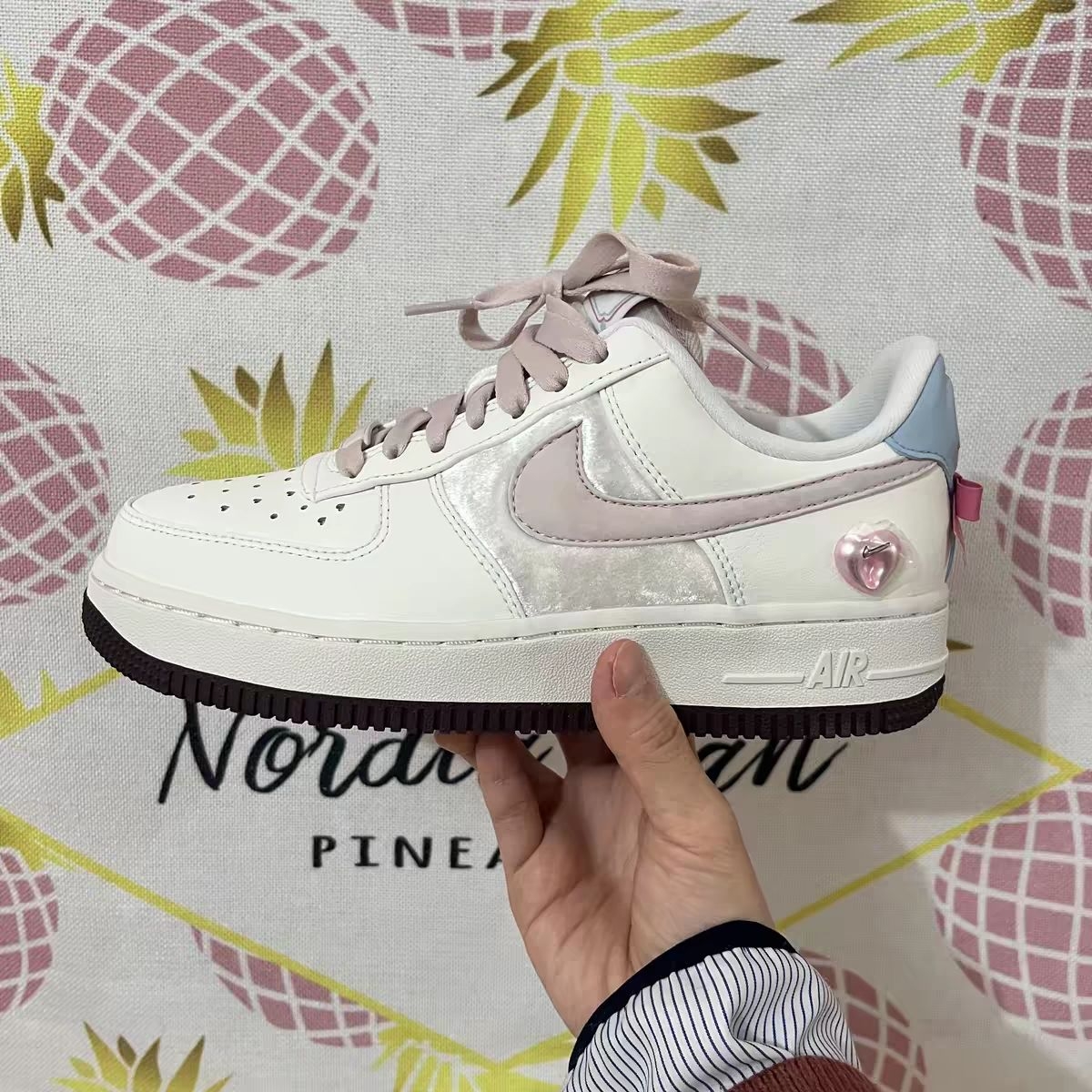把温柔与浪漫穿在脚上!这双Air Force 1爱心款太戳少女心了!奶白鞋面搭配粉紫Swoosh与浅蓝后跟,侧片丝光银材质自带光泽感,后跟透明爱心扣暗藏小勾标,细节拉满浪漫氛围。经典AF1厚底悄悄增高,修饰腿型,透气鞋面+柔软鞋垫,日常久穿也舒适。粉紫鞋带与后跟粉带呼应,搭配牛仔裤、百褶裙都超好看,约会、通勤、校园都能hold住,是自带氛围感的宝藏鞋款,少女党闭眼冲!