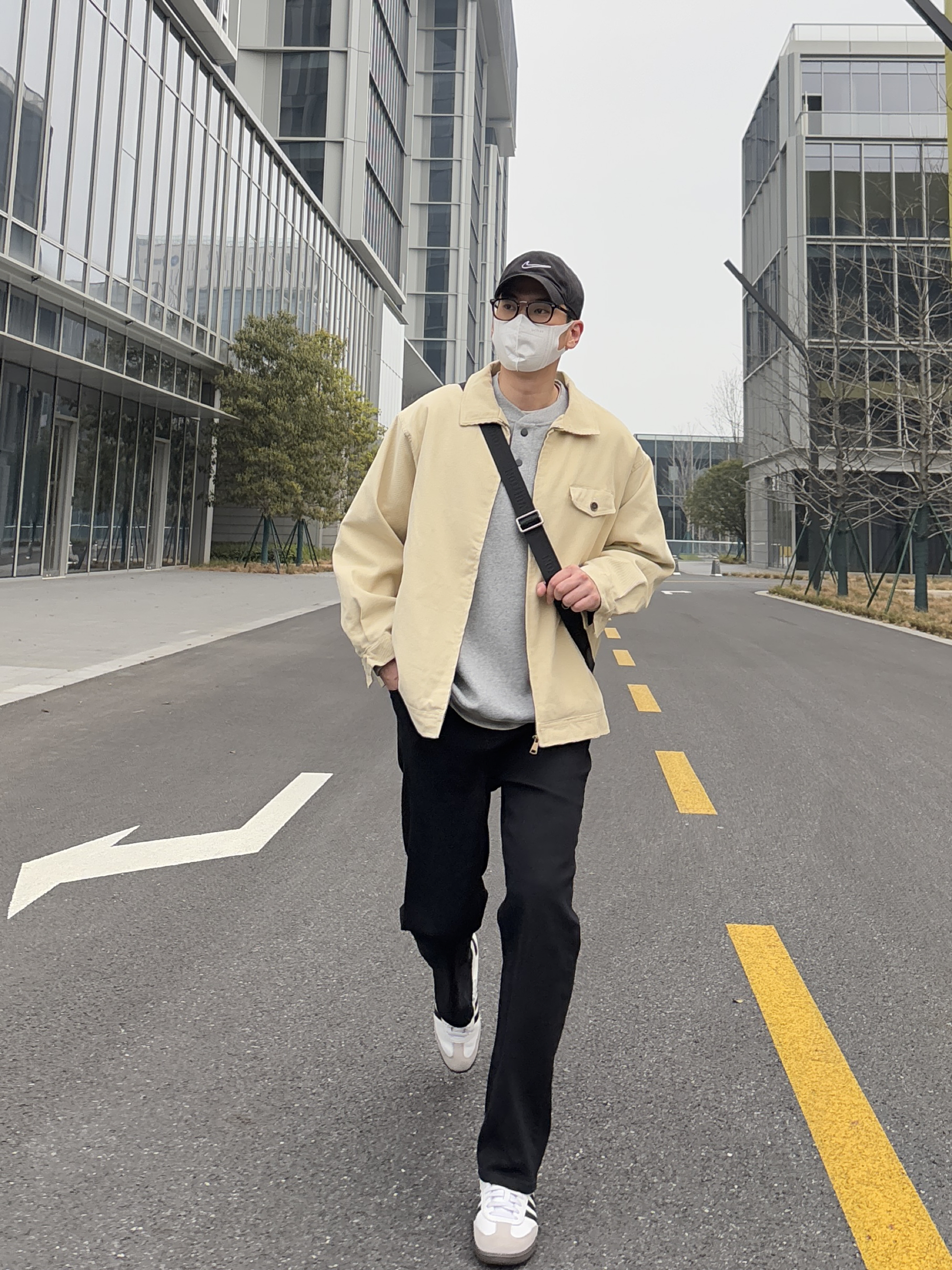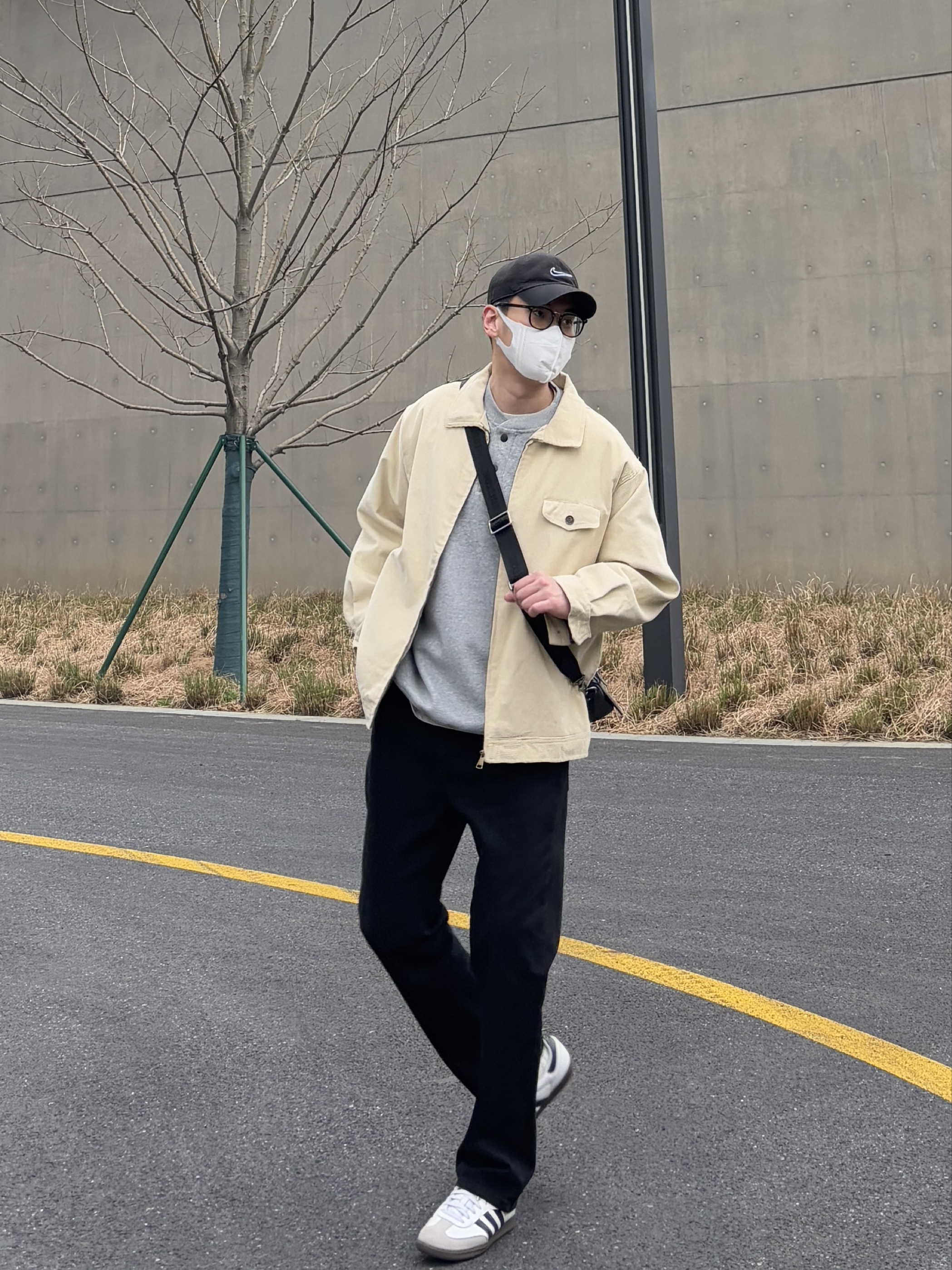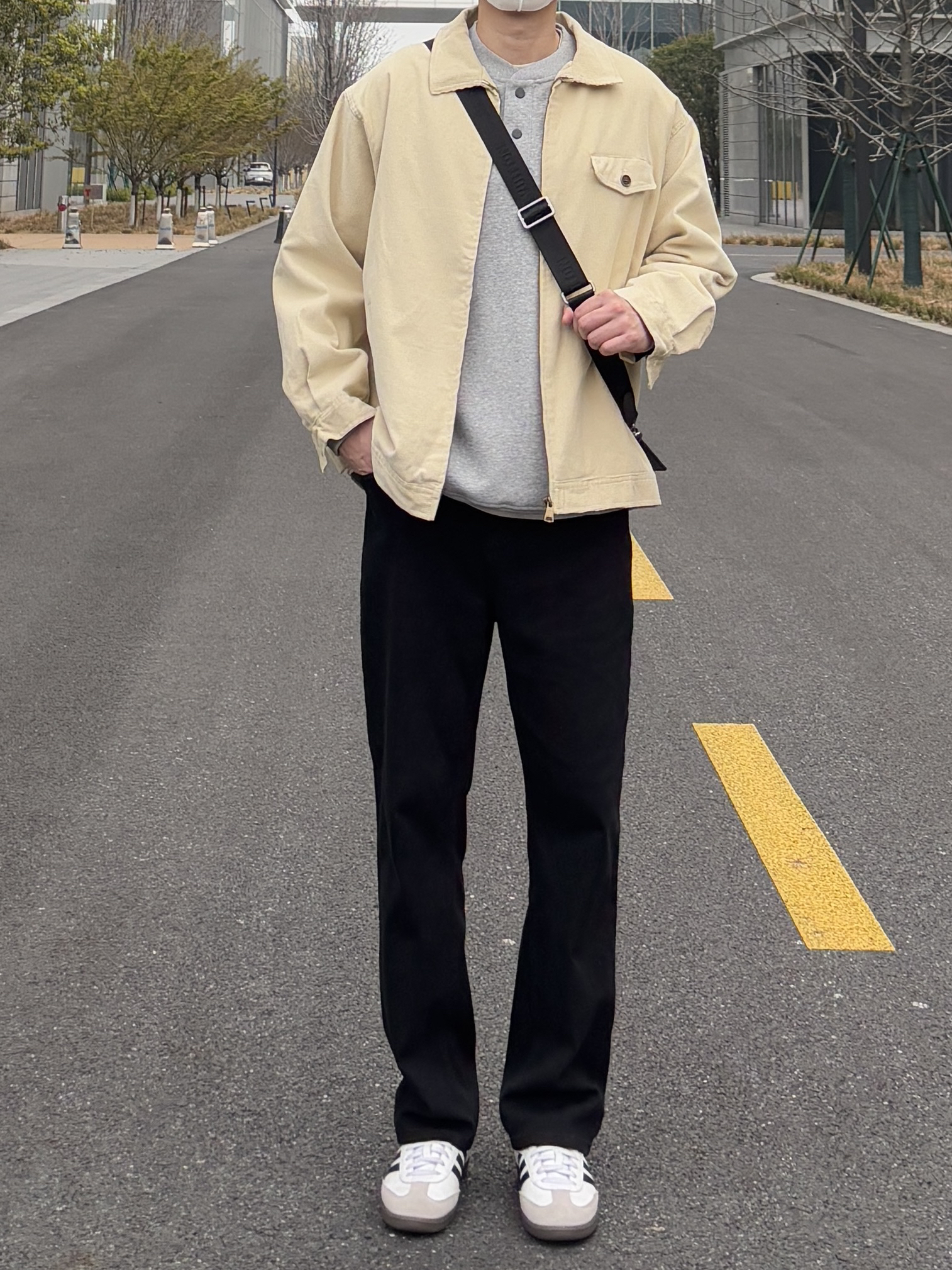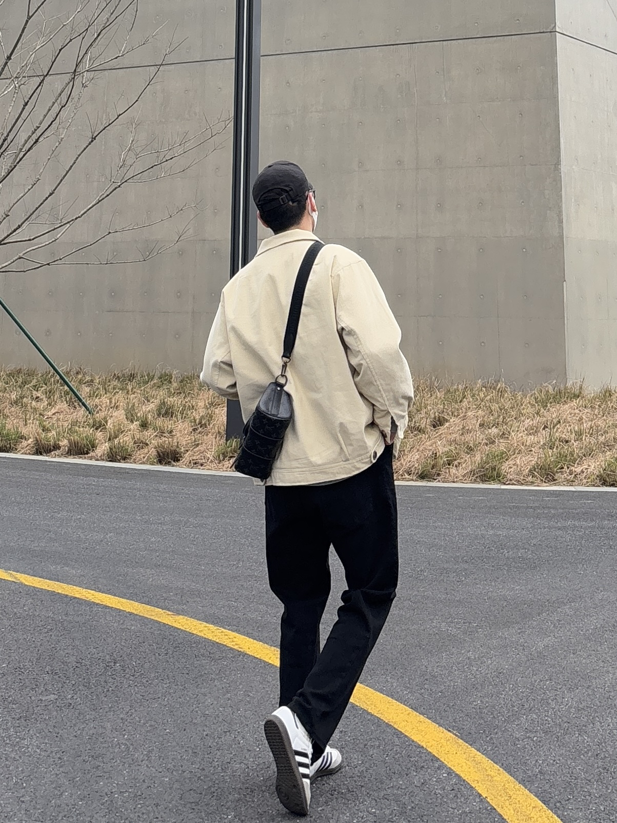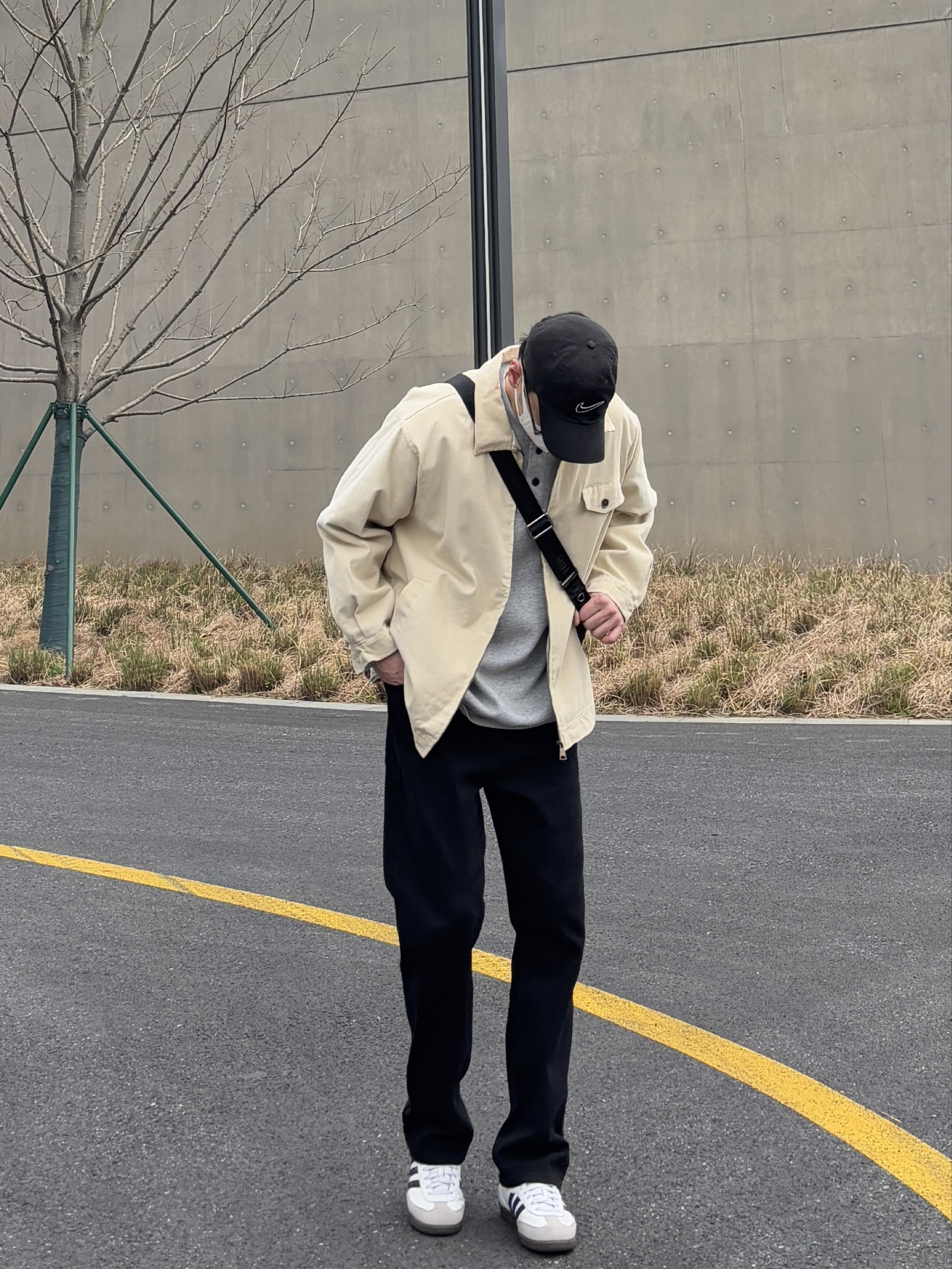 春季穿搭就爱这种简约又有质感的造型🤩 外套米白色灯芯绒翻领工装夹克 上身温柔显气质,复古肌理超有看点🙋♂️ 内搭浅灰色基础亨利领卫衣 休闲自在,层次过渡自然 下身黑色直筒牛仔裤利落显瘦 水洗质感恰到好处 鞋子搭配黑白低帮德训鞋 复古休闲味稳稳拿捏~ 最后用皮质斜挎包点缀,精致又实用! 整体配色清爽柔和,不挑身材不挑场景 随便一套就很好看 日常出门轻松拥有高级氛围感🤩 - 今日穿搭 衣服裤子:N...