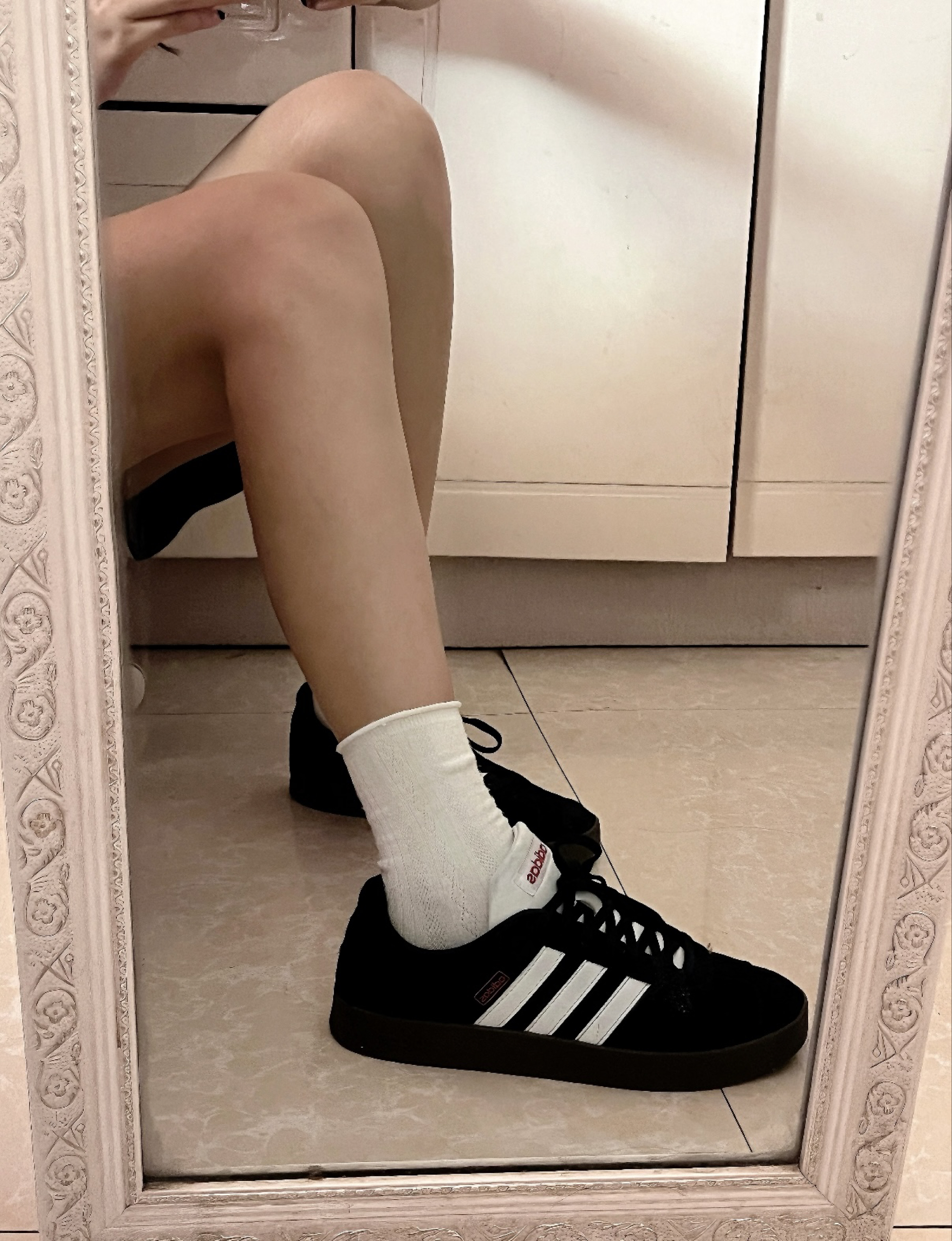 别再买那些花里胡哨的鞋了!这双黑白带复古感的鞋才是刚需,上课、通勤、约会全能穿,麂皮面脏了擦一擦就干净,鞋底软得像踩棉花,之前担心板鞋磨脚、显脚大的顾虑全没了,百元价位穿成衣柜常青树,太值了!